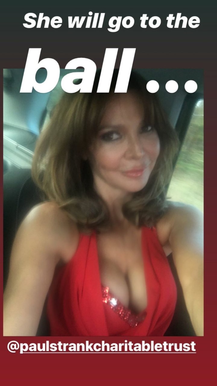 Lizzie Cundy mostró su escote, vistiendo un vestido rojo mientras asistía a la Gala Benéfica de Paul Strank Roofing celebrada en el Centro Deportivo del Banco de Inglaterra en Londres, 21/09/2019.