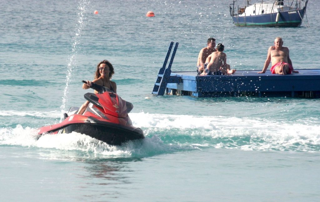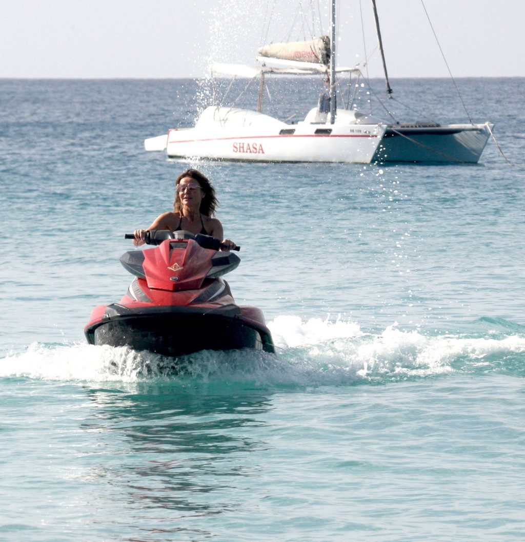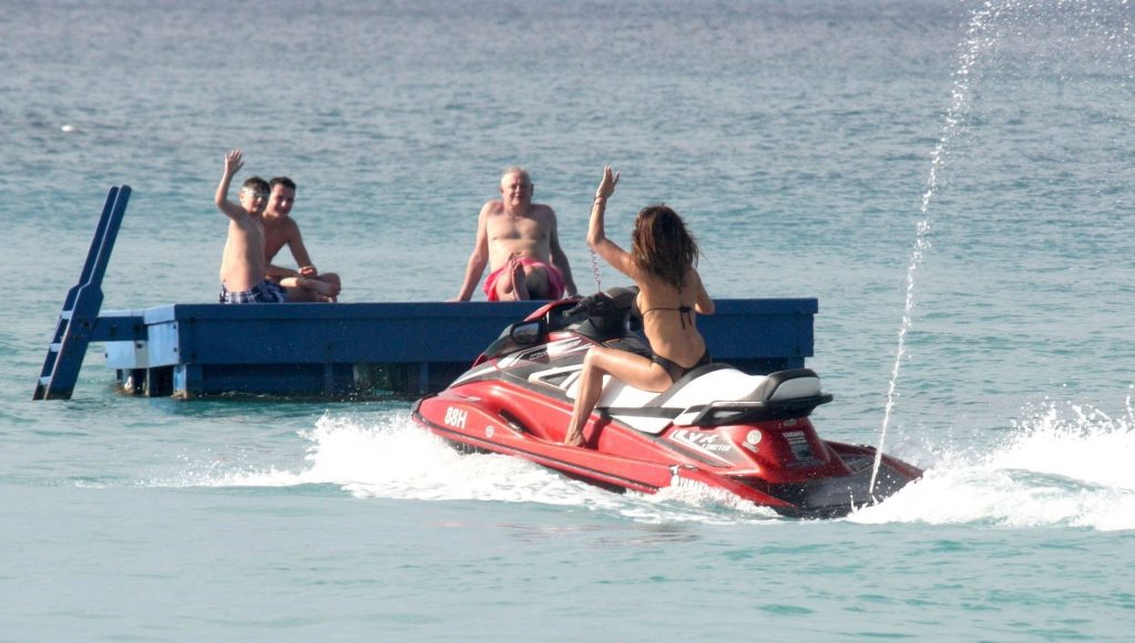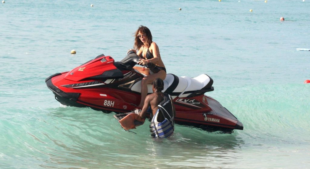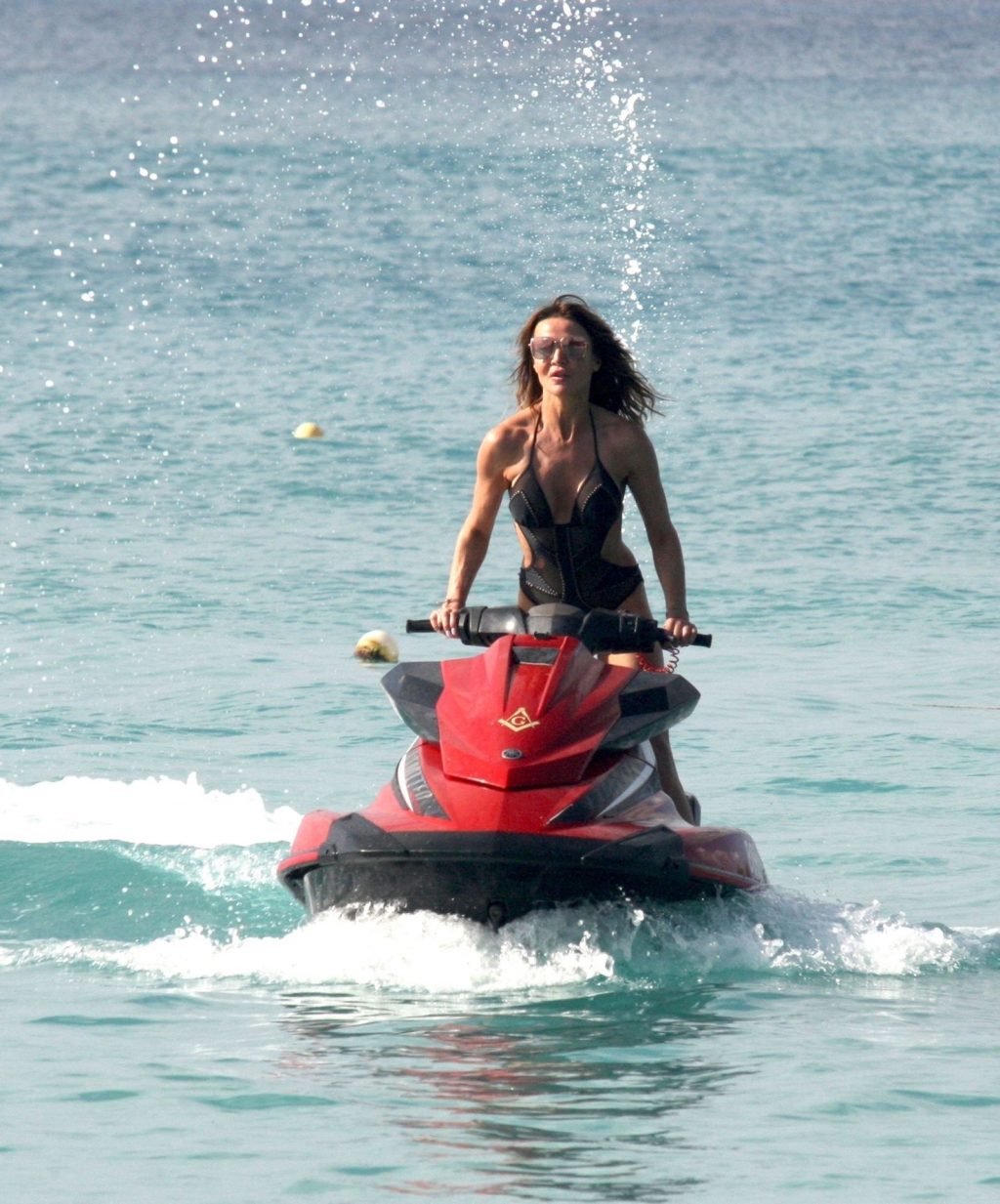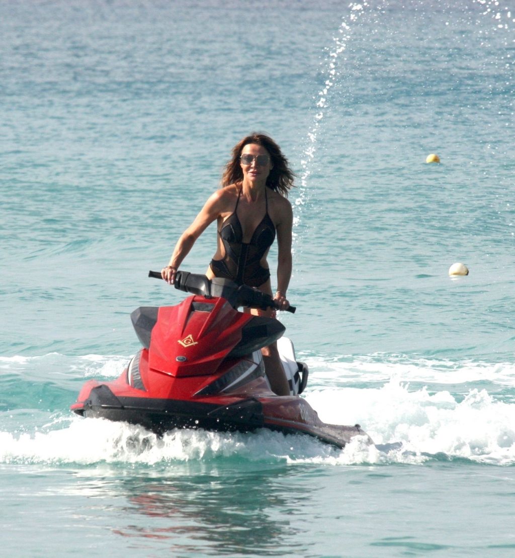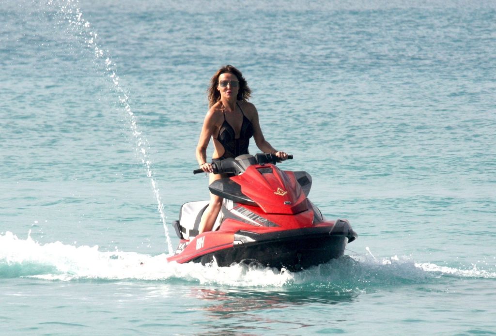 Lizzie Cundy disfruta del sol caribeño mientras se relaja junto a la piscina con su sexy traje de baño negro. Lizzie lució espectacular, mostrando su sexy figura y se lanzó al agua en una moto acuática durante sus vacaciones en la isla caribeña de Barbados, 30/12/2019.
