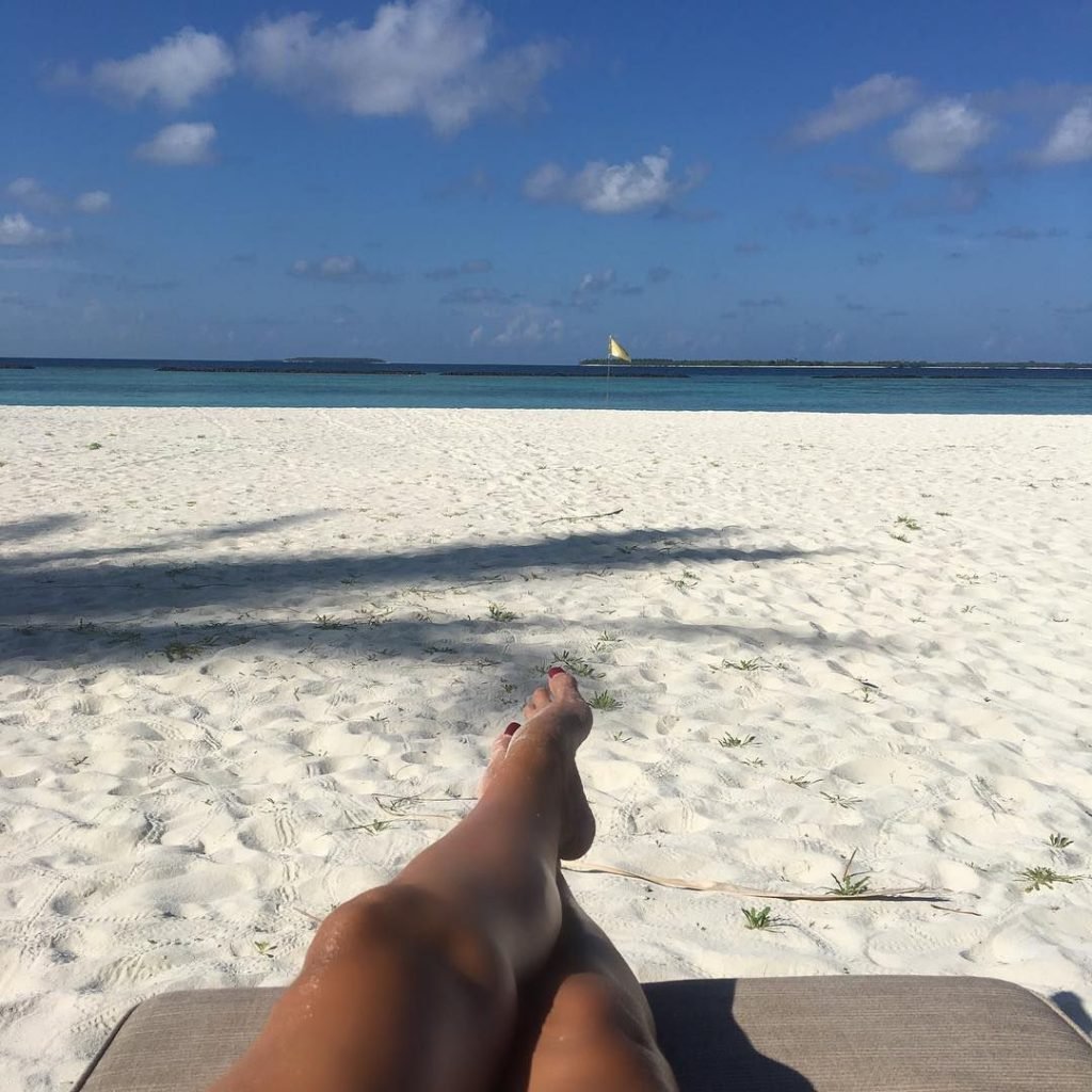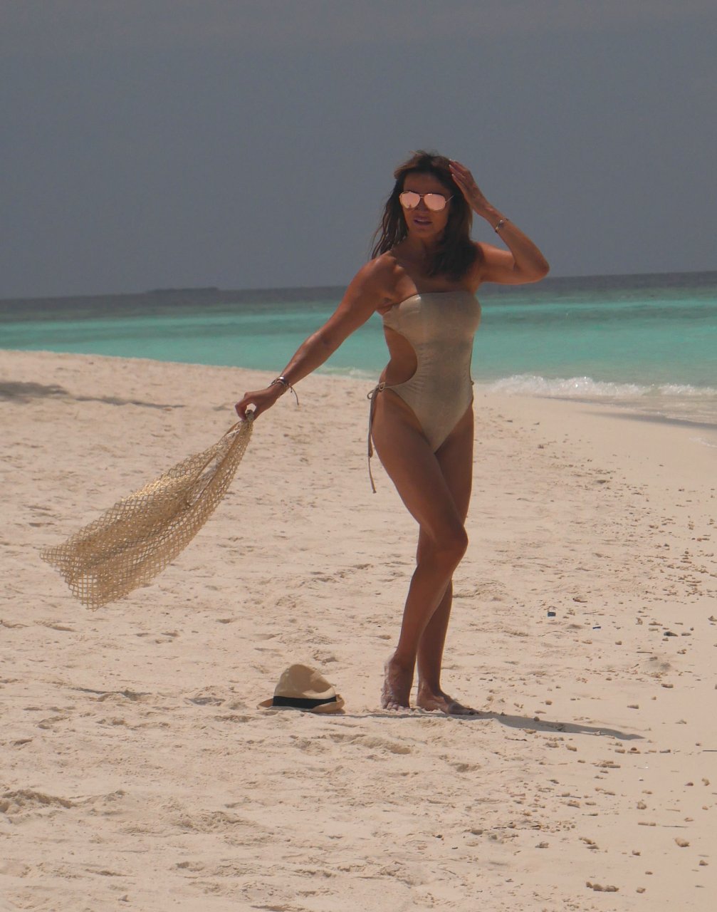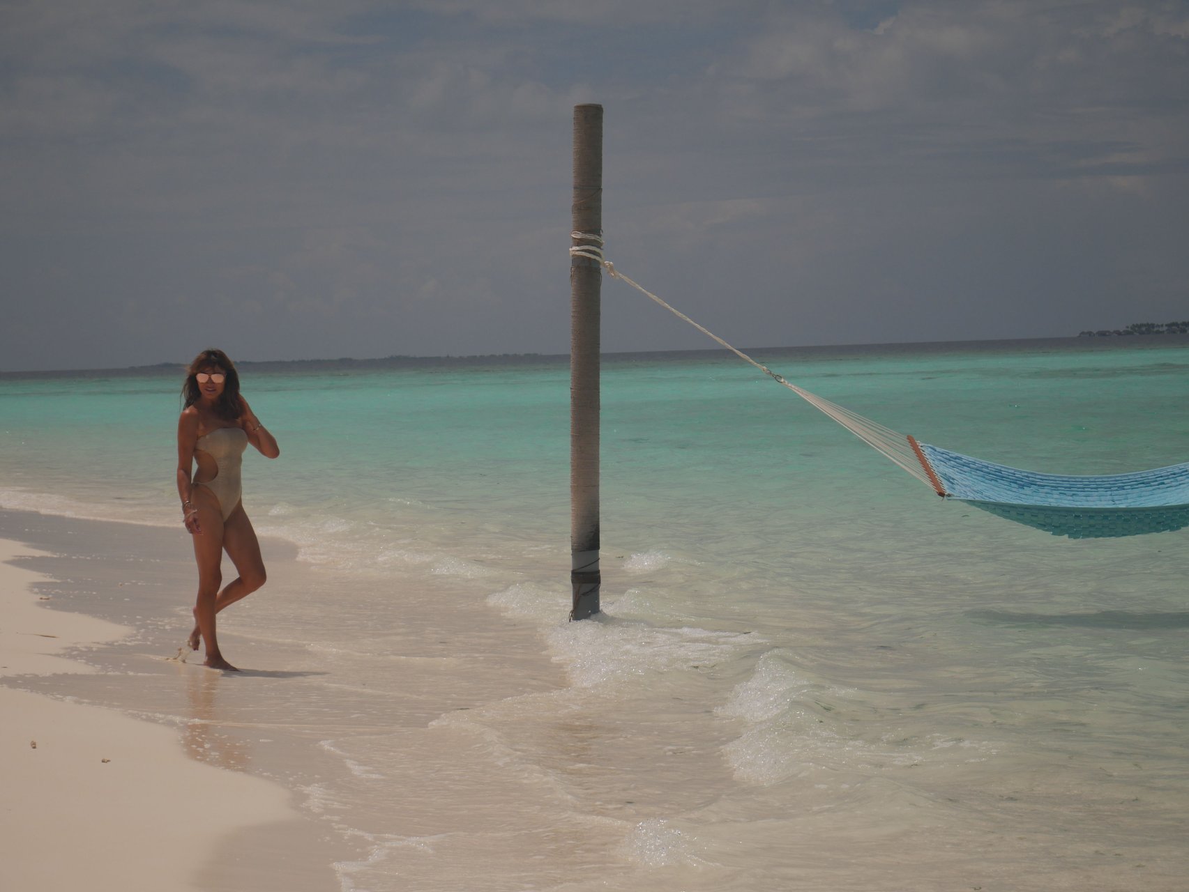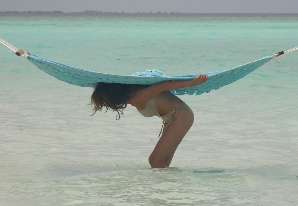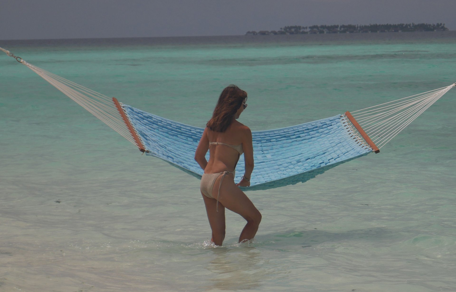 Lizzie Cundy (48) presenta el Festival Internacional de Cine en Sun Siyam Iru Fushi, Maldivas. Ella logra tomar un poco de tiempo para relajarse en una hamaca sobre el mar, 09/08/2018.