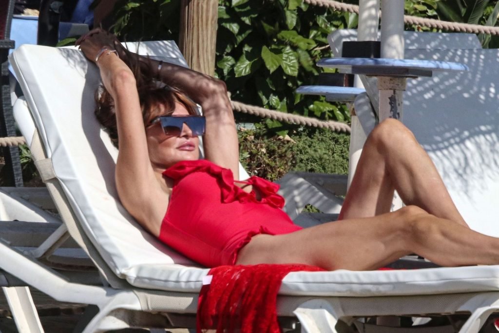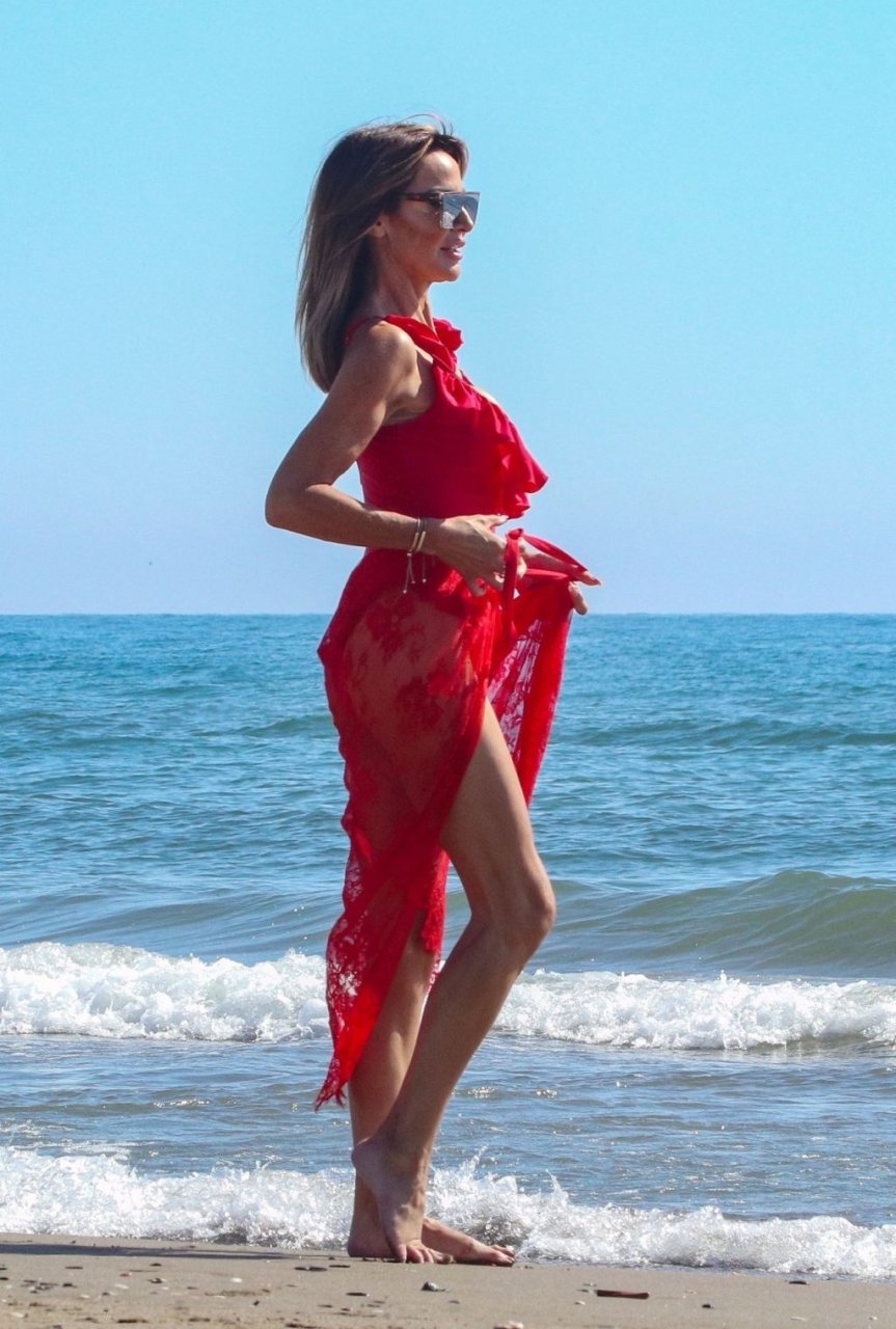 La personalidad de televisión Lizzie Cundy fue fotografiada mostrando su cuerpo de playa mientras se divertía en la playa durante un descanso soleado en Marbella, 10/06/2019. La ex Wag fue vista luciendo relajada mientras canalizaba su Baywatch interior mientras se la fotografiaba descansando en la playa con un traje de baño rojo brillante.