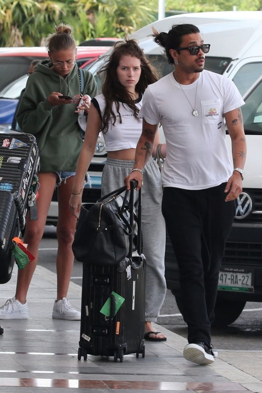 Lottie Moss y su amiga Ella Ross fueron vistas partiendo en un vuelo en el aeropuerto de Cancún, México, el 15/01/2019. Lottie, que estaba celebrando su 21º cumpleaños (9 de enero) durante el fin de semana, mantuvo su atuendo de viaje casual con una camiseta blanca y pantalones deportivos grises. La camiseta de Lottie decía “¿Mis pezones te ofenden?”.
