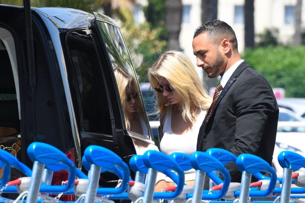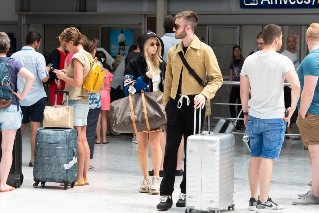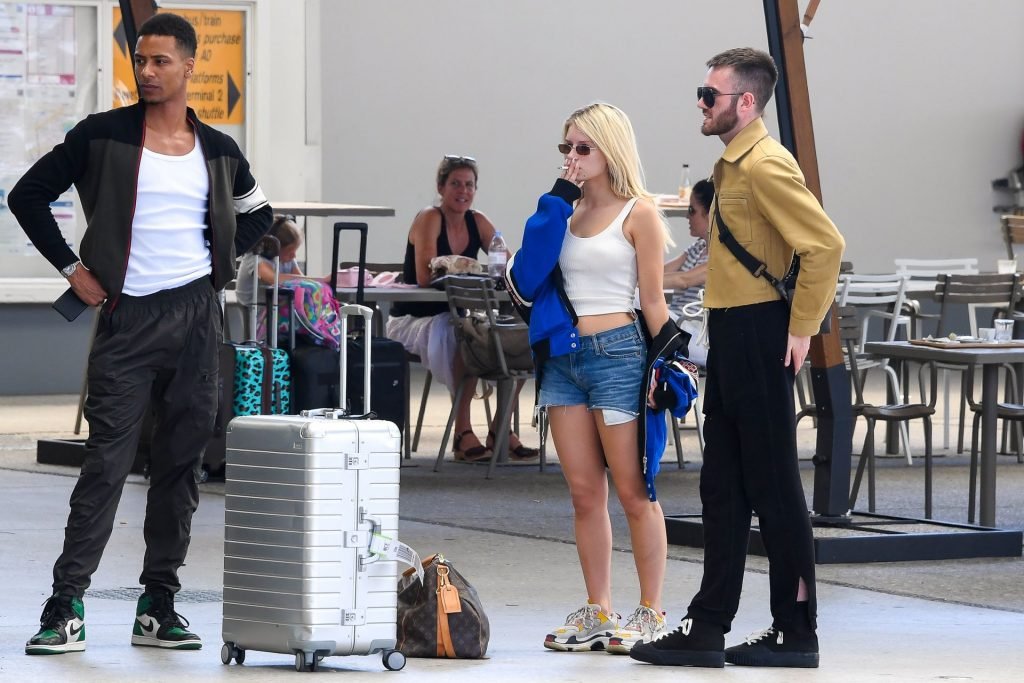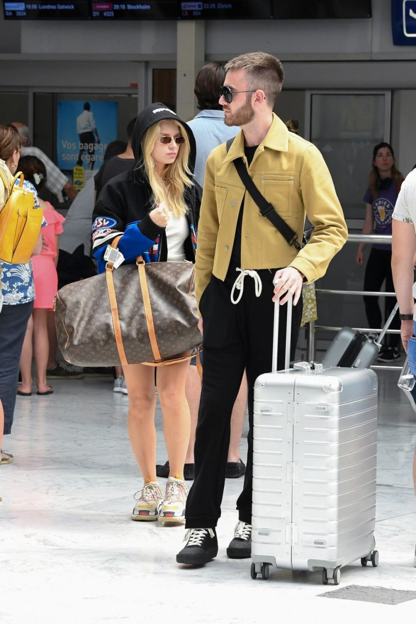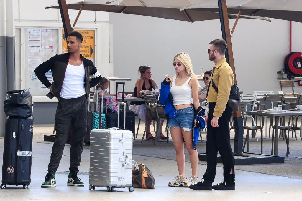 La modelo Lottie Moss y el diseñador británico Danyul Brown fueron vistos llegando al aeropuerto de Niza, 27/06/2019. La media hermana de 21 años de Kate Moss fue fotografiada con una blusa blanca sin sujetador.