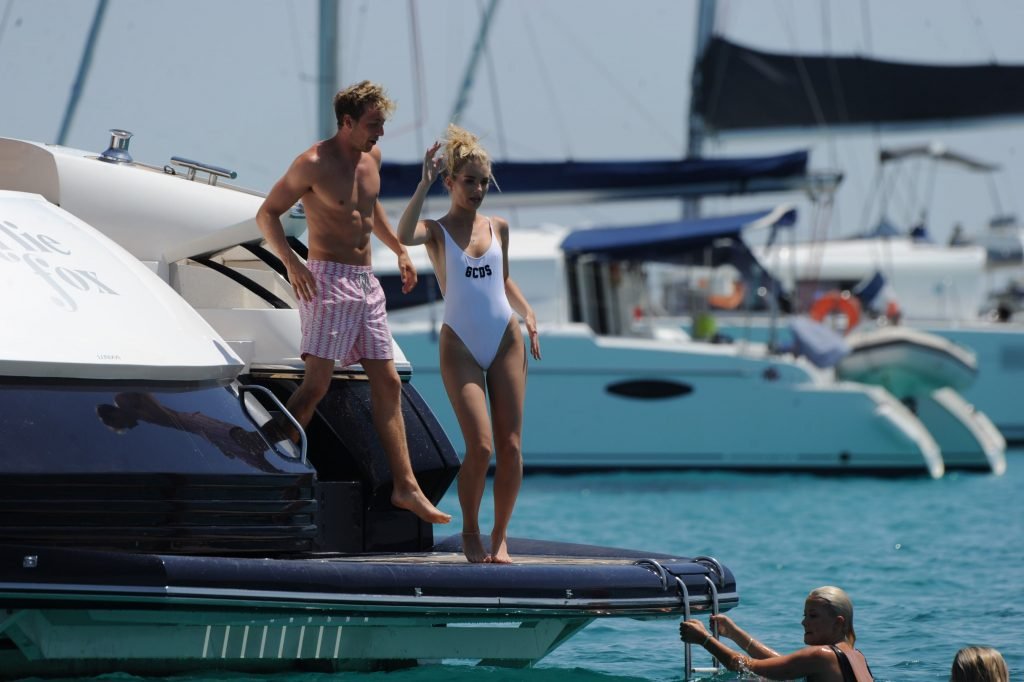 Lottie Moss, Emily Blackwell y otras chicas celebran el cumpleaños de Frankie Gaff en un yate en Formentera, 16/06/2017. Charlotte Moss es una modelo y hermana menor de Kate Moss de Londres. Edad: 19 años.