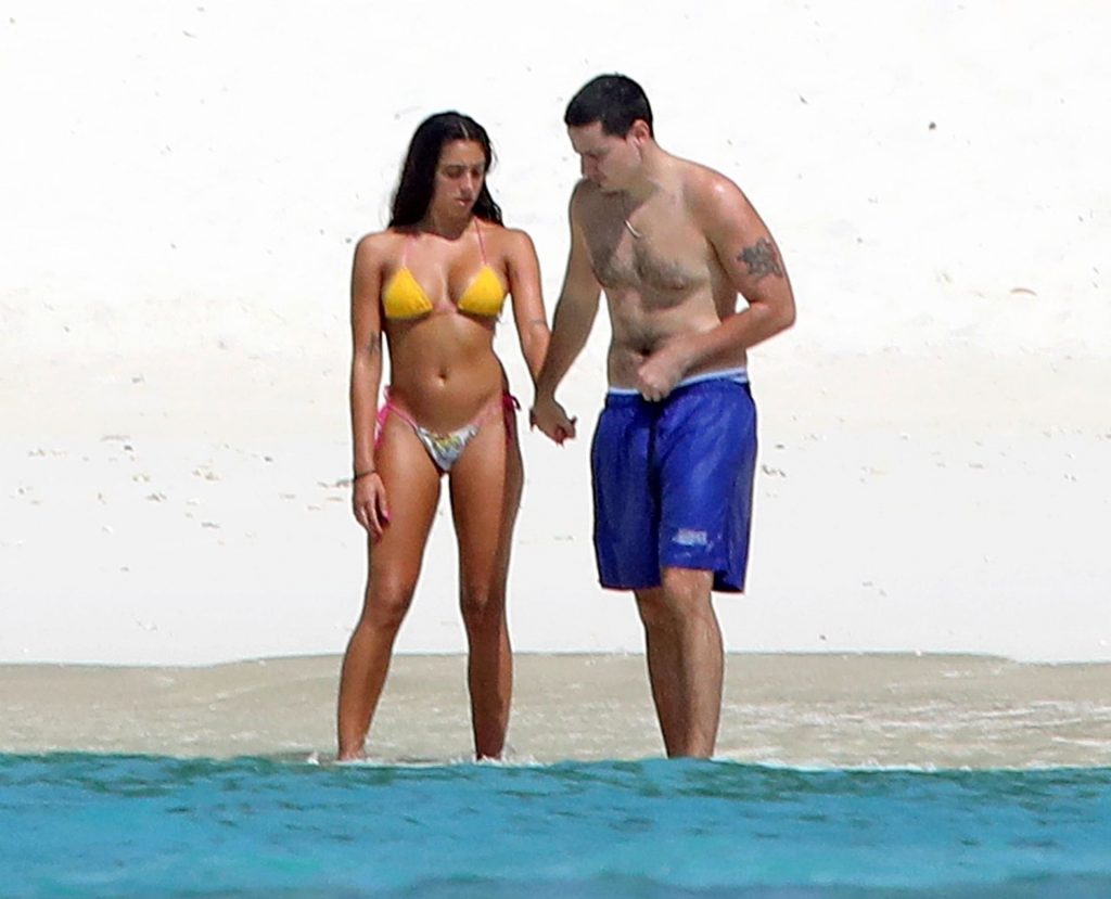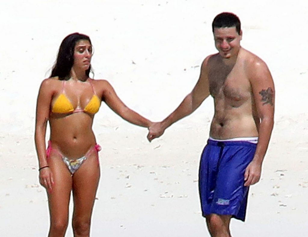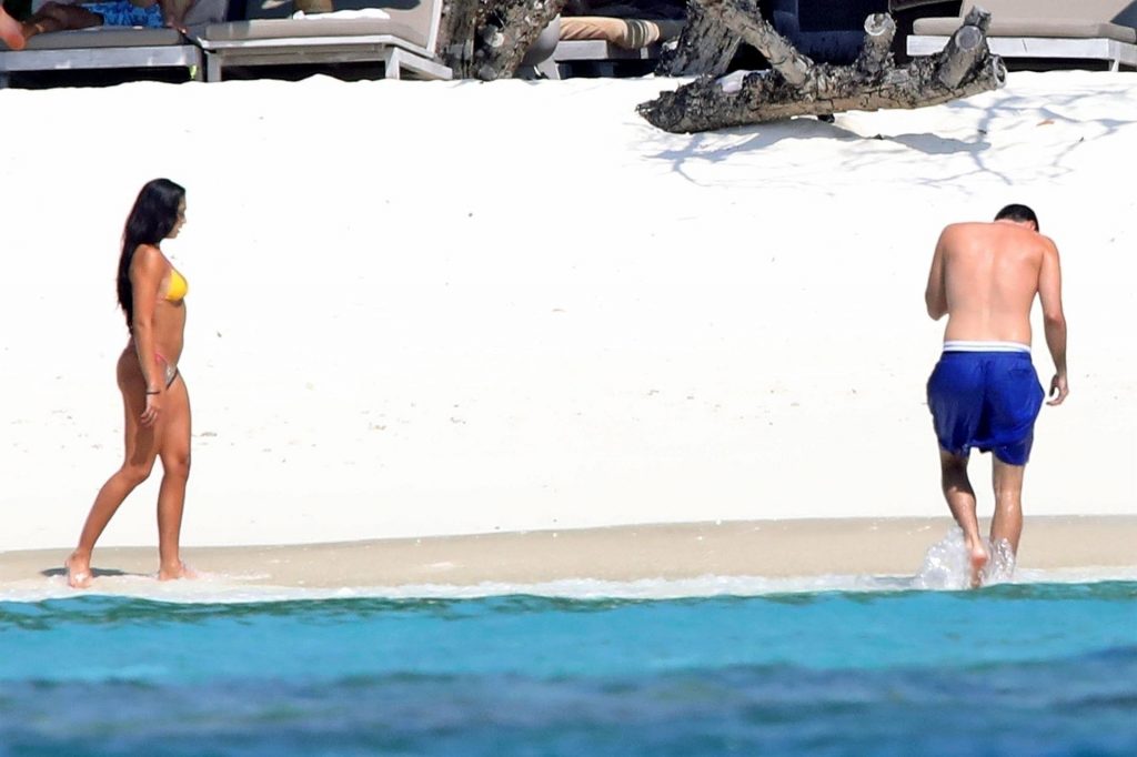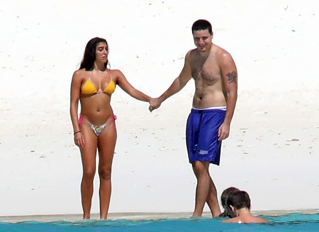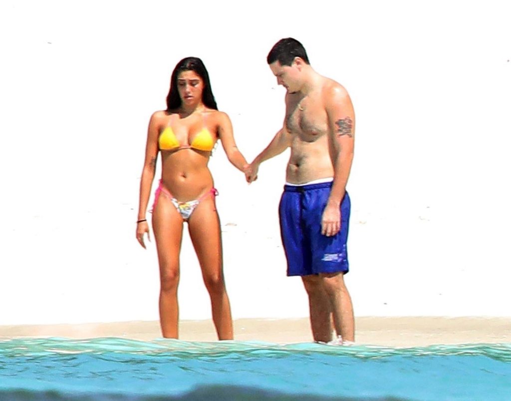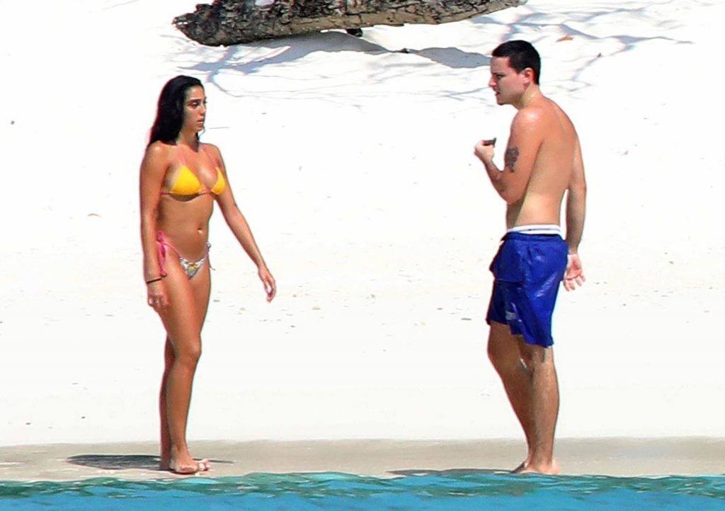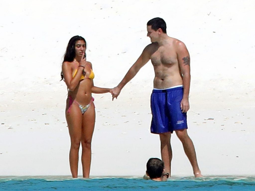 La joven de 23 años deslumbró con un calor de 30 grados usando su pequeño bikini escaso, pero las fotos muestran a Lourdes con una serie de expresiones faciales preocupadas mientras avanzaba con temor hacia el mar con su novio, Jonathan Puglia.