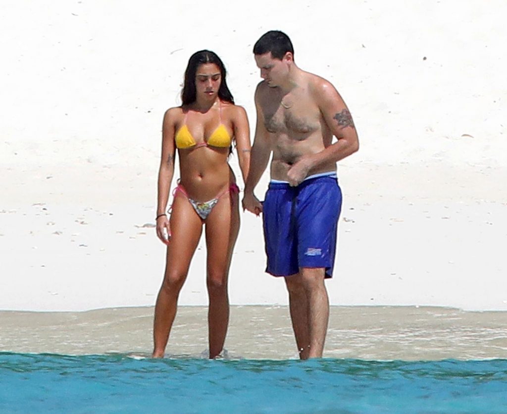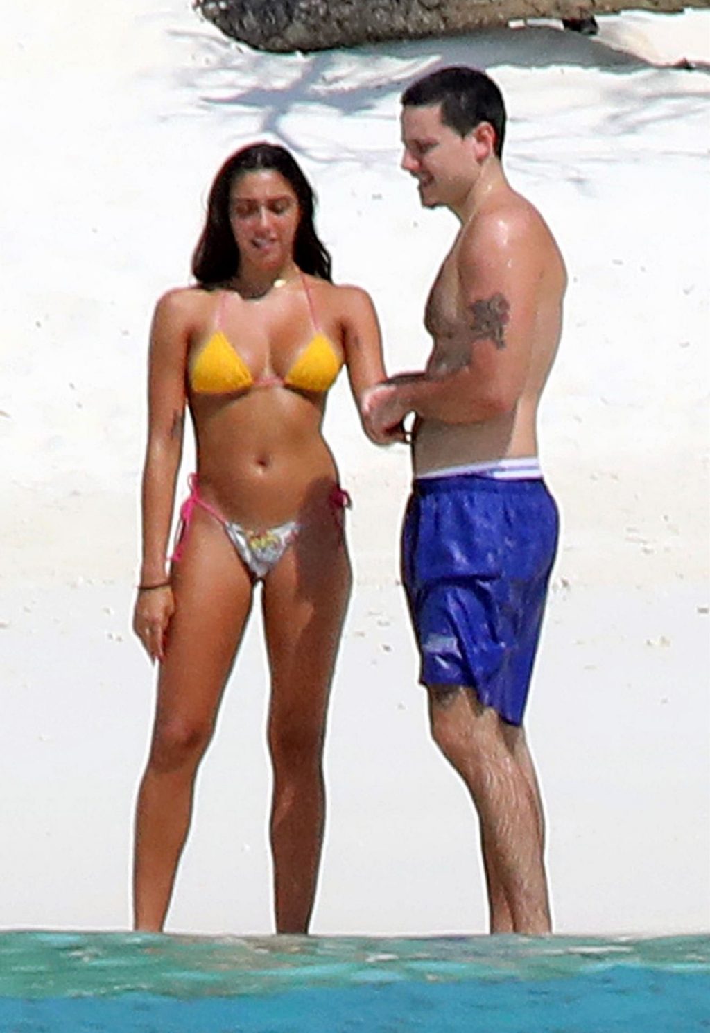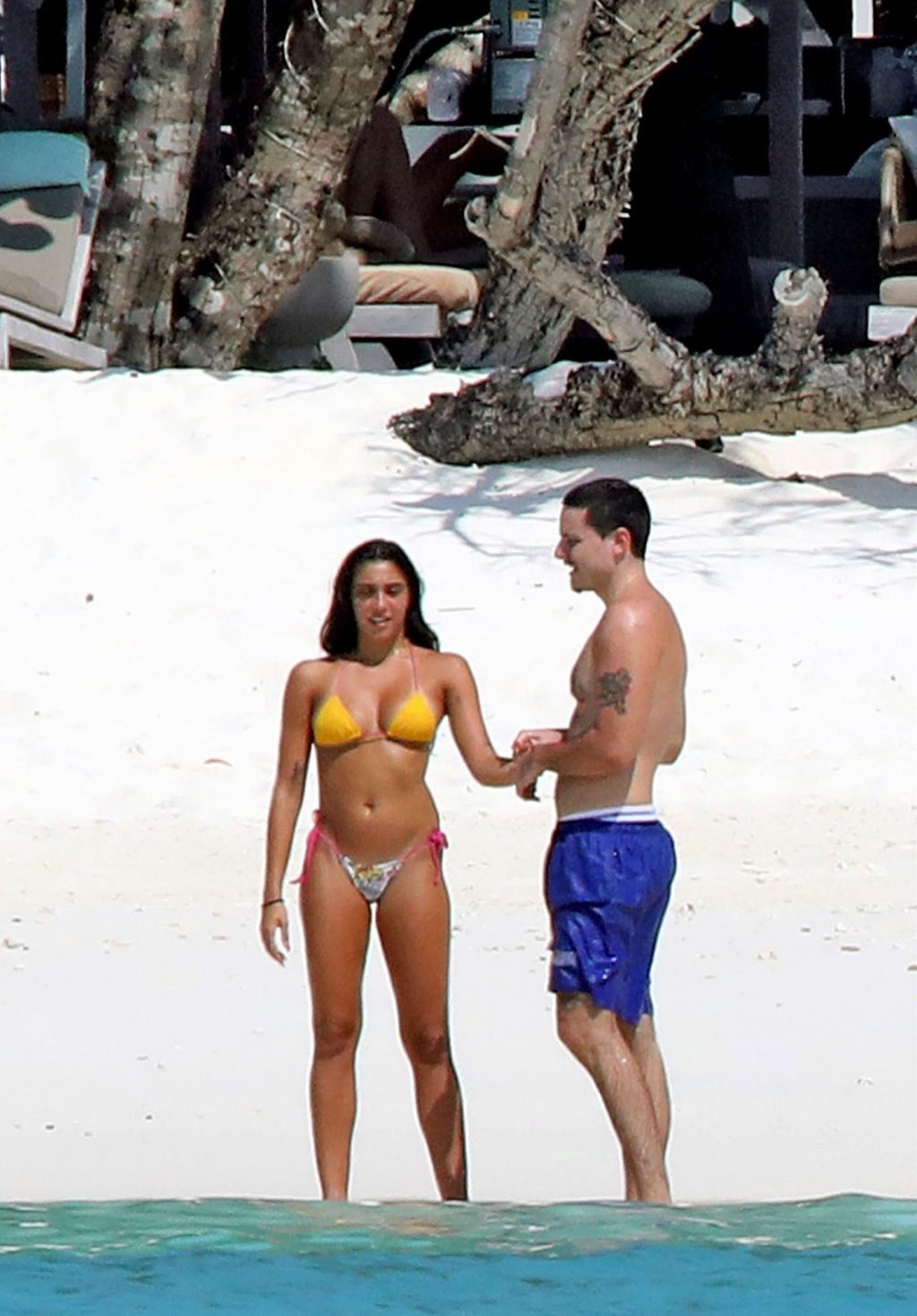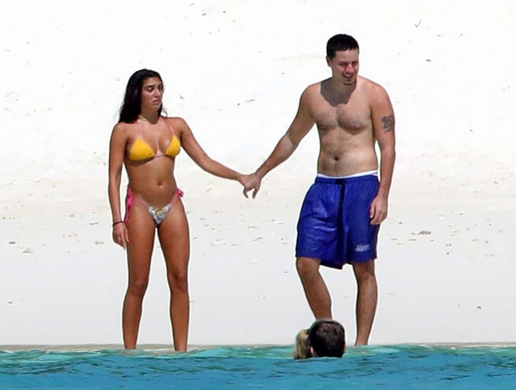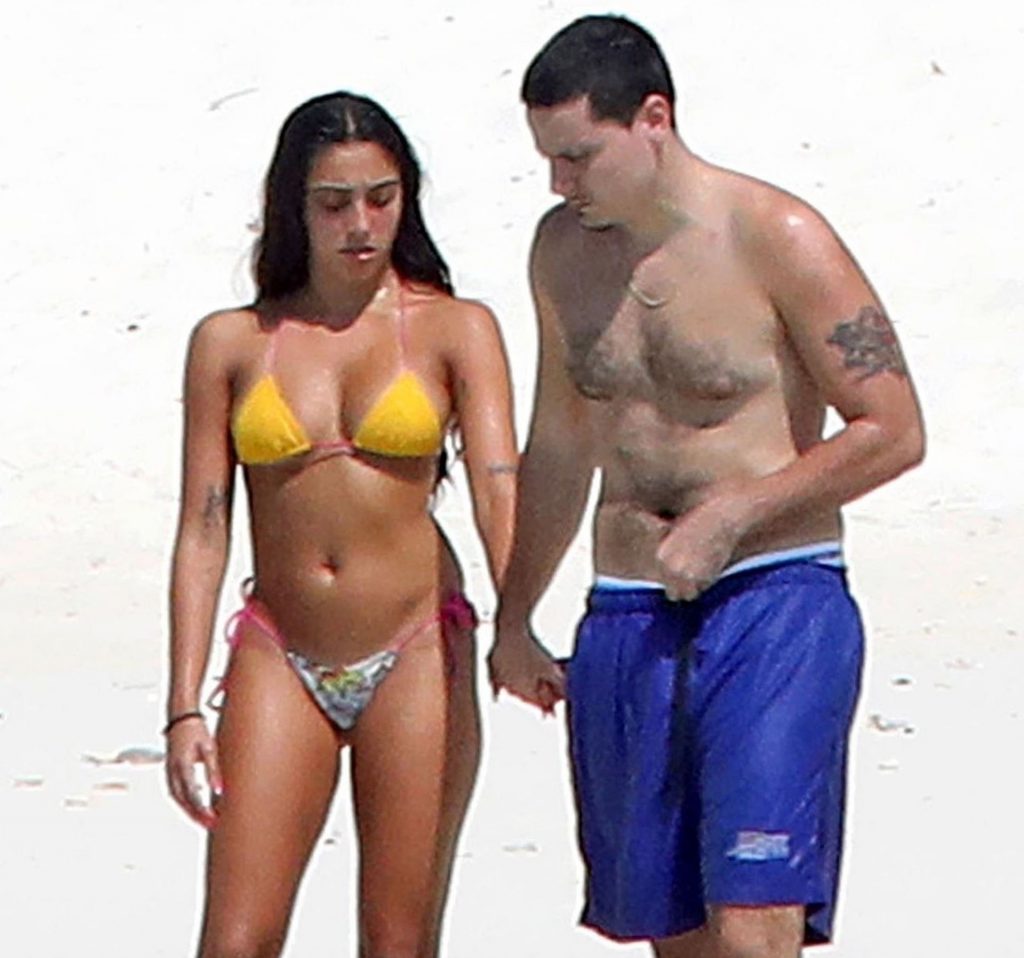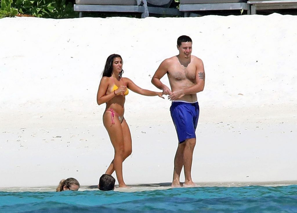 La joven de 23 años deslumbró con un calor de 30 grados usando su pequeño bikini escaso, pero las fotos muestran a Lourdes con una serie de expresiones faciales preocupadas mientras avanzaba con temor hacia el mar con su novio, Jonathan Puglia.