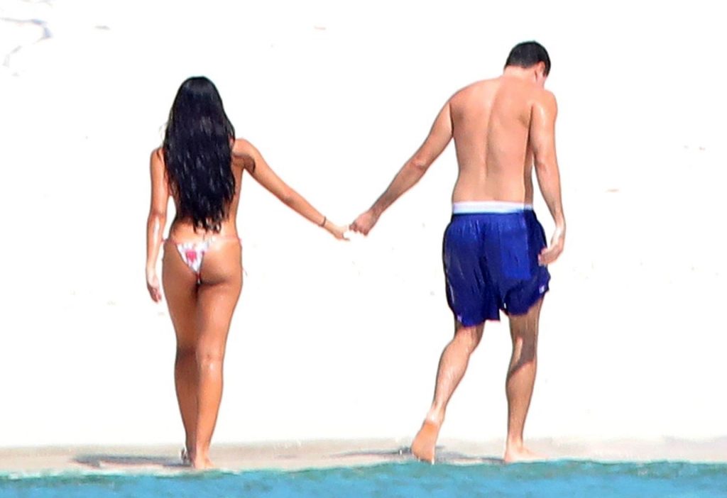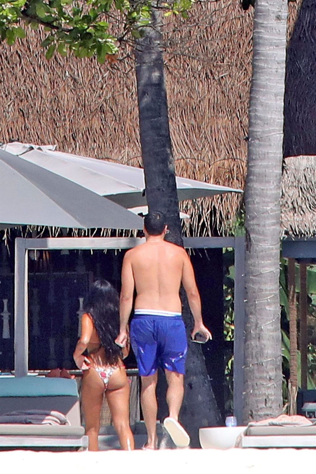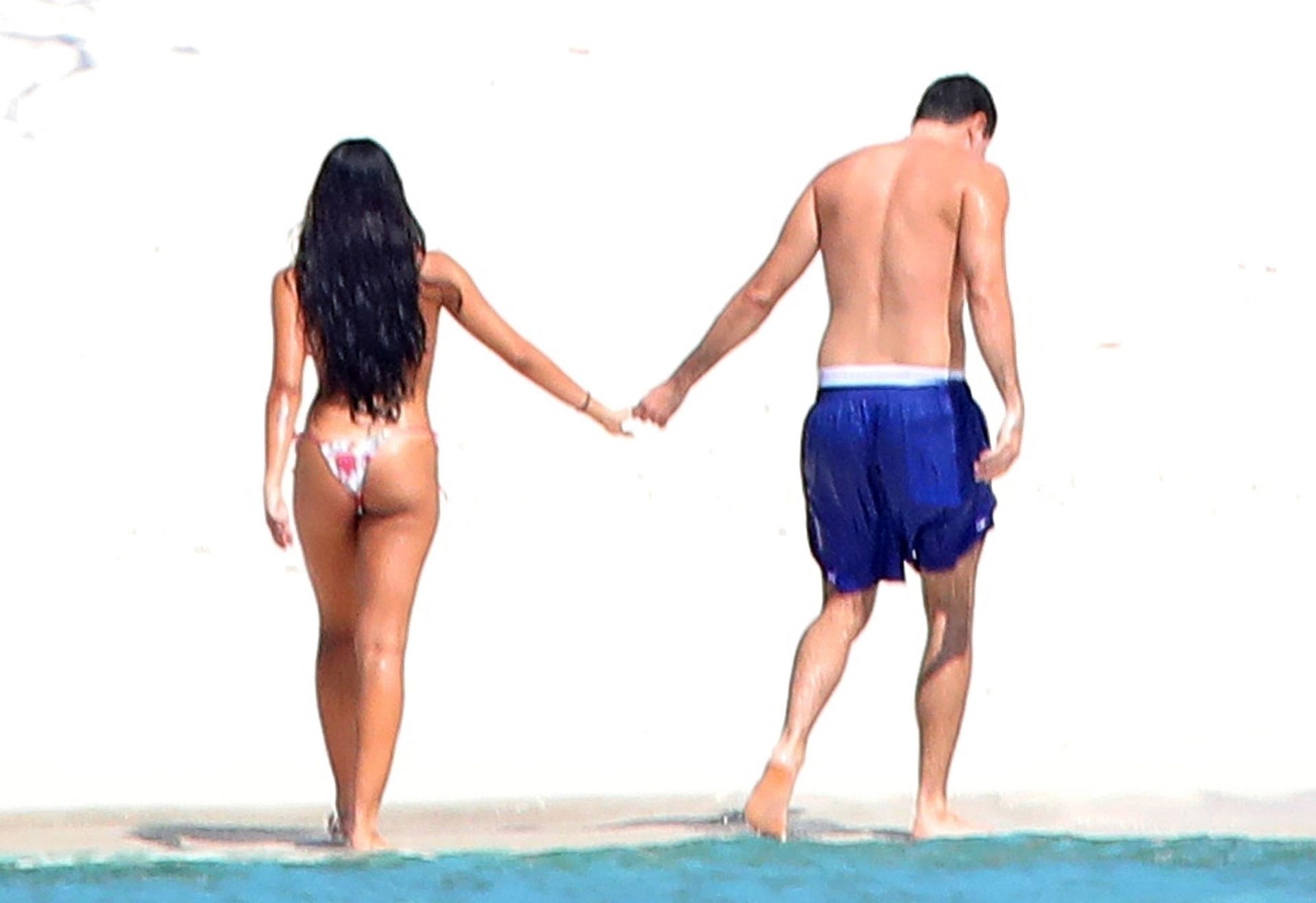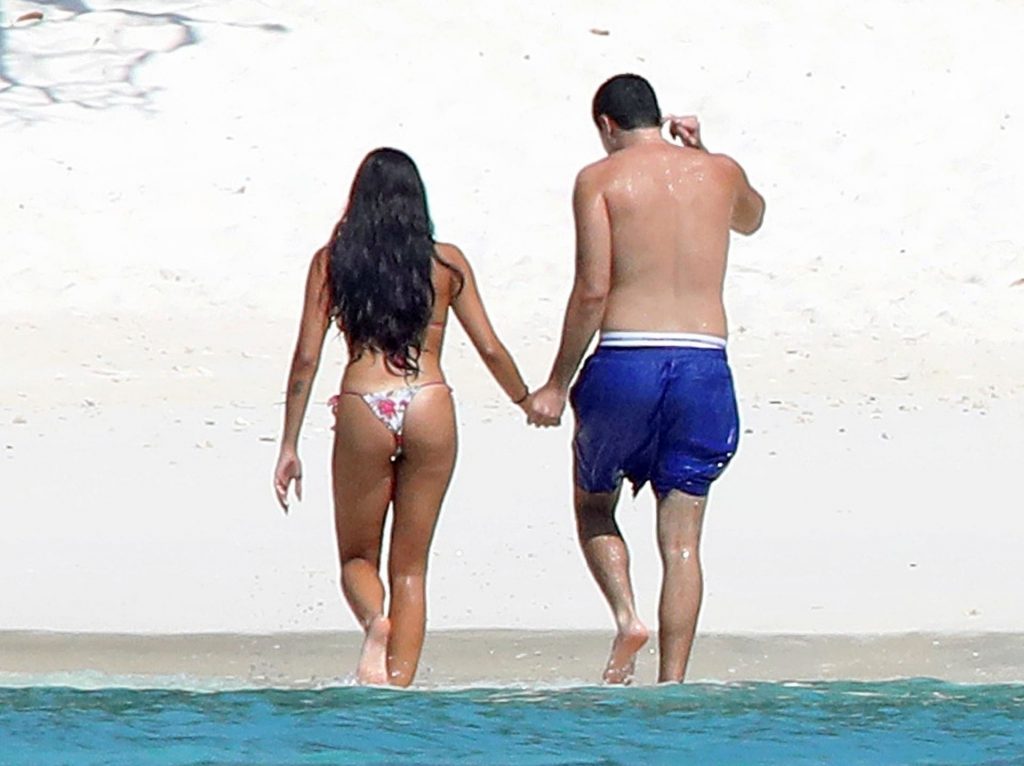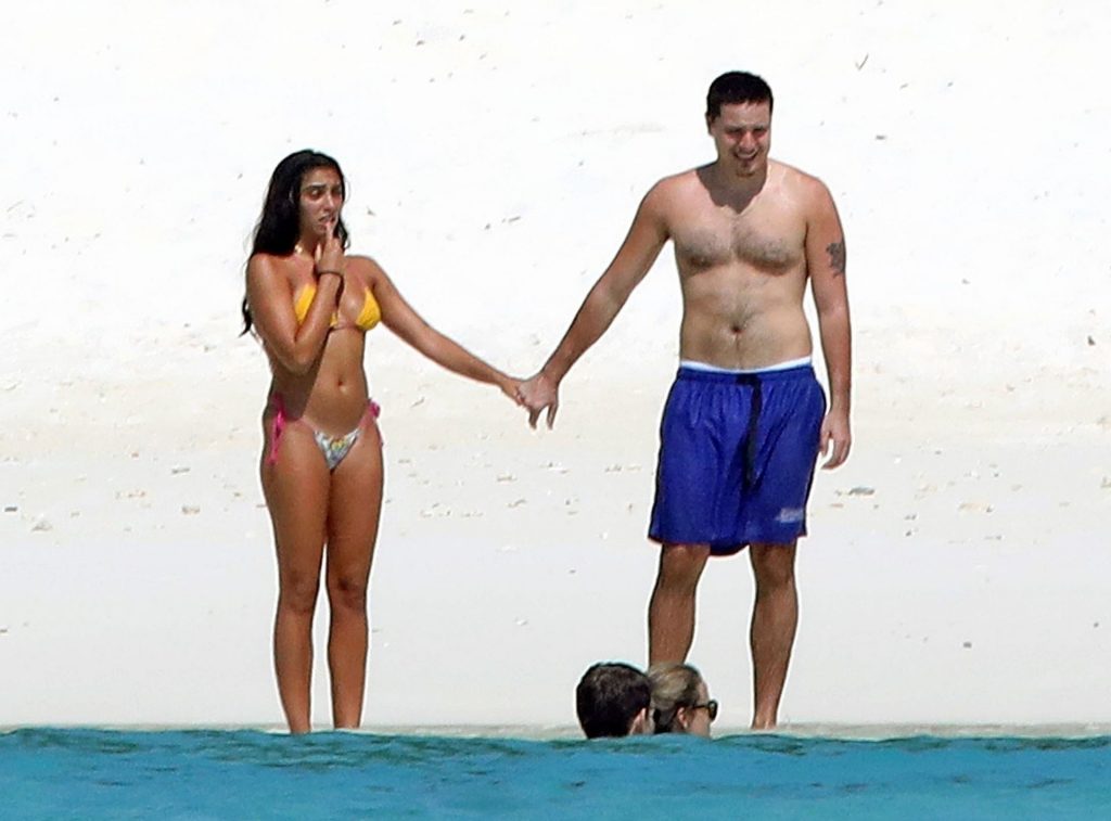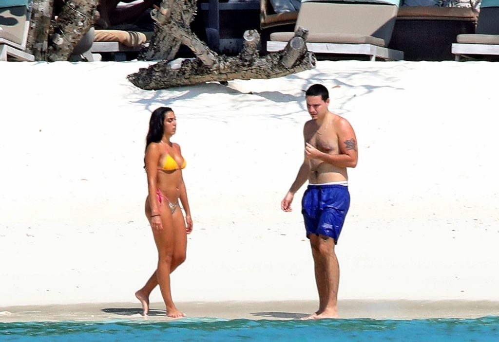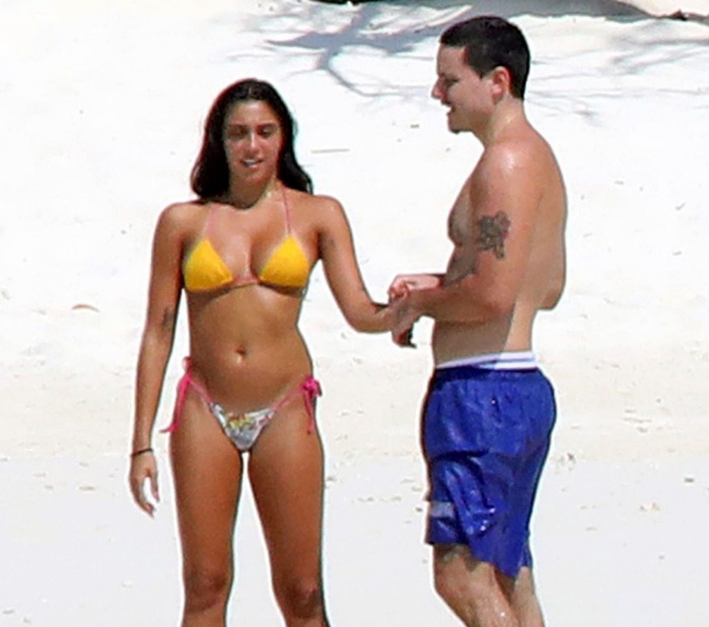 La joven de 23 años deslumbró con un calor de 30 grados usando su pequeño bikini escaso, pero las fotos muestran a Lourdes con una serie de expresiones faciales preocupadas mientras avanzaba con temor hacia el mar con su novio, Jonathan Puglia.