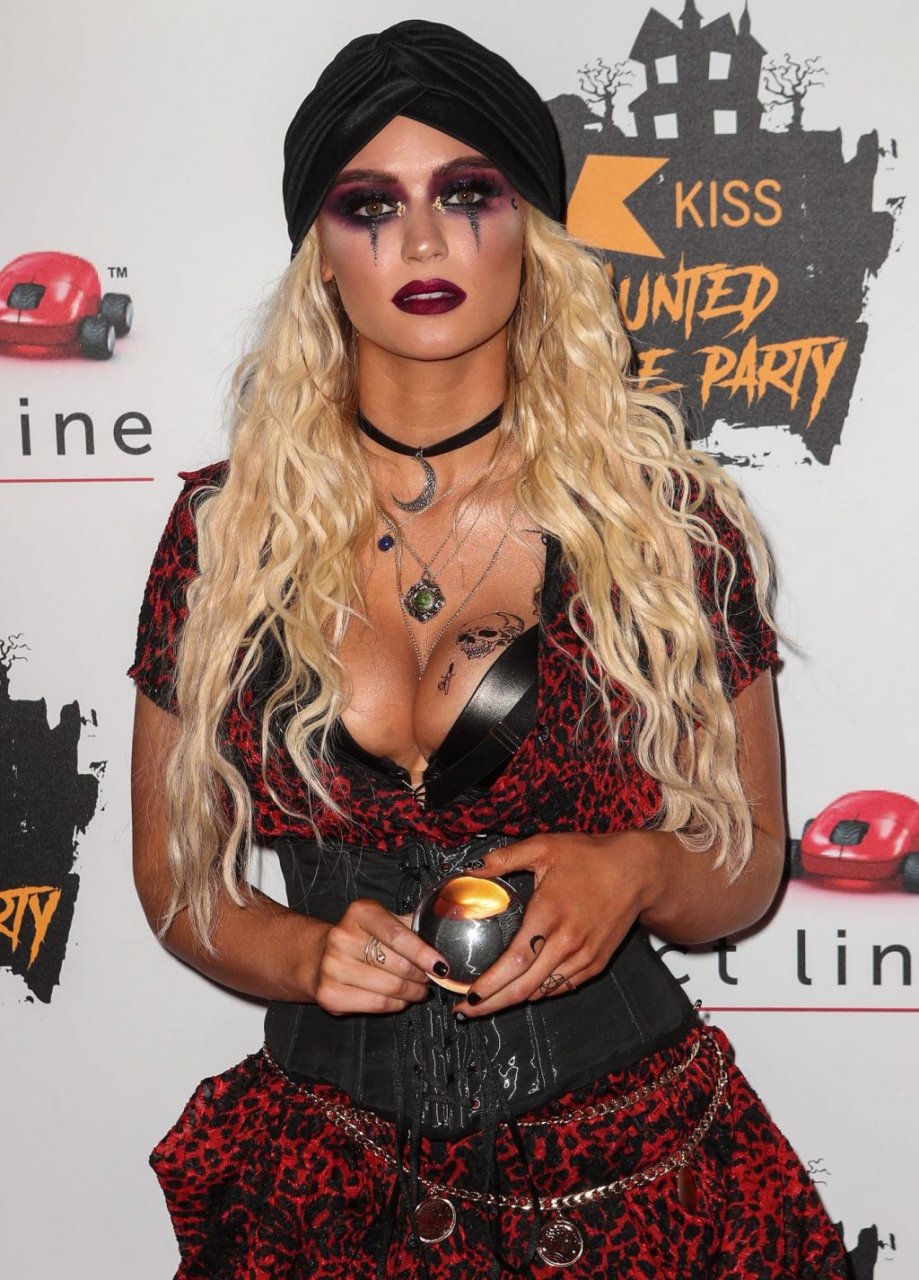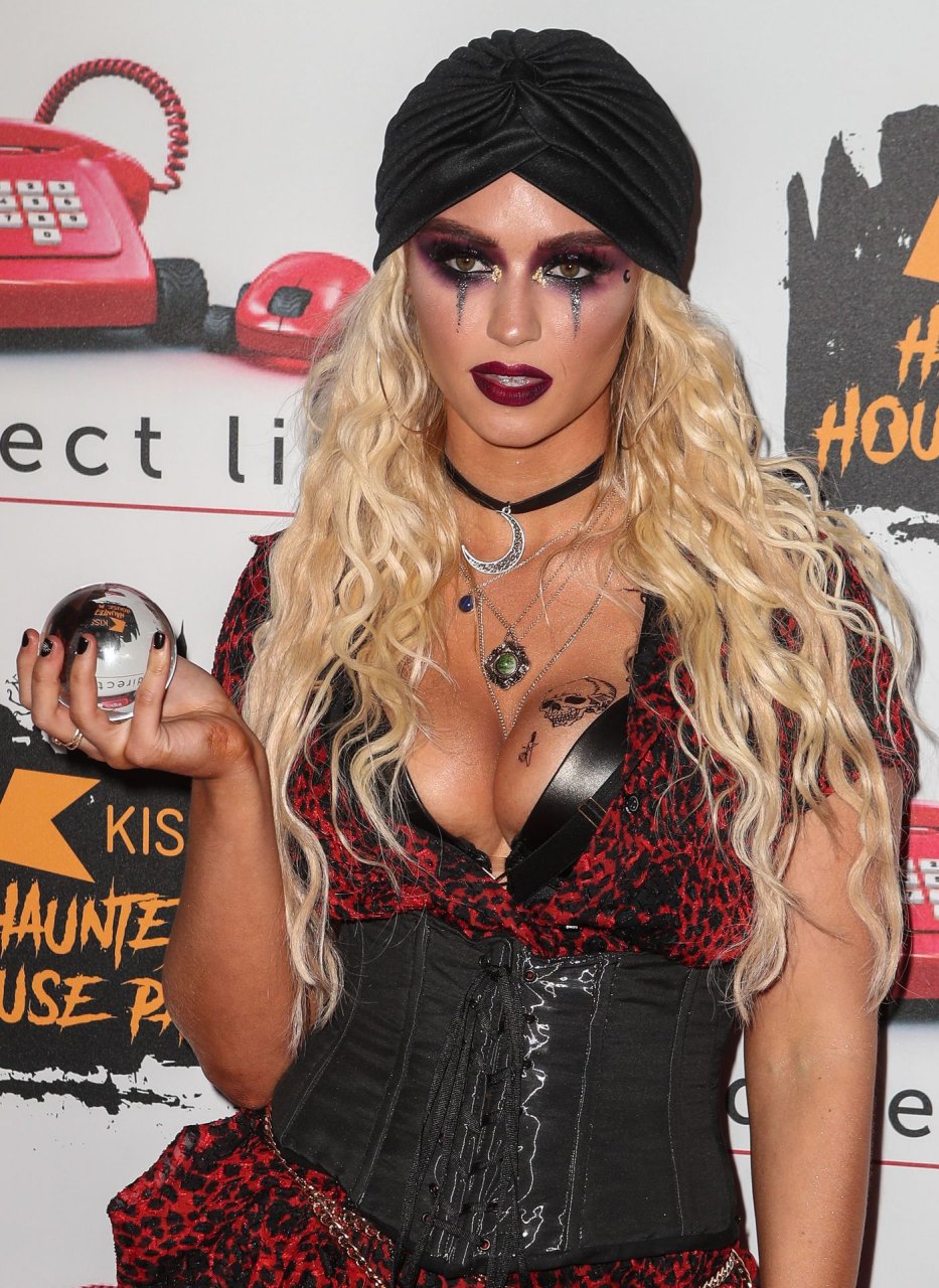 La estrella de “Love Island” Lucie Donlon fue vista como una adivina en la alfombra roja de la Fiesta de la Casa Embrujada KISS FM 2019 en el SSE Arena de Wembley, 25/10/2019.