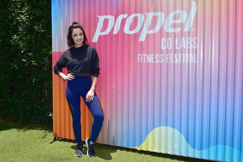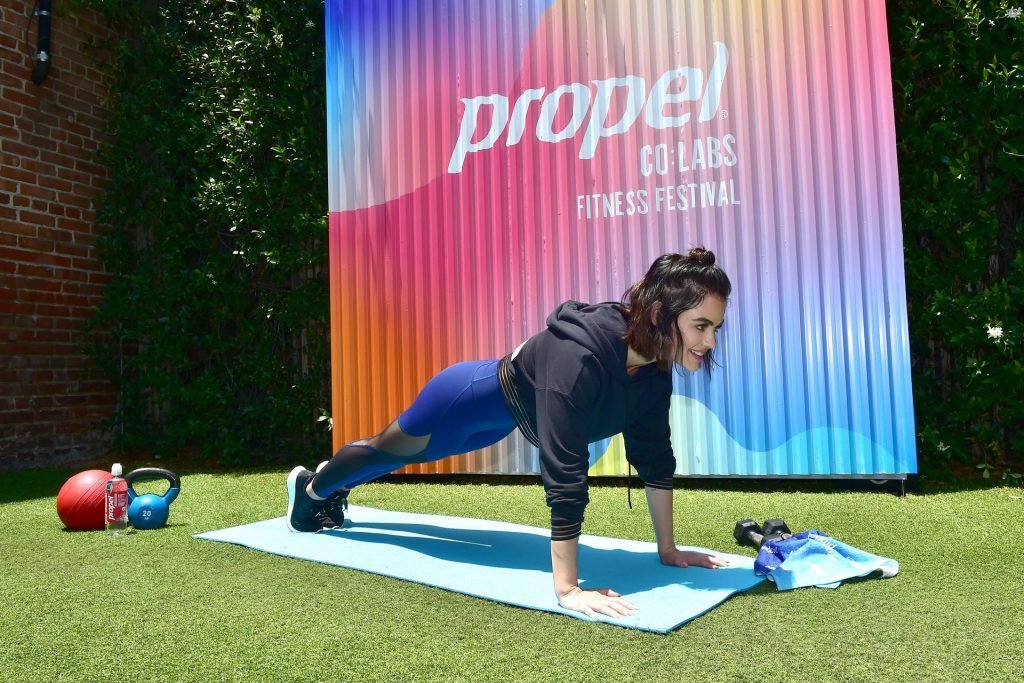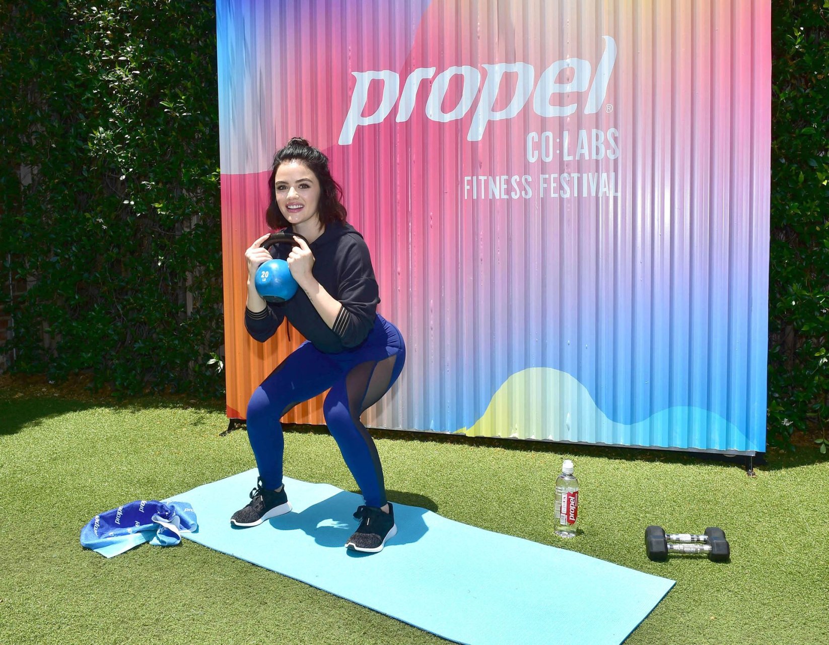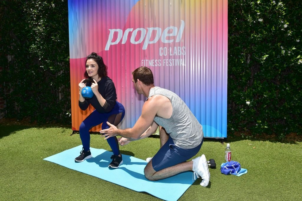 Lucy trains for the Propel Co:Labs Fitness Festival. She`ll be co-leading a group fitness class with Luke Milton of Training Mate at the event in Santa Monica on July 20.