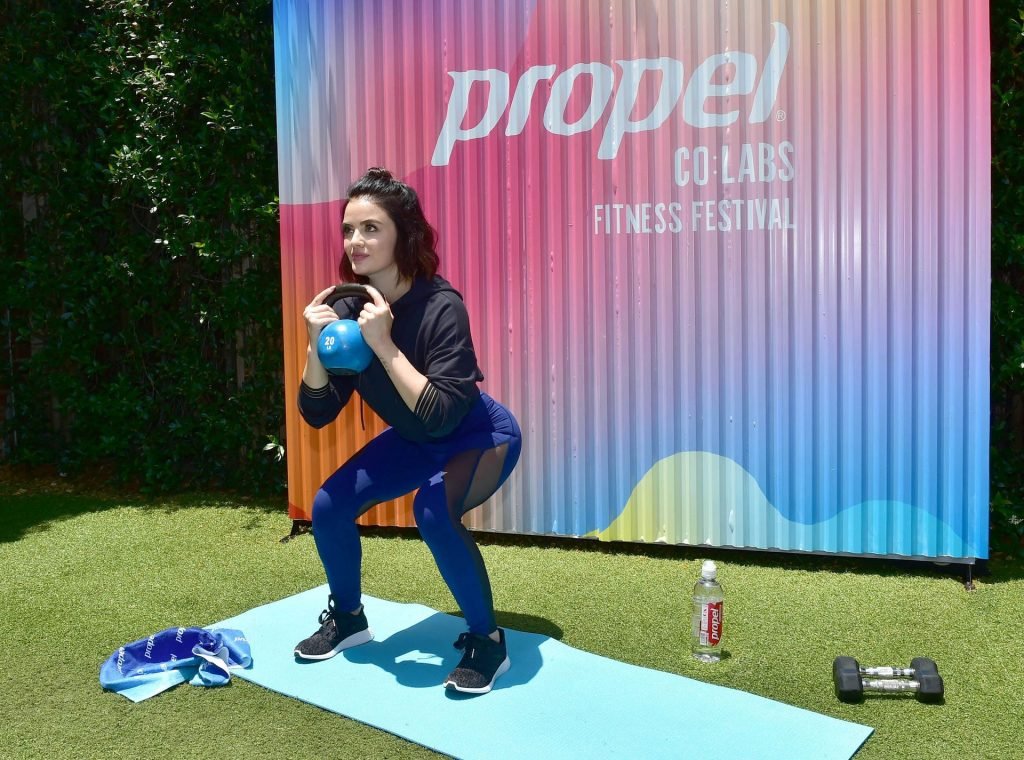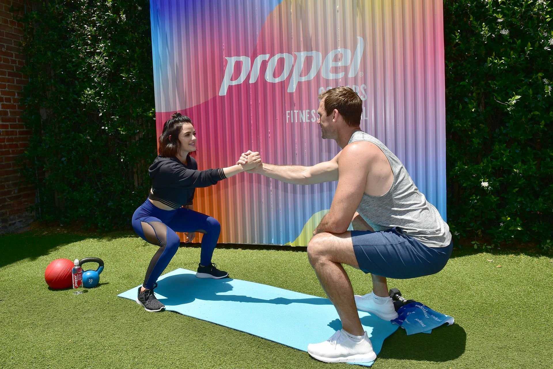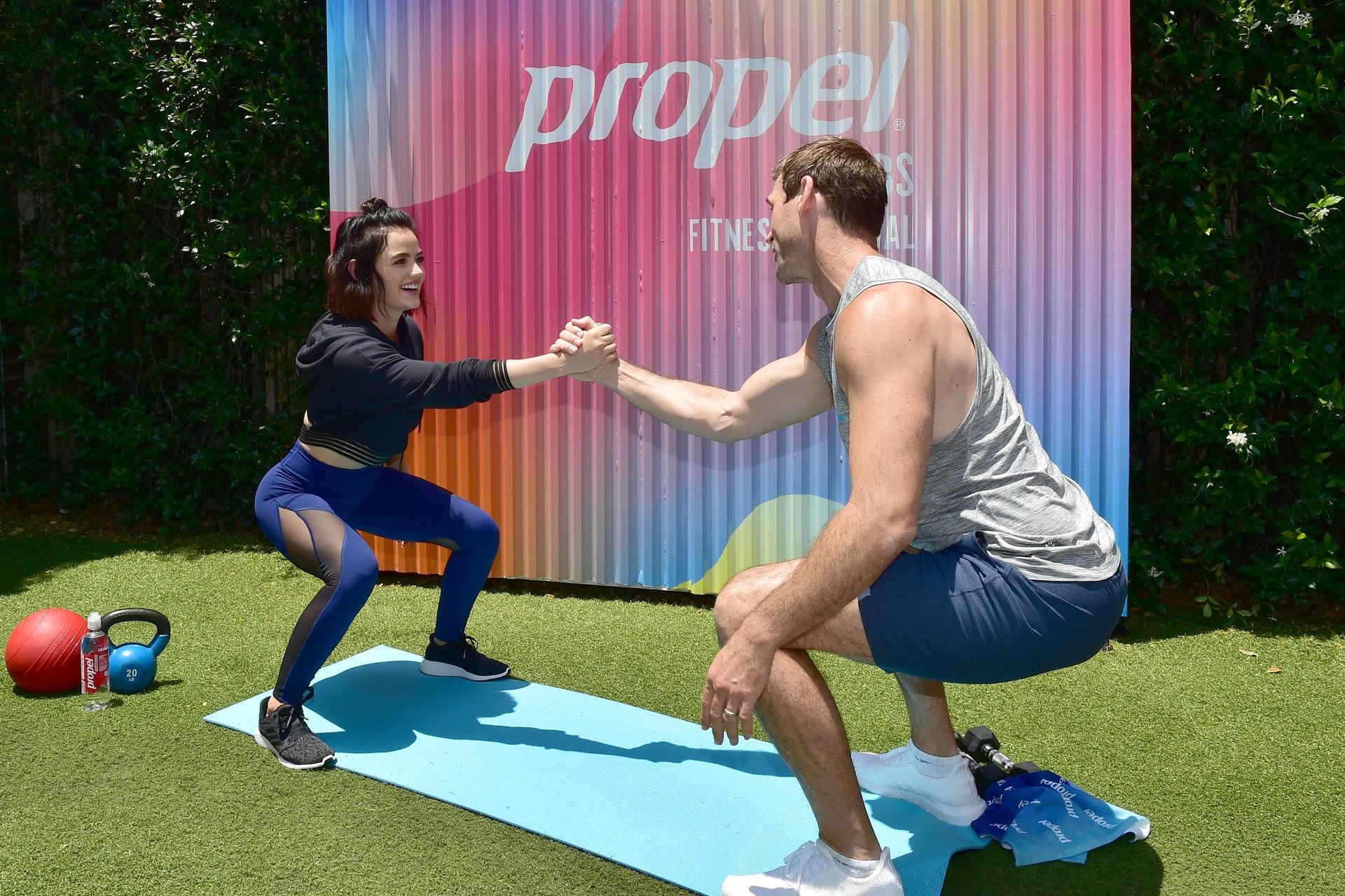 Lucy trains for the Propel Co:Labs Fitness Festival. She`ll be co-leading a group fitness class with Luke Milton of Training Mate at the event in Santa Monica on July 20.