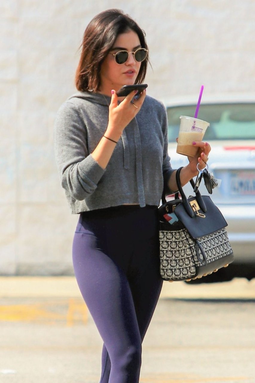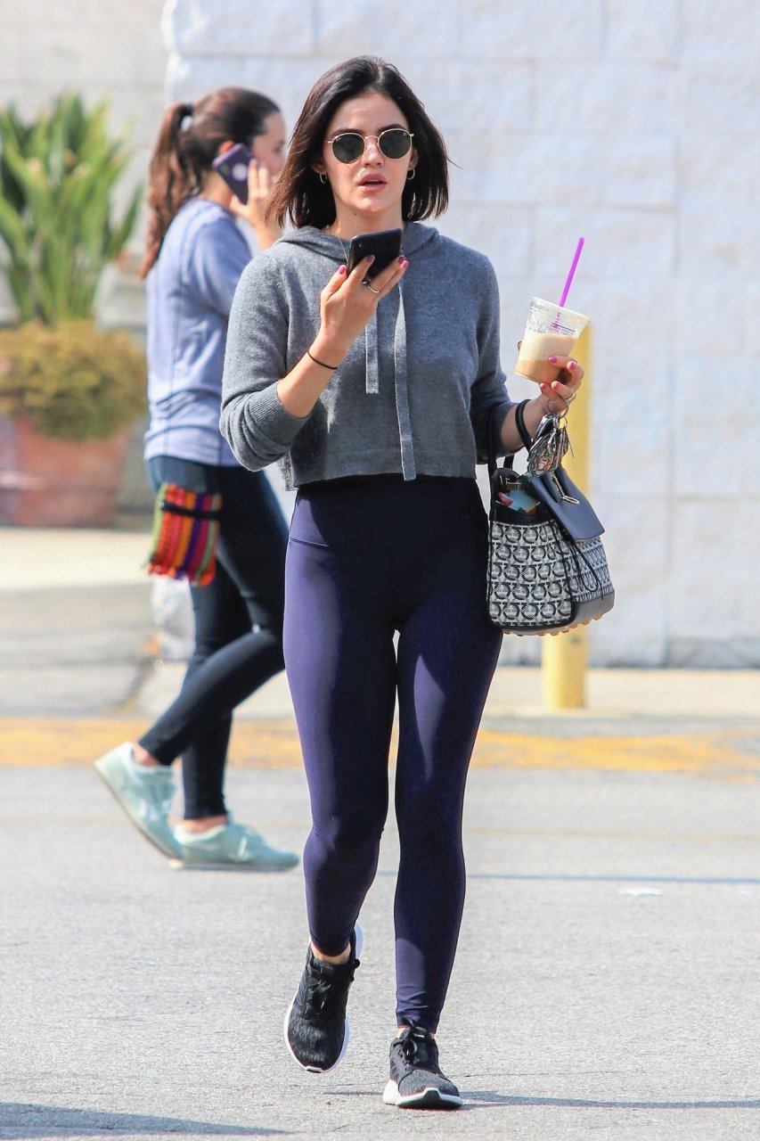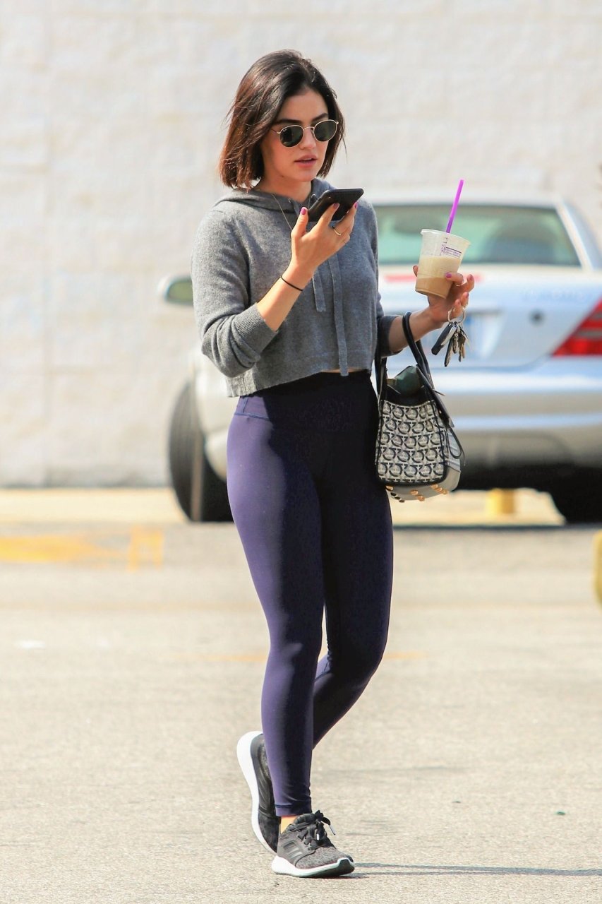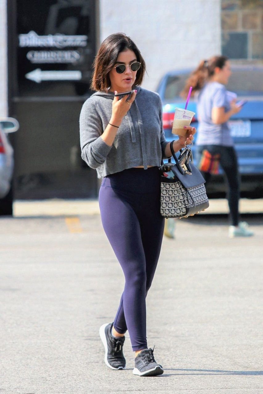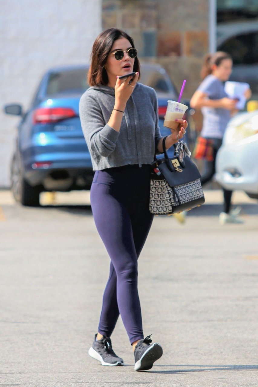 Consulta la nueva colección de fotos de leggings de Lucy Hale (junio de 2019). La actriz/cantante de 30 años fue captada por fotógrafos con ropa deportiva para la promoción del nuevo programa de fitness de verano.