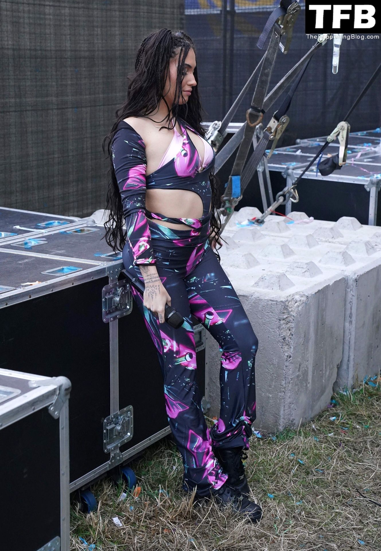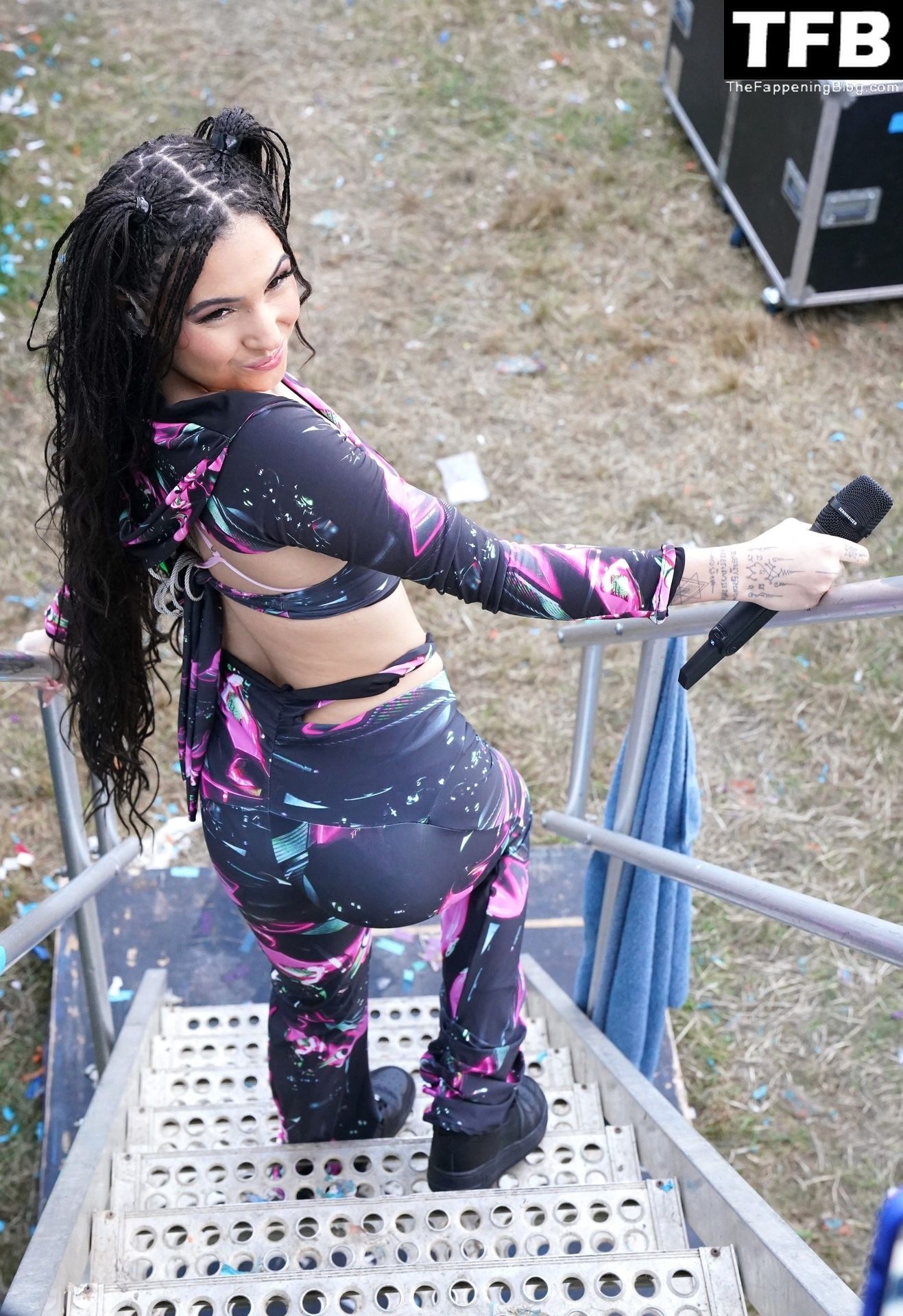 No puedo decir si es ese atuendo espantoso que la hace parecer como si estuviera construida como un alce o si realmente está construida como un alce.