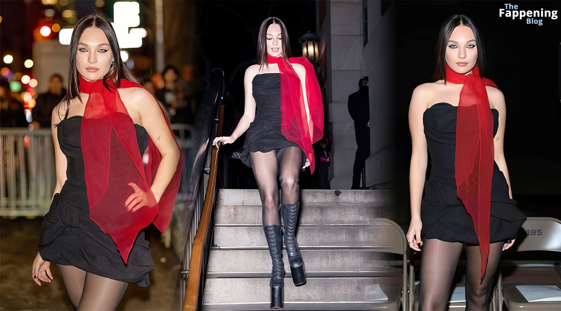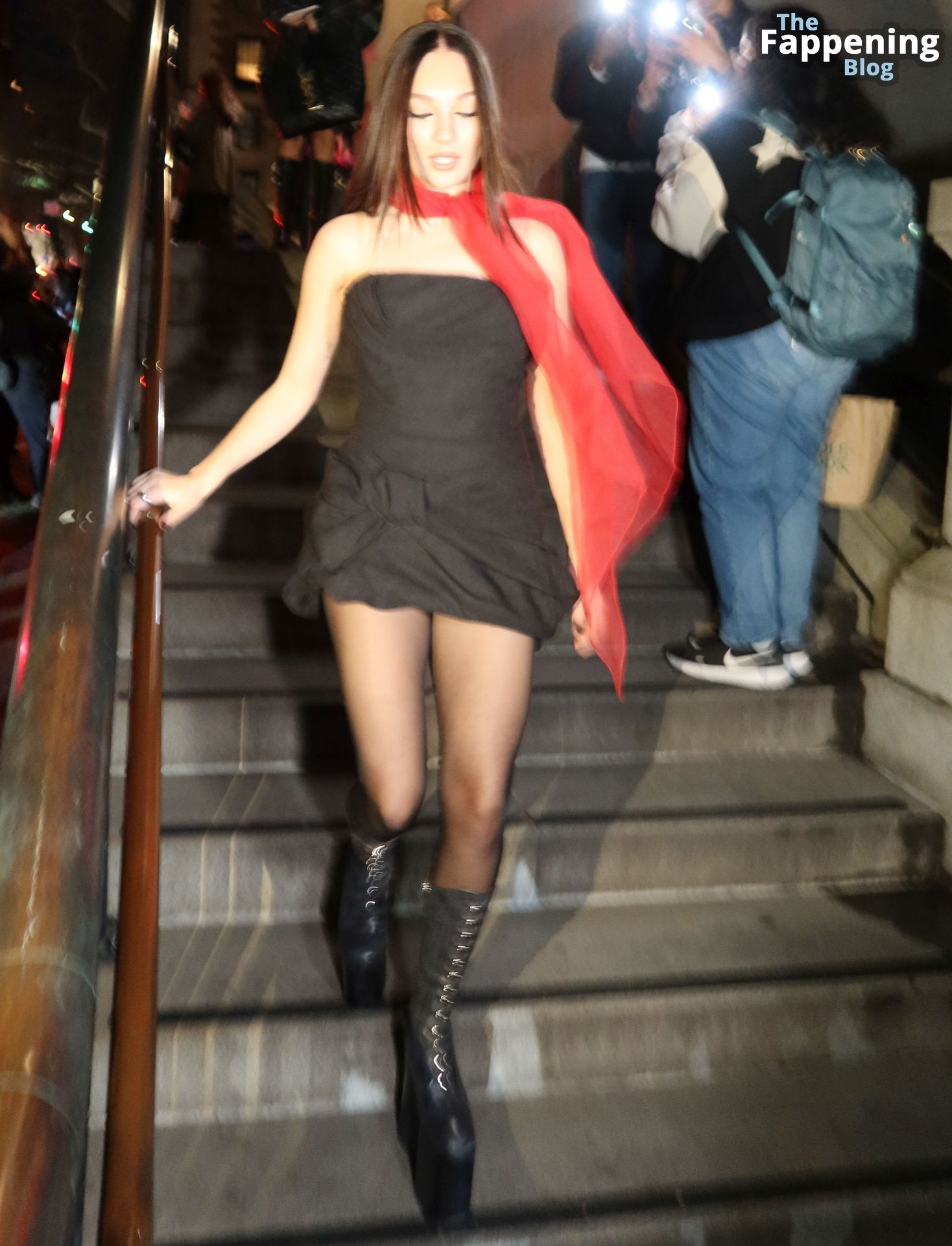 ¡Disfruta el estilo sexy y de piernas largas de Maddie Ziegler después del desfile de Marc Jacobs! Con un mini vestido ardiente, pantimedias negras y un toque de sensualidad, aquí lo tienes todo para admirar.