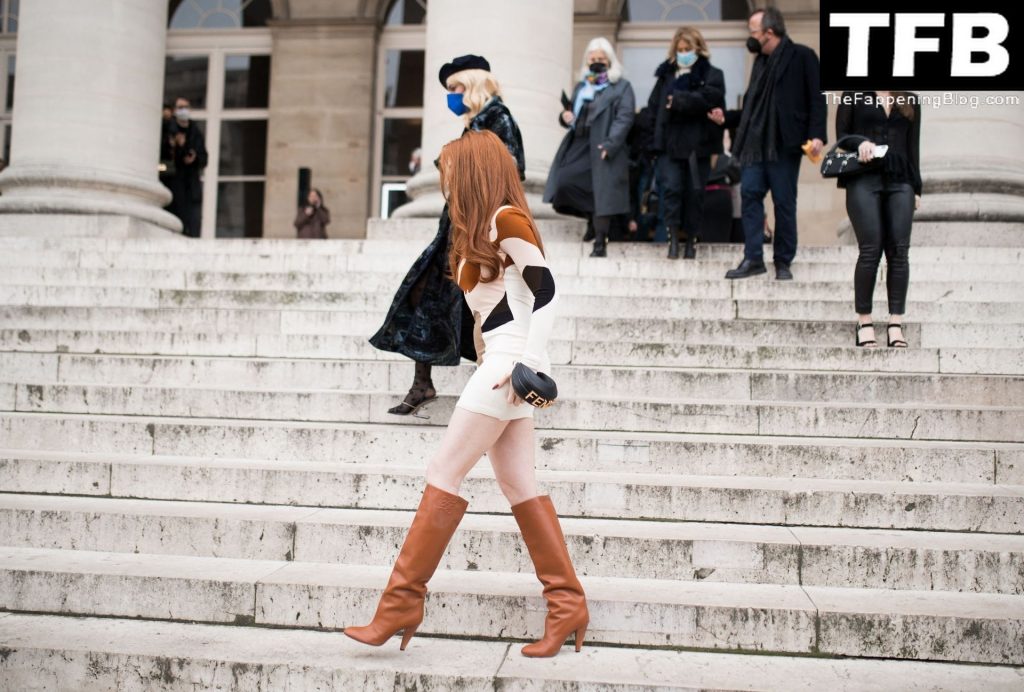 Actriz Madelaine Petsch asiste al desfile de Fendi Haute Couture Primavera-Verano 2022 como parte de la Semana de la Moda de París en París, 28/01/2022.