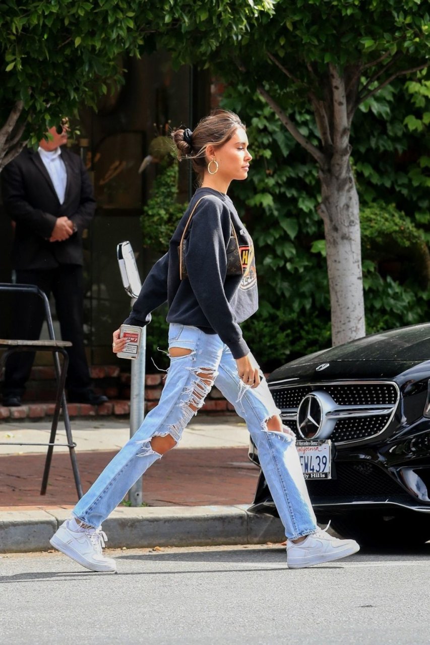 Cantante, la atractiva Madison Beer de 20 años ha regresado al oeste de Los Ángeles después de volver del Festival de Cine de Cannes y la joven cantante de R&B sale con unos jeans muy desgastados y zapatillas Nike para tomar un café con una amiga en Alfred Coffee en West Hollywood, 21/05/2019.