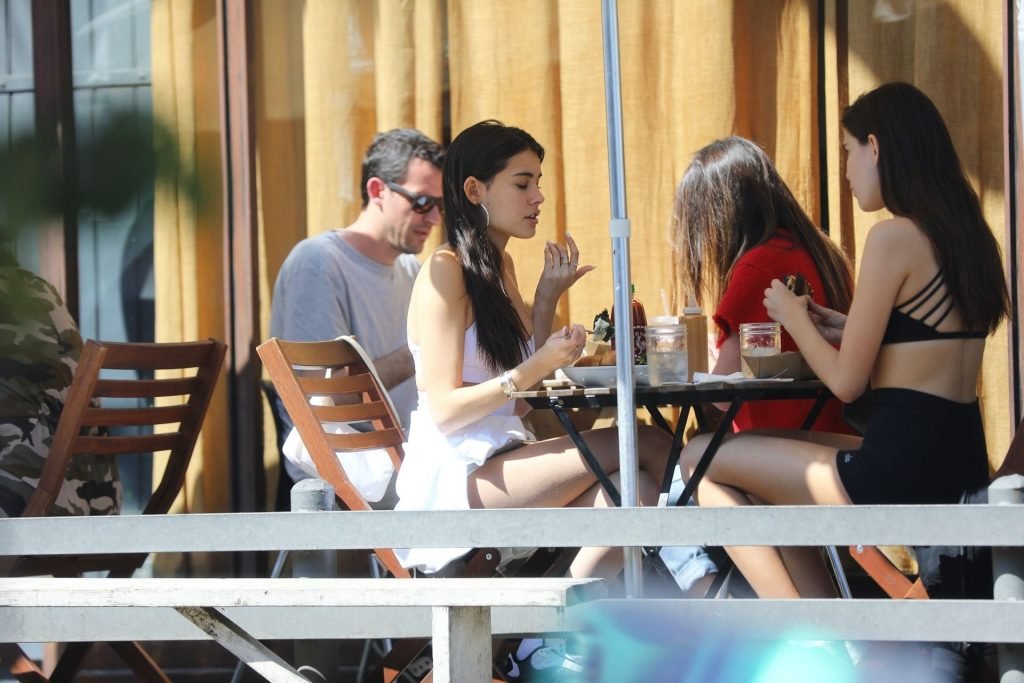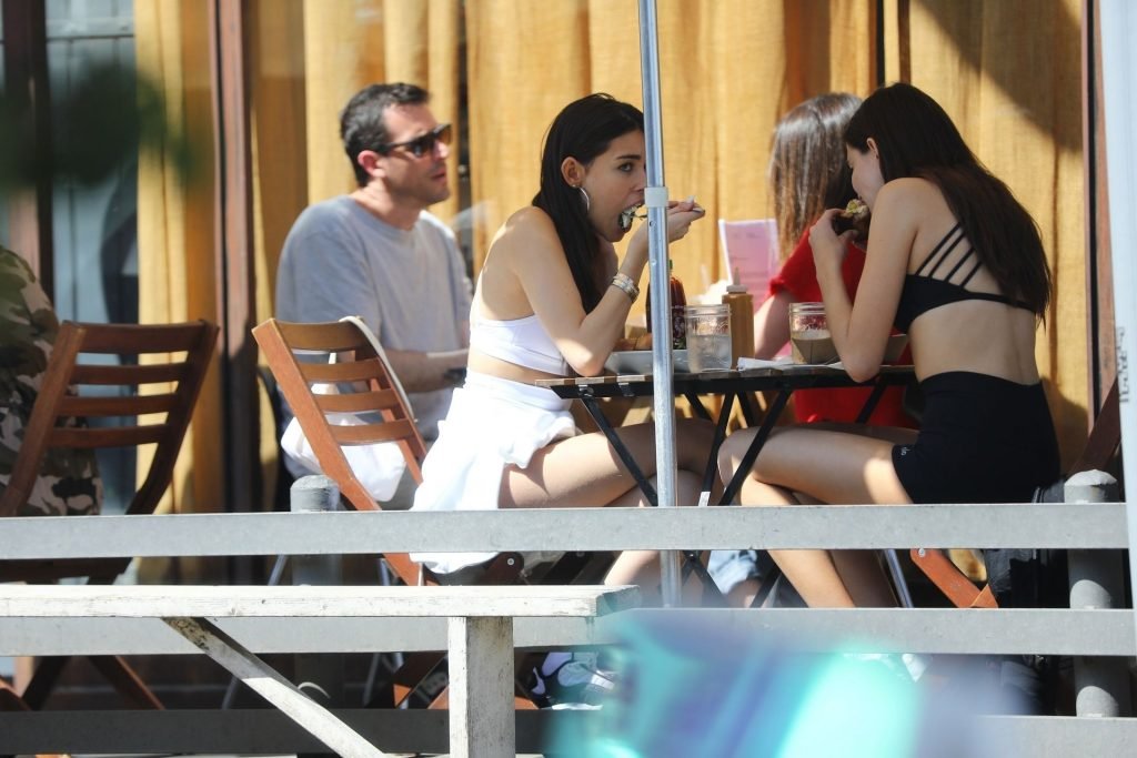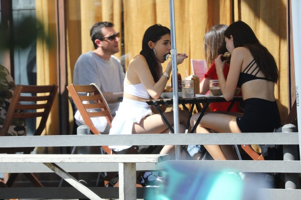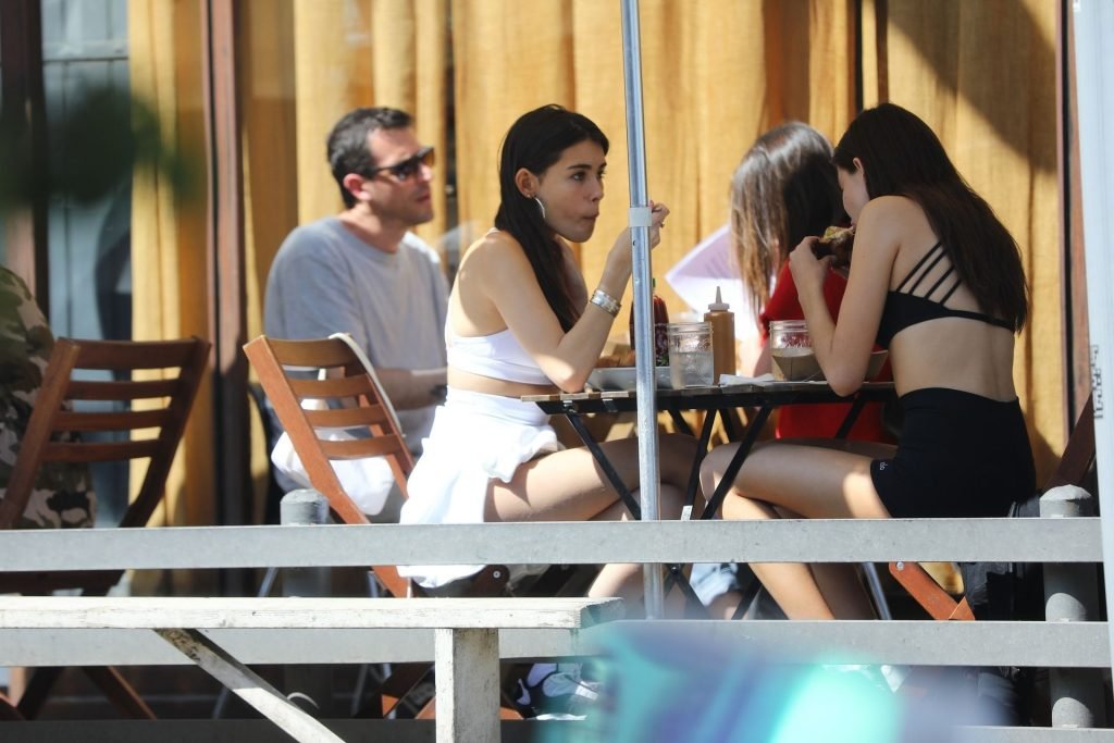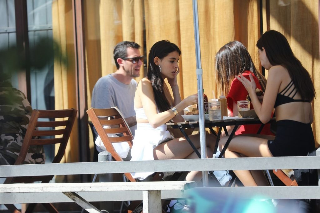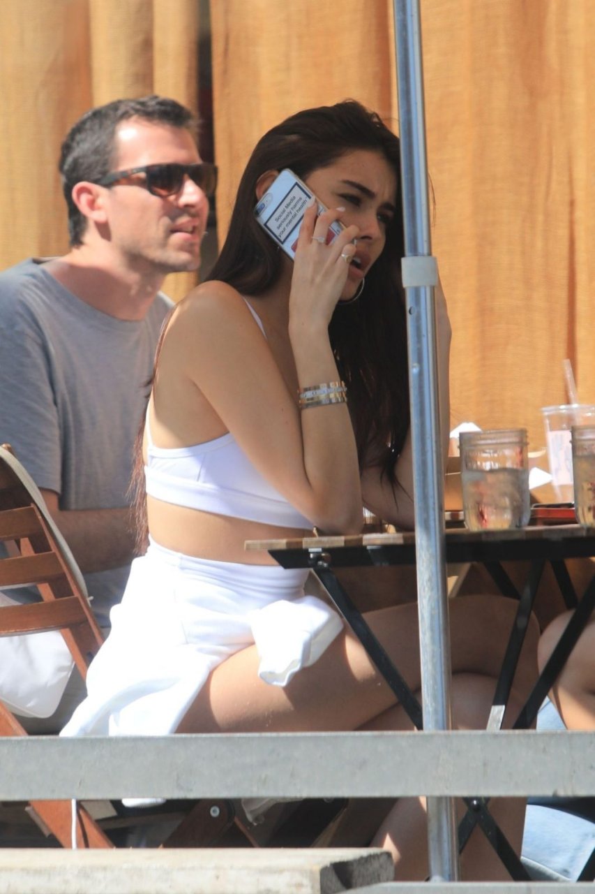 Madison Beer muestra su figura delgada con pantalones cortos blancos y un top corto a juego mientras ella y una amiga compran jeans de mezclilla después de un almuerzo al aire libre juntas en West Hollywood, 18/03/2019.