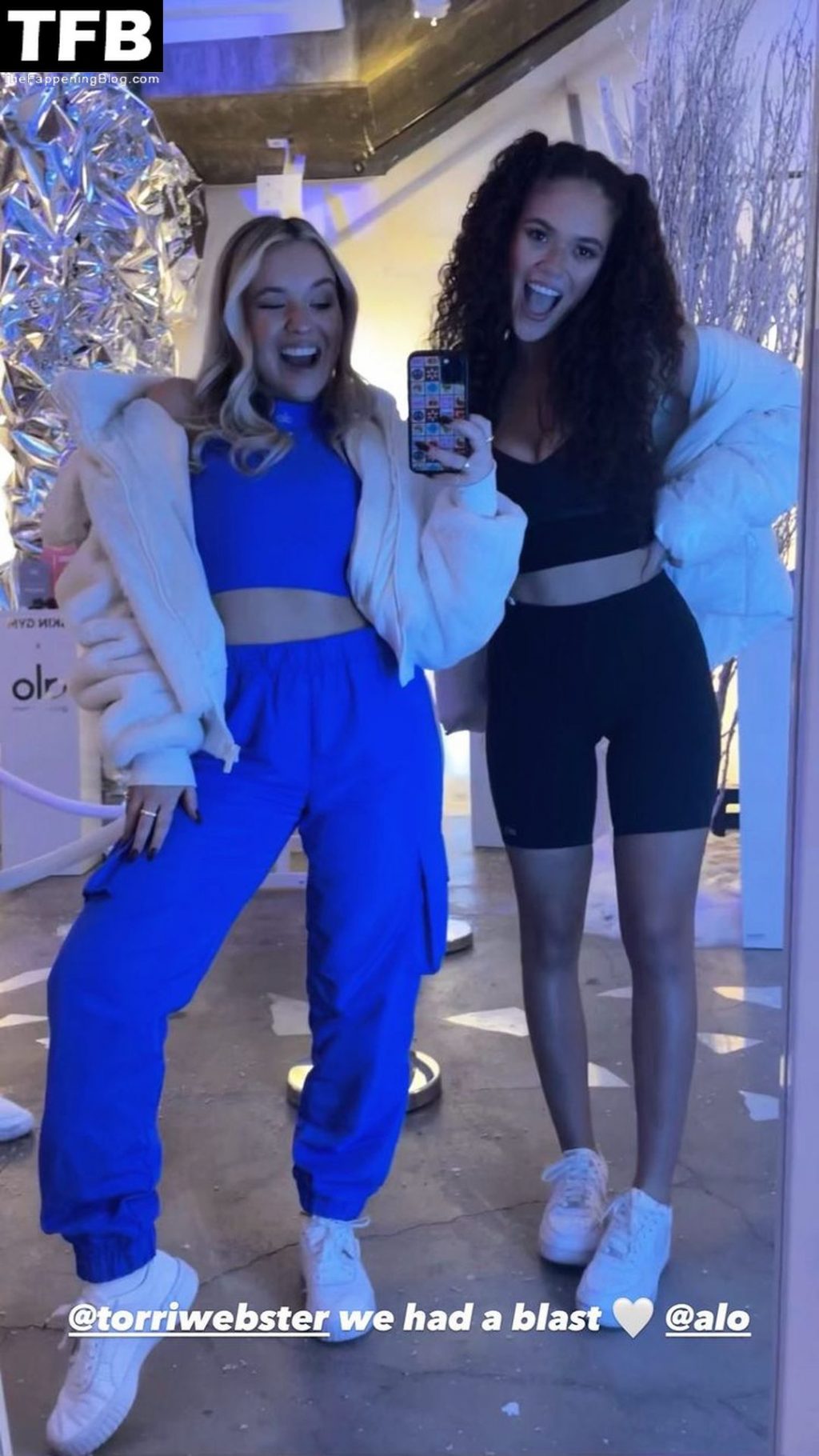 Actriz Madison Pettis muestra su bonito escote con un top deportivo en Alo House Winter 2021 – Día 2 en Los Ángeles, 11/03/2021.