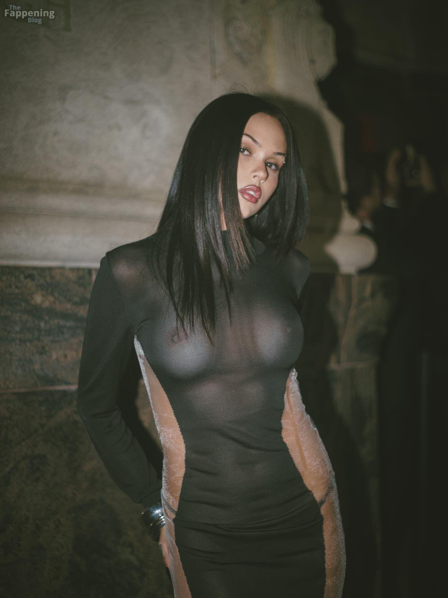 Maggie Lindemann presume sus tetas y trasero desnudos en un vestido transparente de Grace Ling en NYFW.