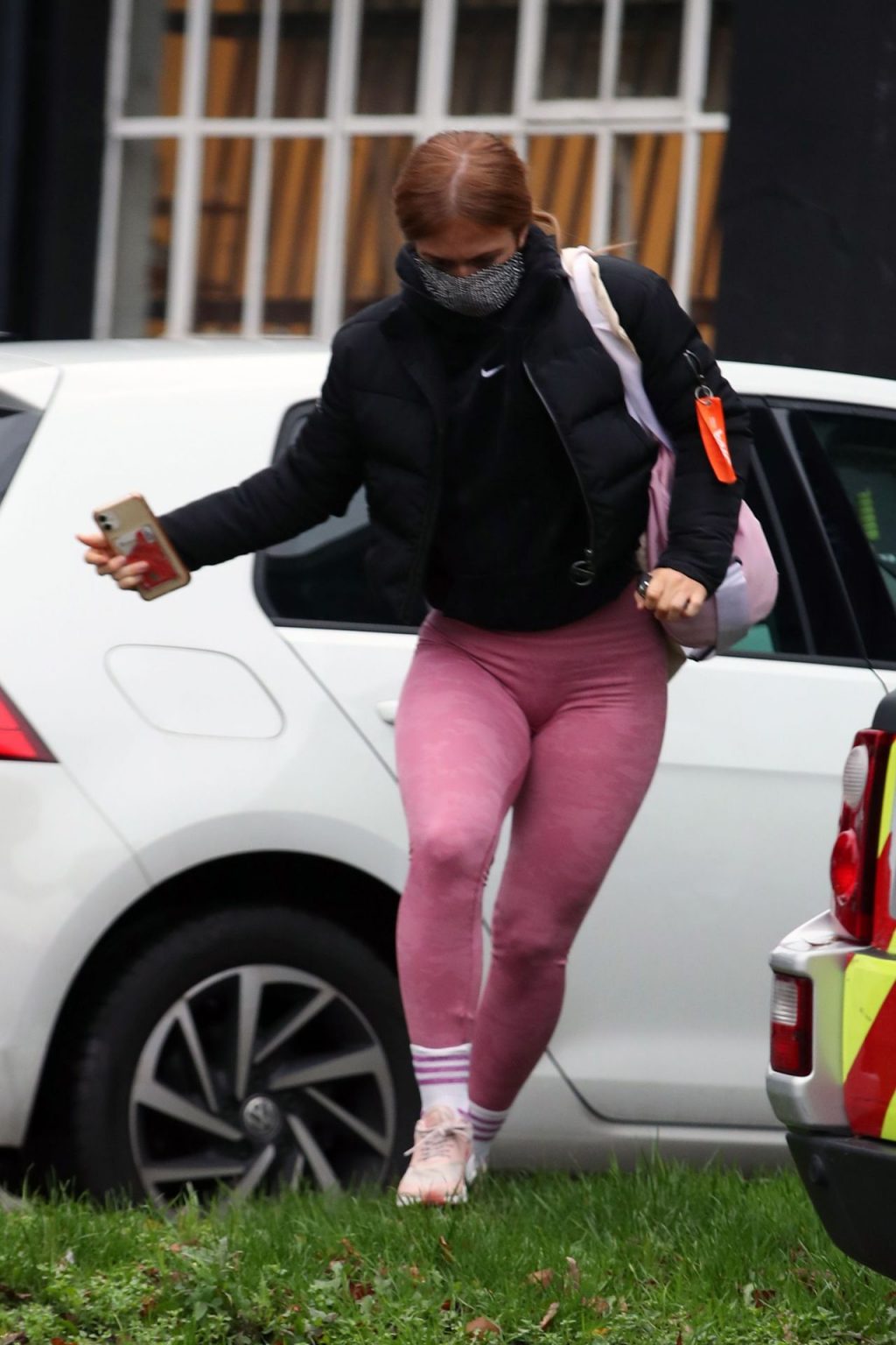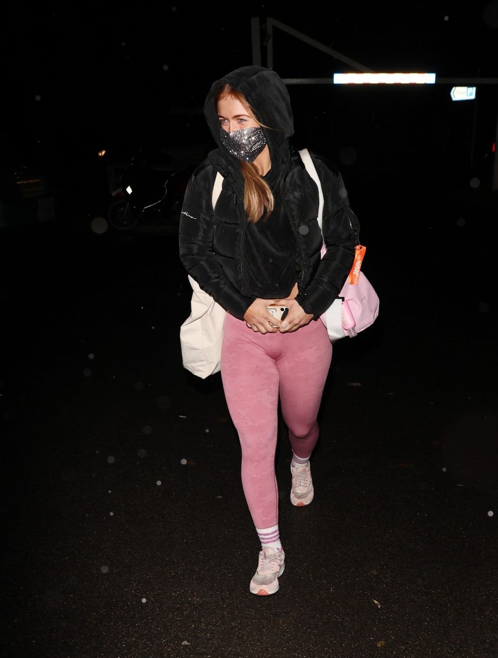 “Eastenders”, actriz y estrella de “Strictly Come Dancing” Maisie Smith muestra el pulgar hacia arriba mientras es fotografiada llegando y saliendo de los estudios de ensayo de Strictly usando una mascarilla en Londres, 16/11/2020.