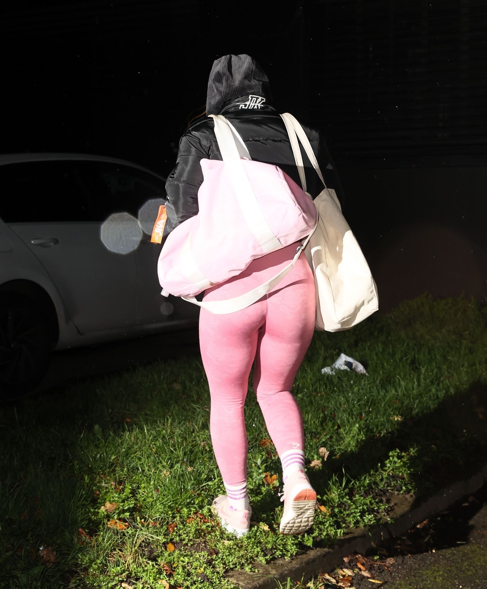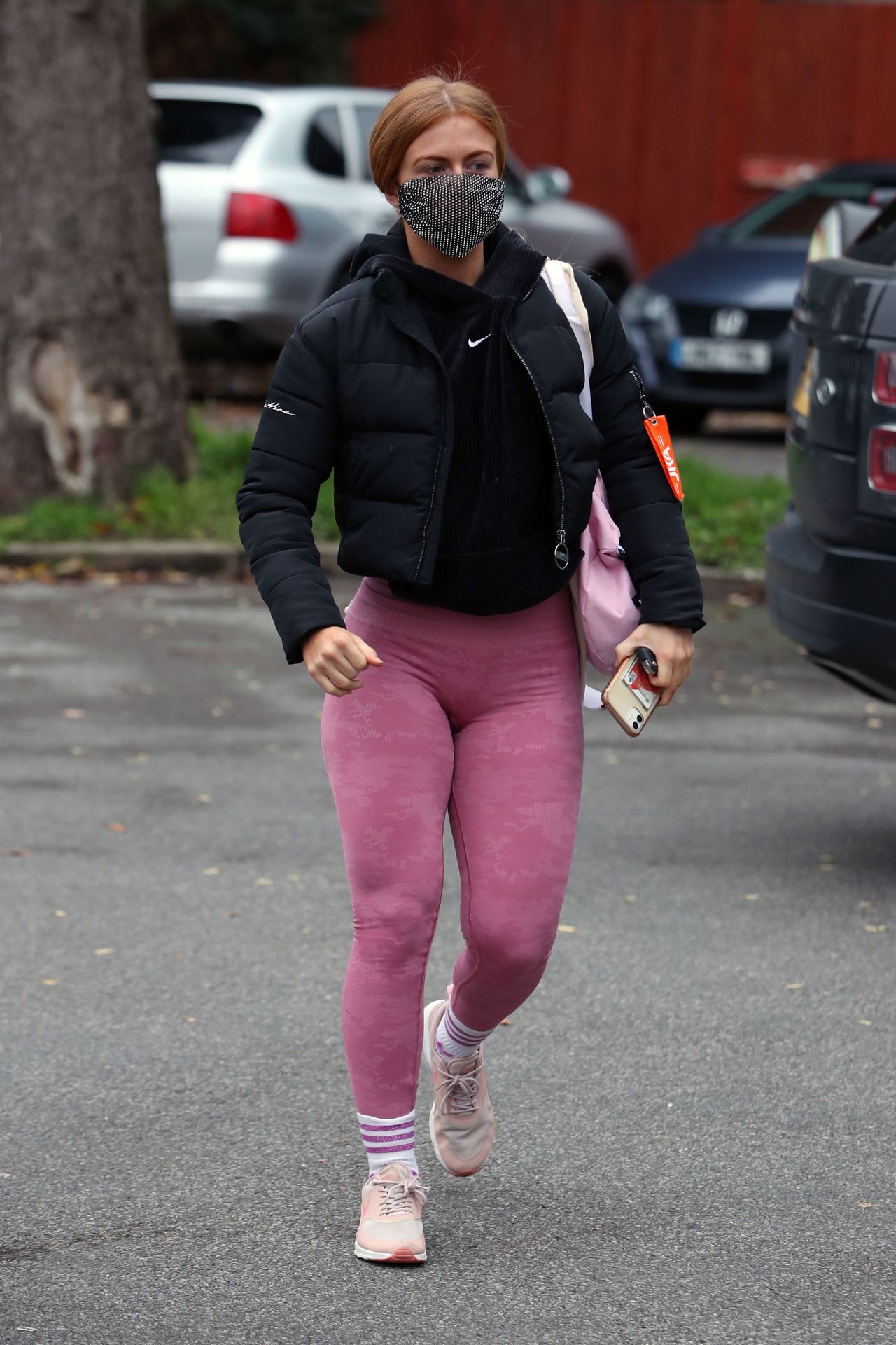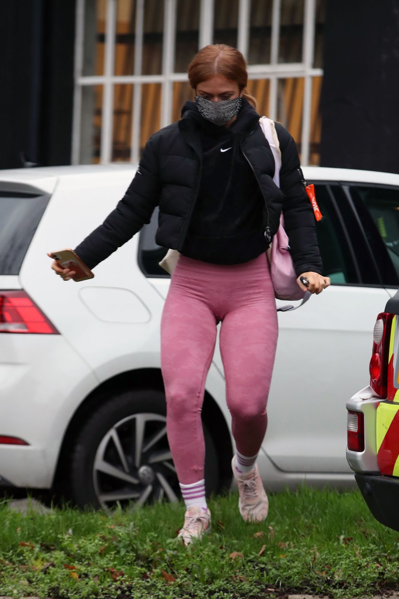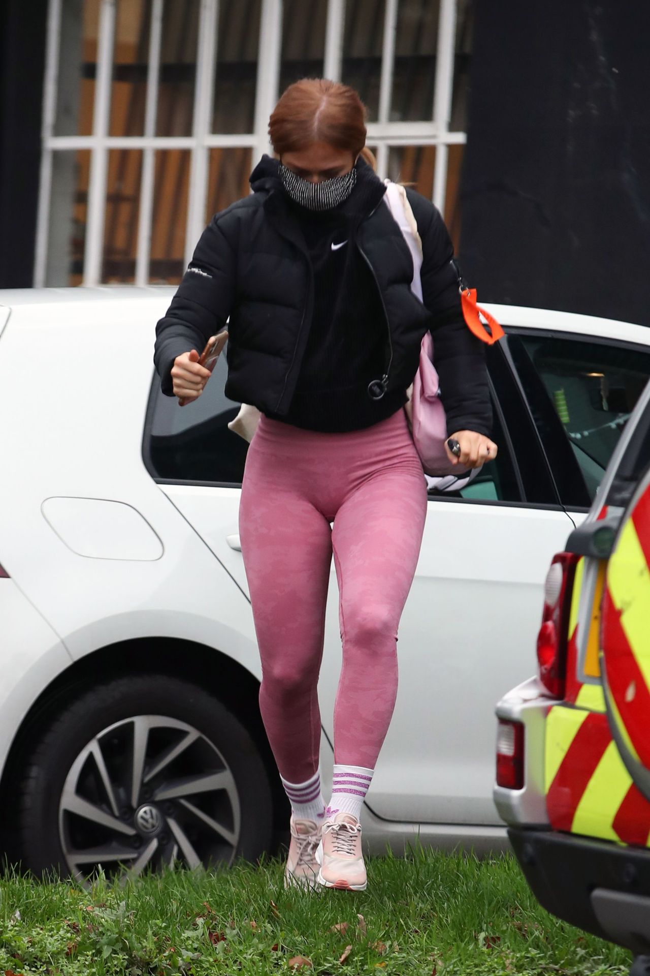 “Eastenders”, actriz y estrella de “Strictly Come Dancing” Maisie Smith muestra el pulgar hacia arriba mientras es fotografiada llegando y saliendo de los estudios de ensayo de Strictly usando una mascarilla en Londres, 16/11/2020.