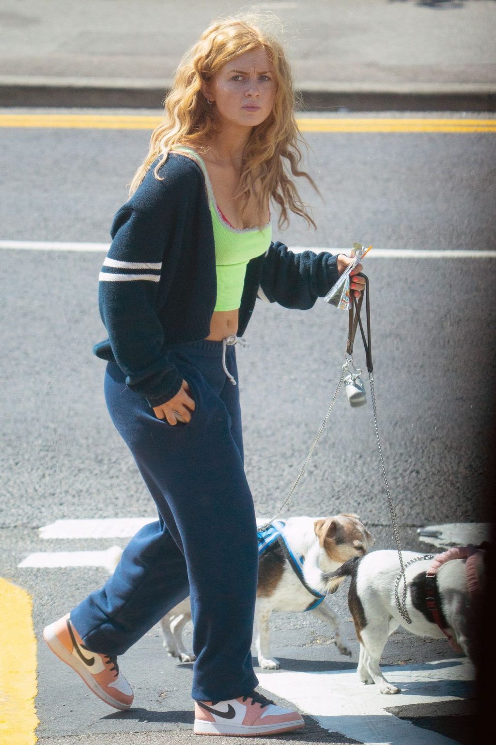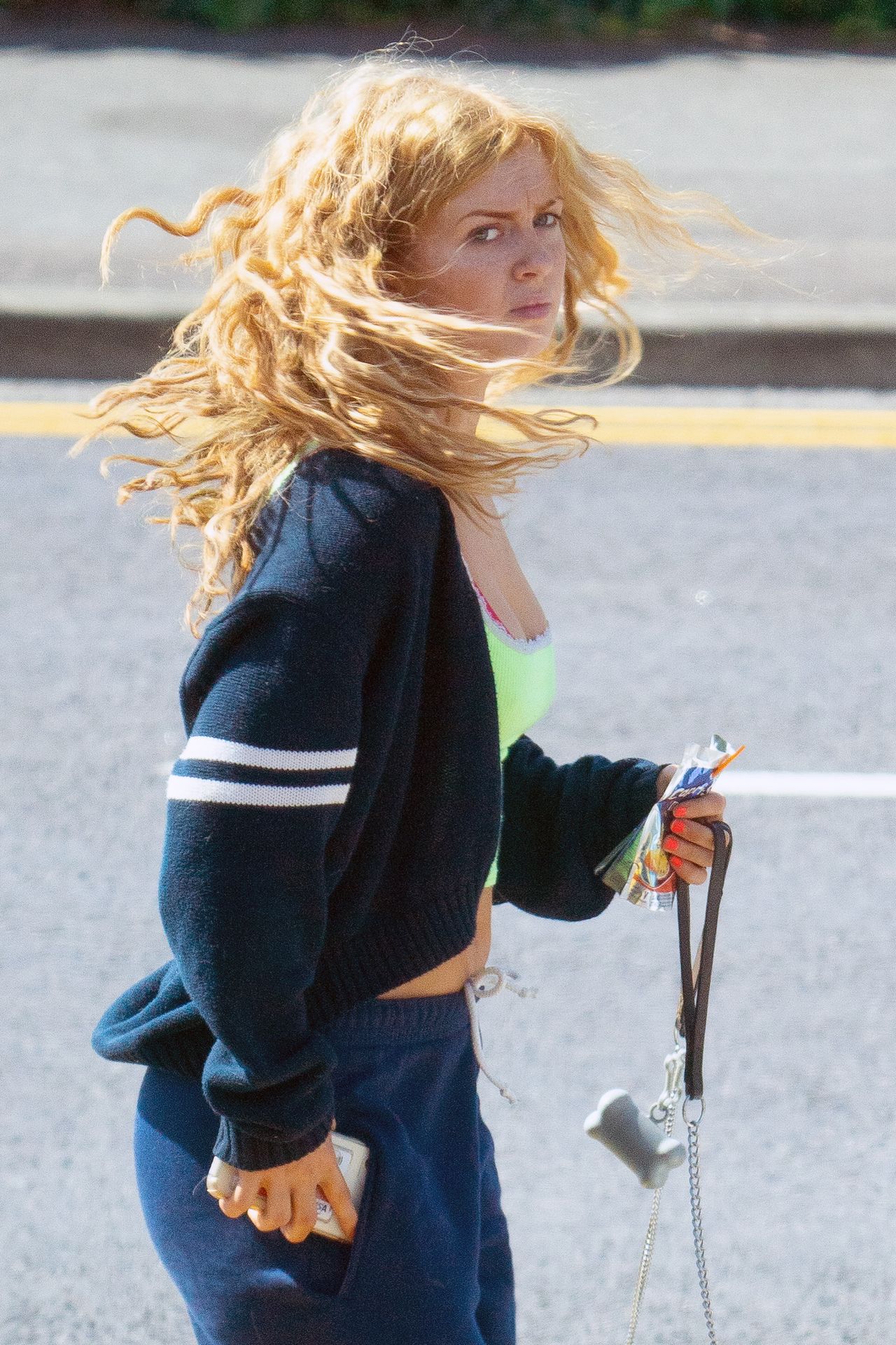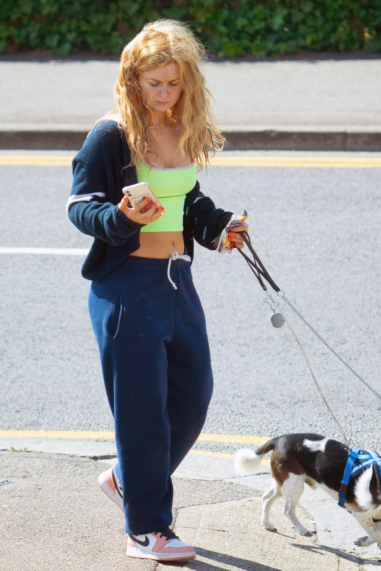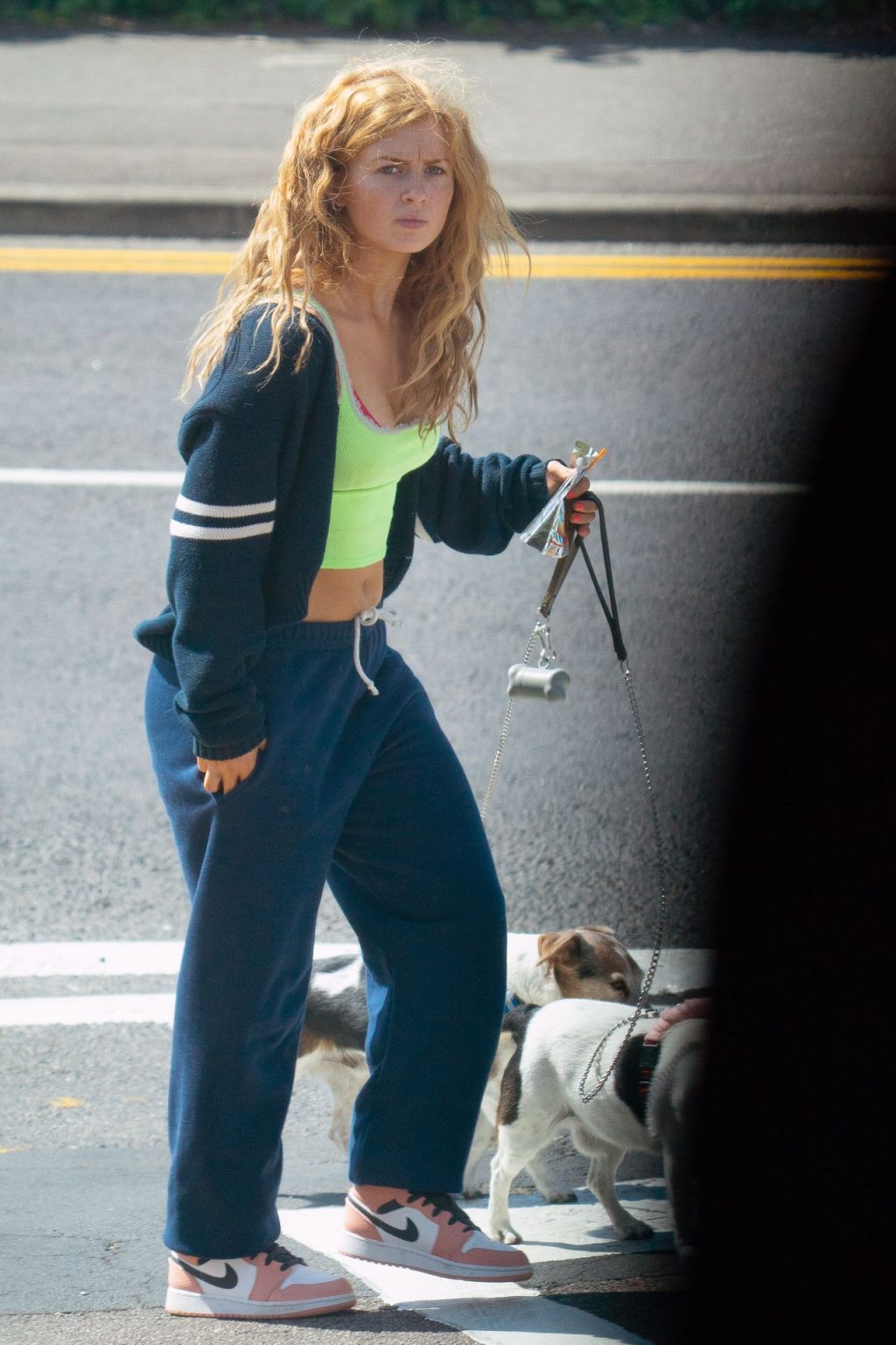 EastEnders la actriz Maisie Smith, quien interpreta a Tiffany, es vista hoy paseando a sus perros en Essex (2020).