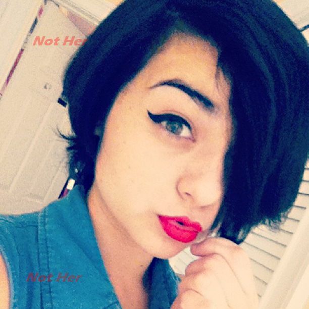 No todos los que están etiquetados como falsos son realmente falsos. Puedes comparar los lunares en su pecho y ver que en realidad es ella.