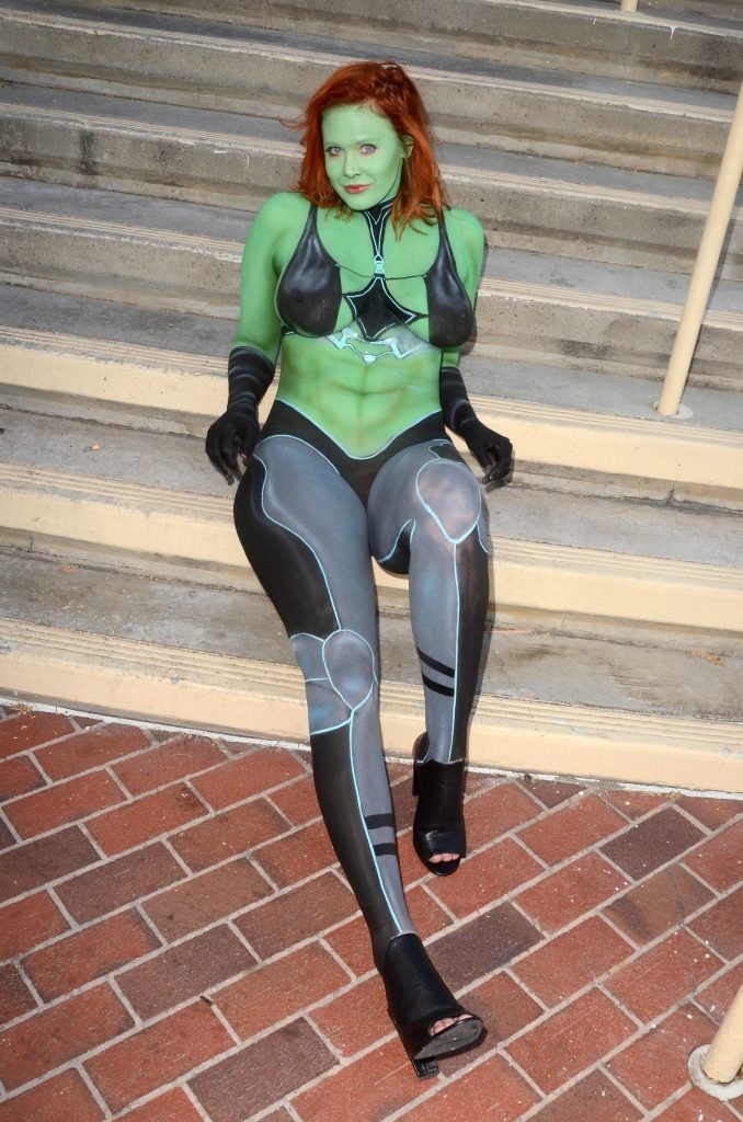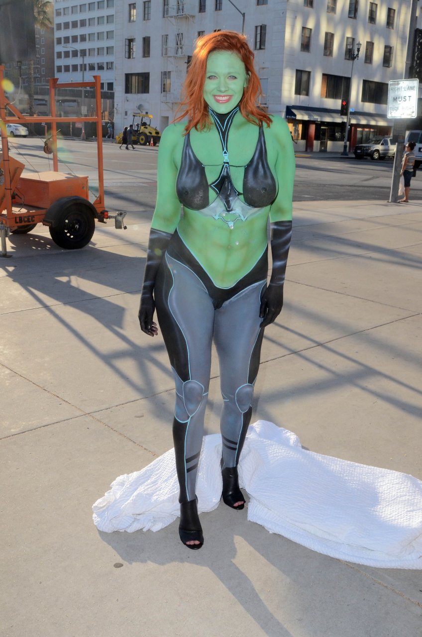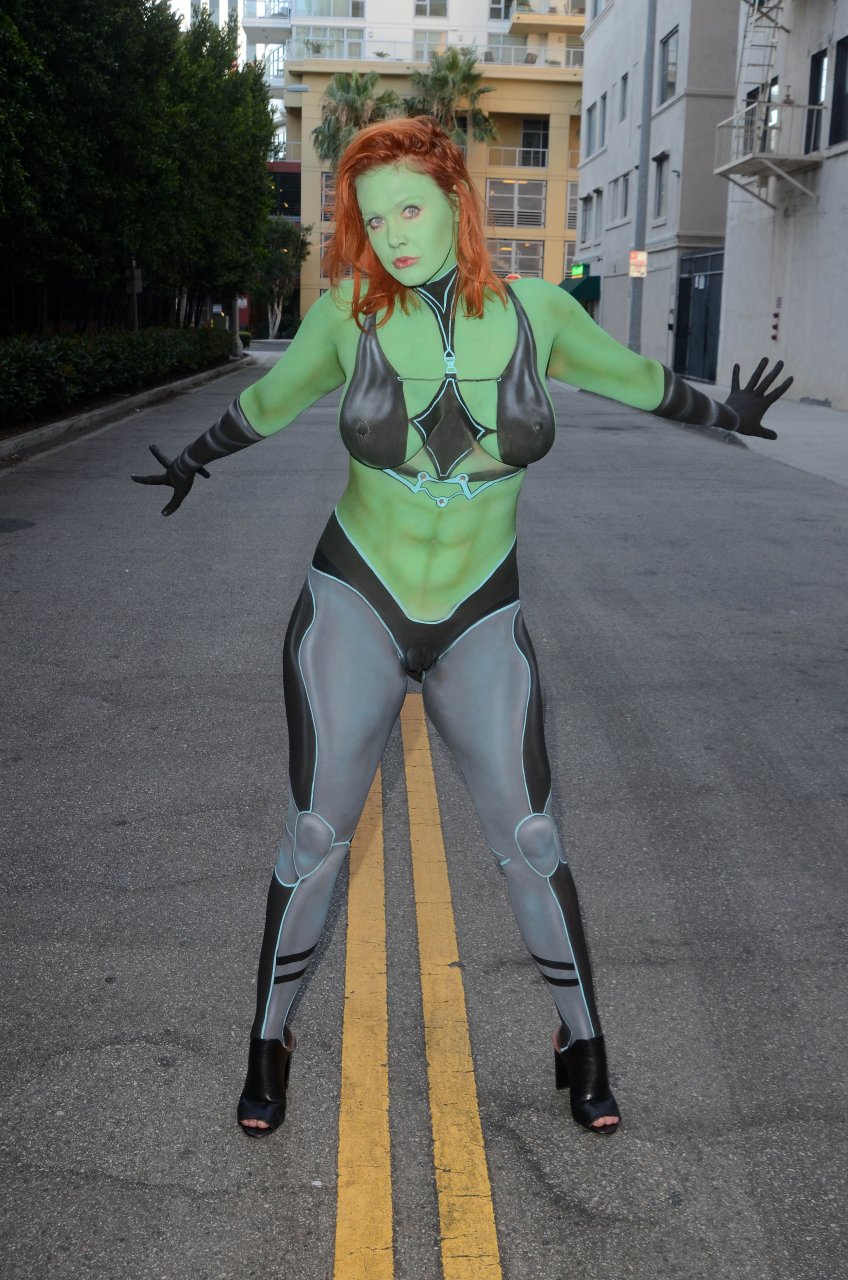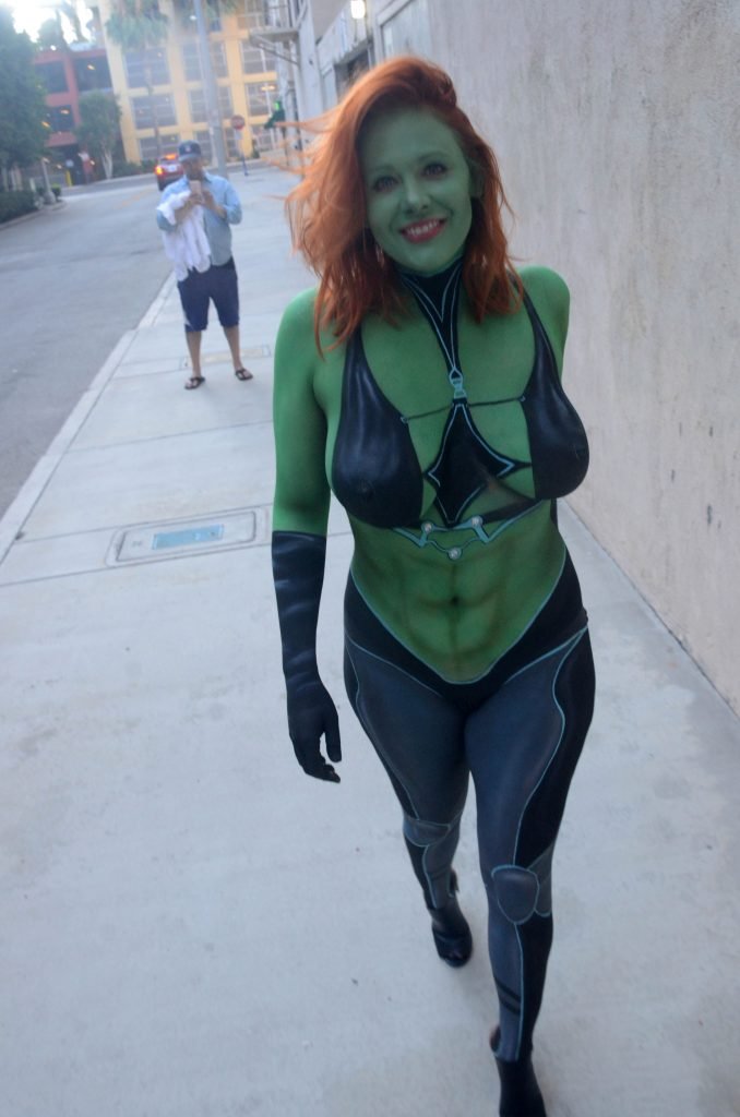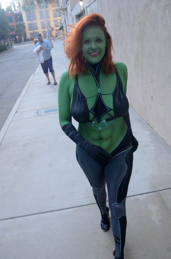 Ya sea que ella sea una provocadora o no, ya sea que sea una 'cosplayer' o fashionista o no, hay un hecho indiscutible... esta mujer nunca sería permitida cerca de Comic Con con este 'atuendo'. Aunque la gente allí es bastante permisiva con respecto a los atuendos que la gente usa, son bastante estrictos (sin juego de palabras) cuando se trata de la desnudez. Adrianne Curry, quien tiene mucho más prestigio en la comunidad de cosplay y Comic Con, fue obligada a cubrirse o irse hace unos años por usar lo que básicamente eran shorts muy cortos. Además del hecho de que esto es obviamente pintura corporal, quiero decir, vamos, sus pezones y labios son visibles, no la dejarían entrar en ninguna de las salas. Comic Con tiene una mezcla justa de sensualidad (he estado allí y hay bastante piel visible, aunque no desnudez). Esto está más allá de lo que cualquiera consideraría remotamente aceptable.