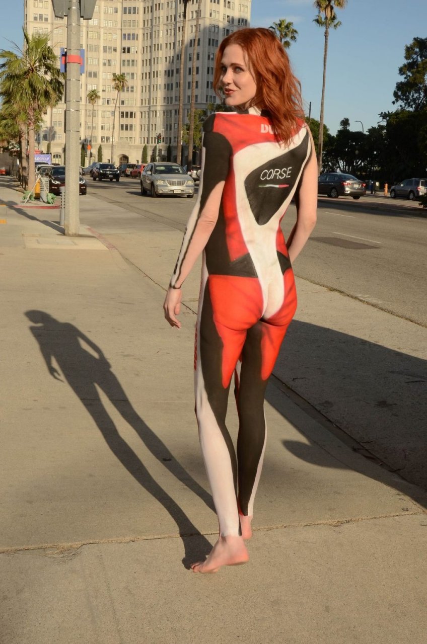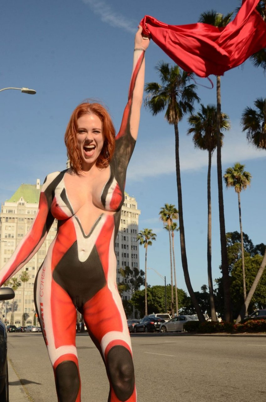 Las que no son cualquiera y hacen pintura corporal usualmente se ponen pasties y un parche de modestia sobre la entrepierna. Pero ella no.