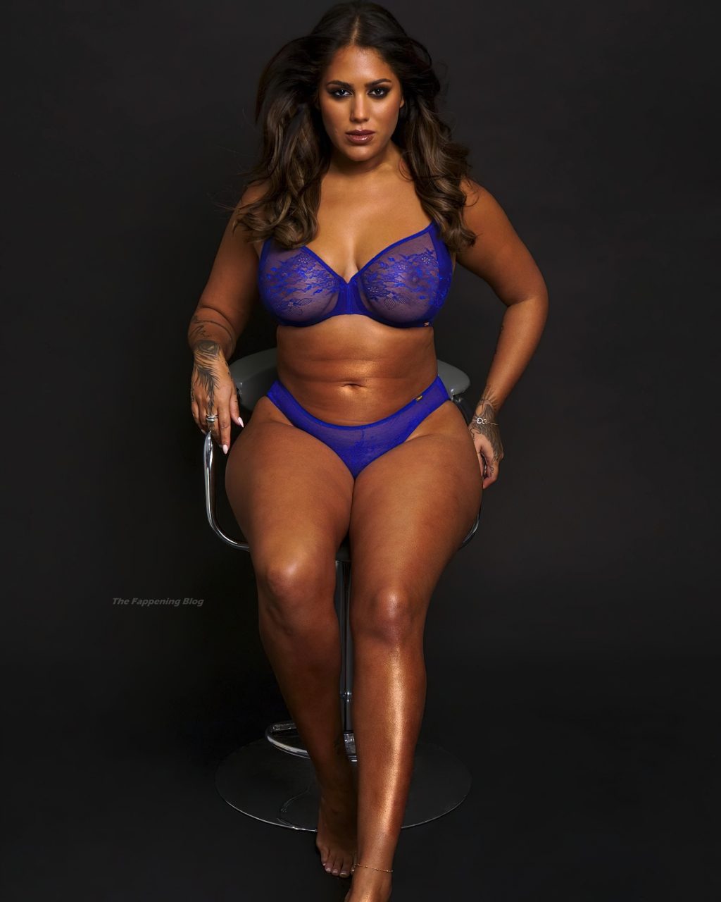 La estrella de reality TV Malin Andersson muestra sus senos ligeramente desnudos mientras posa con lencería azul de encaje para sus seguidores en Instagram, 02/03/2021.