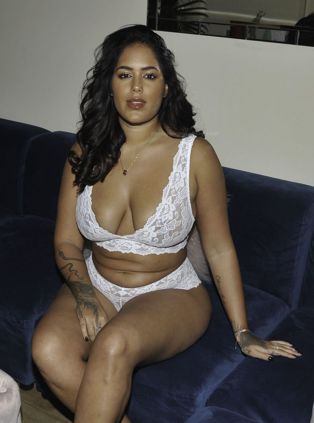 La estrella de la televisión de realidad Malin Andersson presume su figura curvilínea con lencería blanca y con escote para una nueva sesión de fotos en Londres, 12/08/2020.