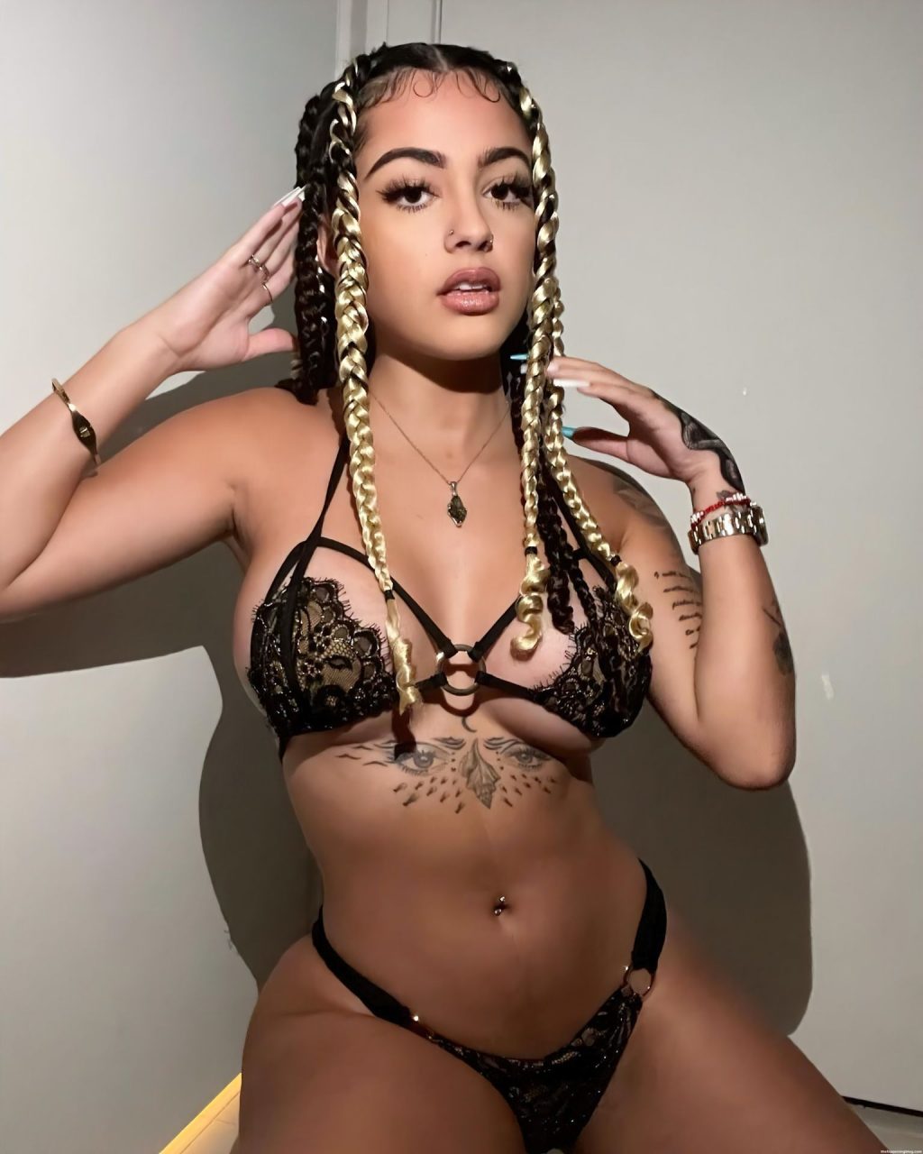 La belleza de TikTok Malu Trevejo muestra sus tetas mientras posa con lencería de encaje para sus seguidores en Instagram (junio de 2021).