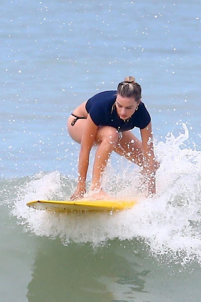 "Nota que Robbie no mostró el mejor cuerpo, a pesar de sus piernas delgadas, la actriz no puede presumir de una figura tonificada" ¿qué??? La mujer está bien, relájate, ok, podría tener un trasero un poco más grande pero está MUY BIEN.