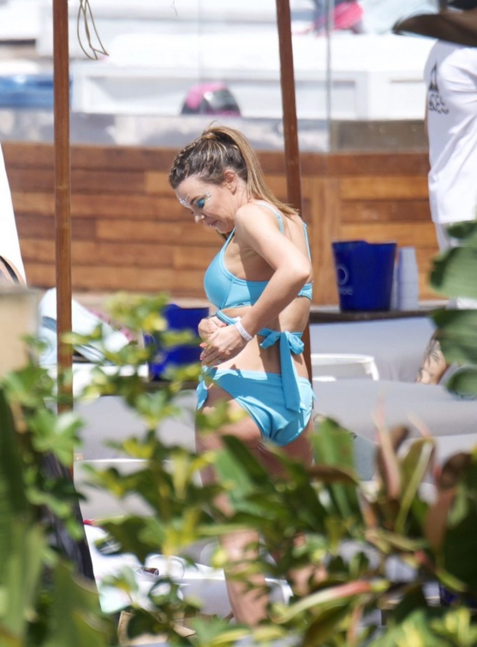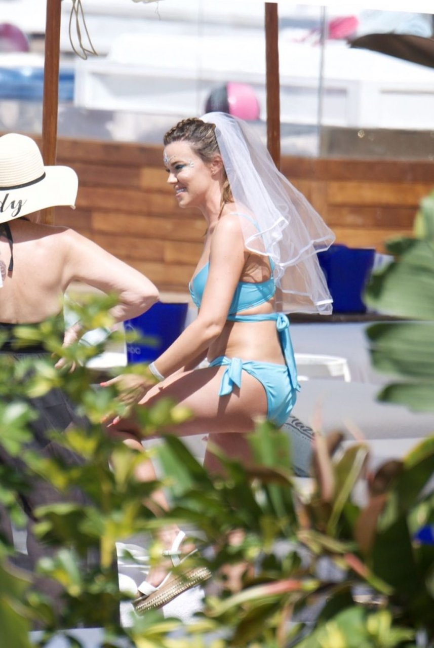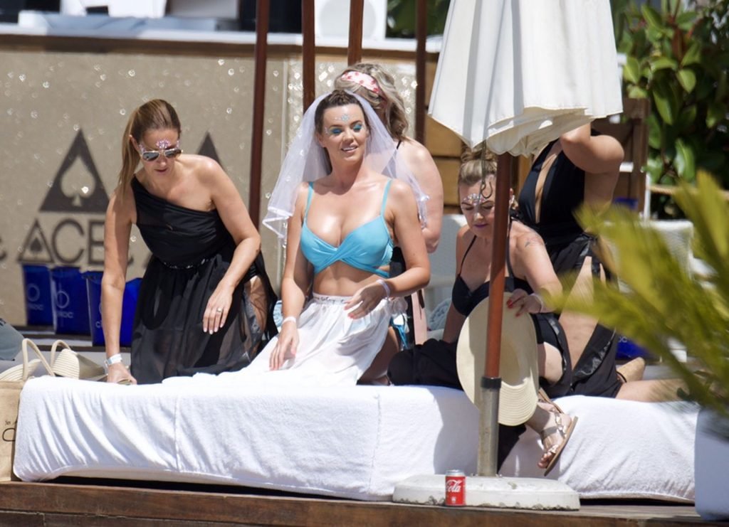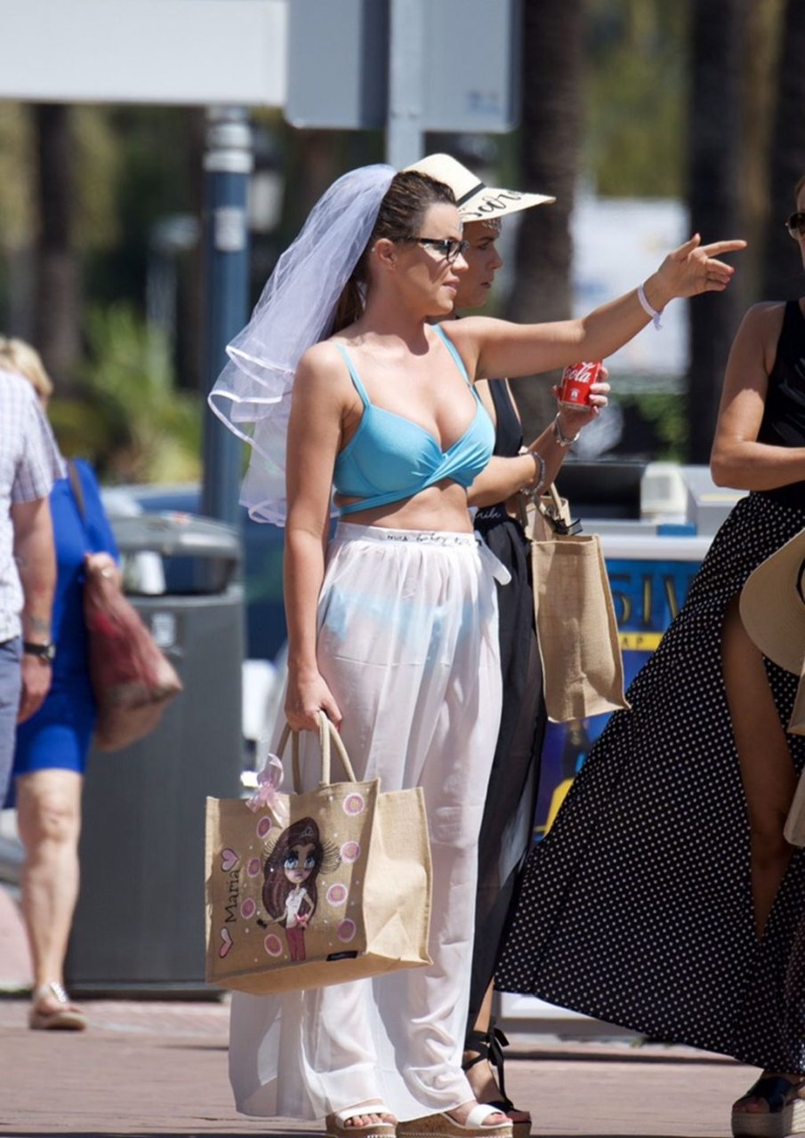 La ex estrella de TOWIE Maria Fowler se pone un bikini y un velo para su despedida de soltera en Marbella, 25/05/2019.