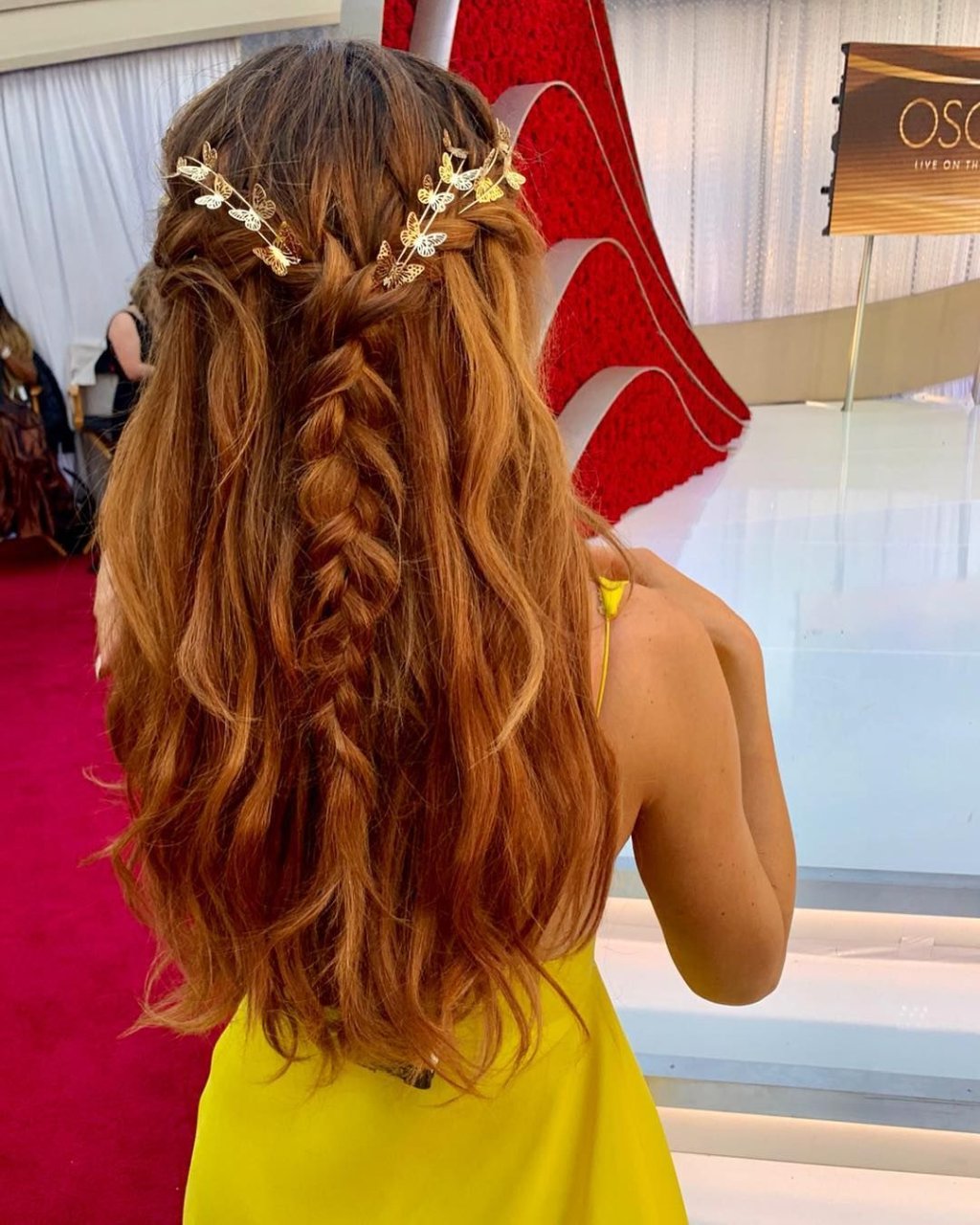 Actriz Maria Menounos (40) muestra su escote vistiendo un vestido amarillo en la 91ª Entrega Anual de los Premios de la Academia en Hollywood, 24/02/2019.