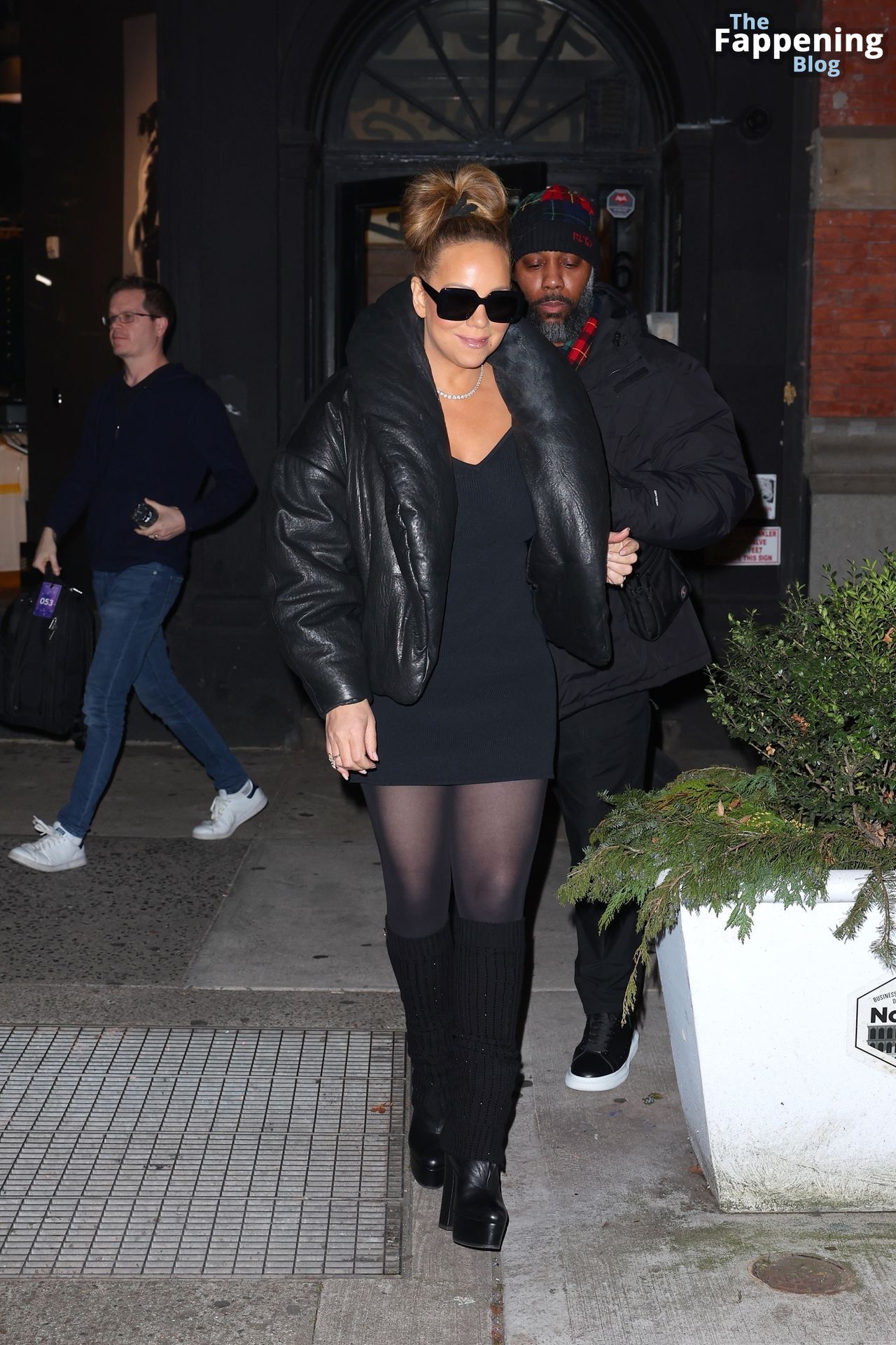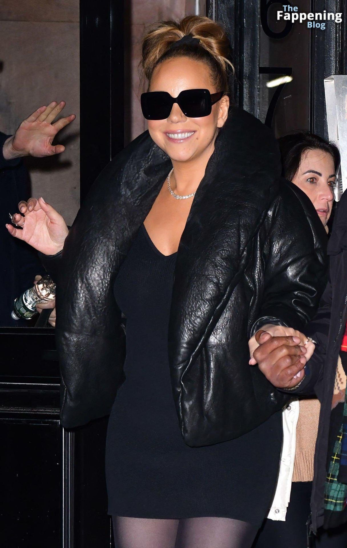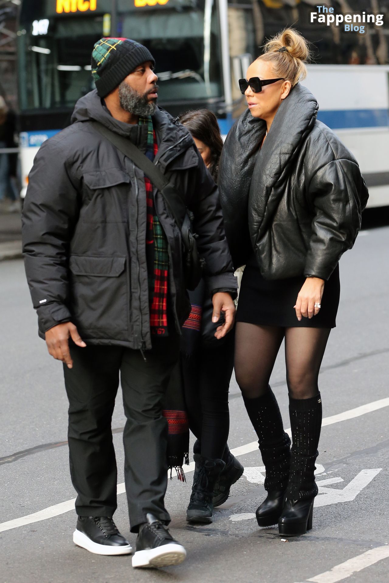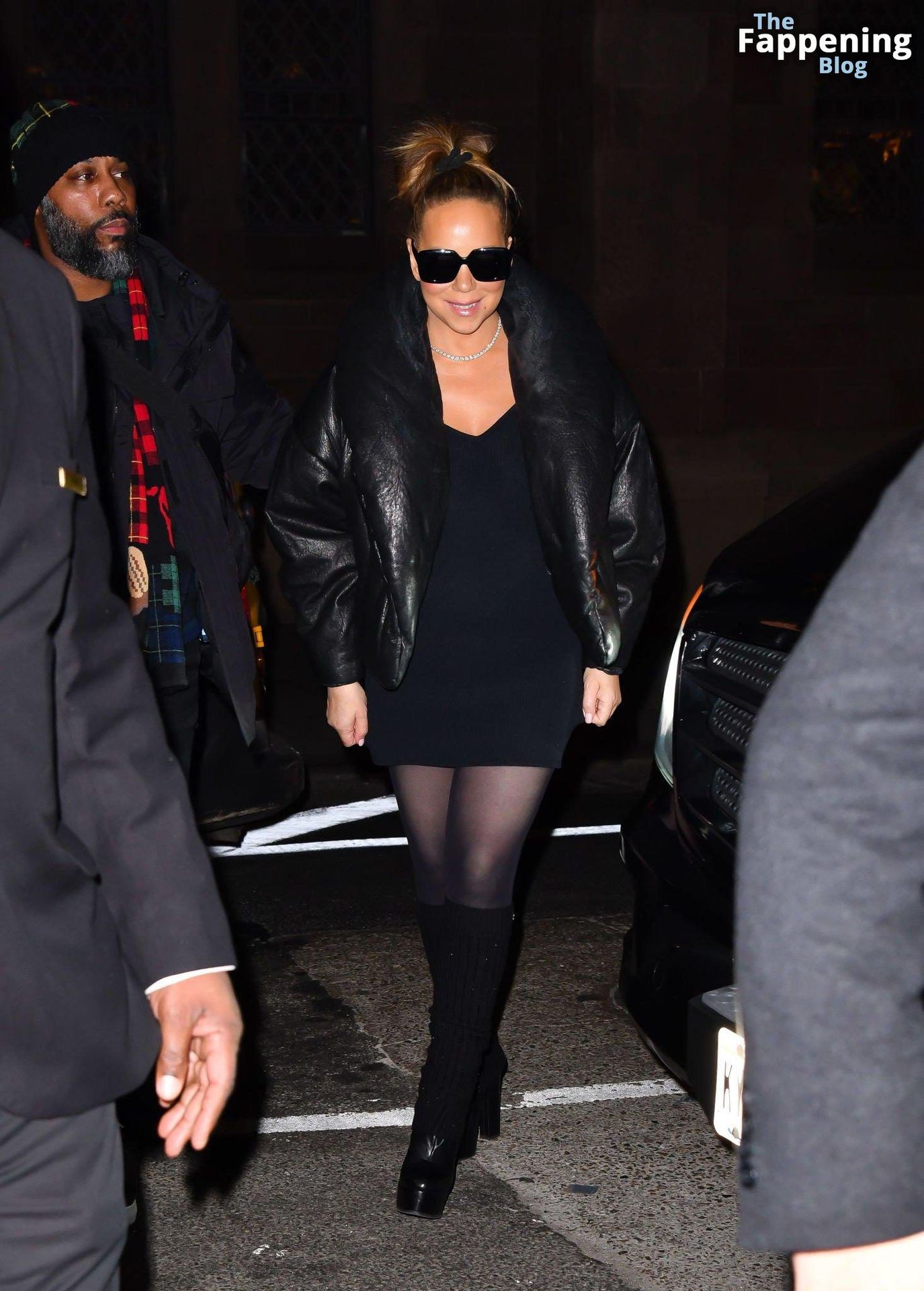 Icono de la música Mariah Carey sonríe a la cámara, saliendo con gracia de un estudio de grabación en el moderno barrio de Soho, Nueva York, insinuando posibles nuevos proyectos musicales.