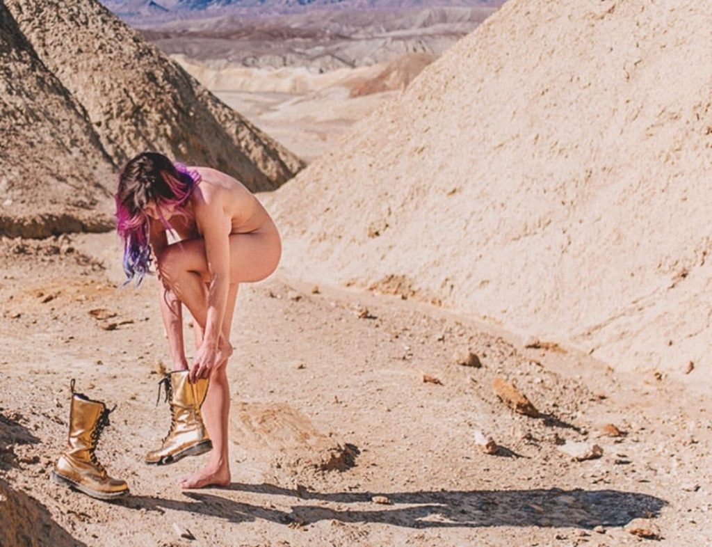 Aquí están las fotos desnudas de Mariana de Souza Alves Lima de su última sesión fotográfica realizada por Fernando Schlaepfer en Death Valley, California (2020). MariMoon mostró su trasero desnudo y cubrió sus grandes pechos naturales.