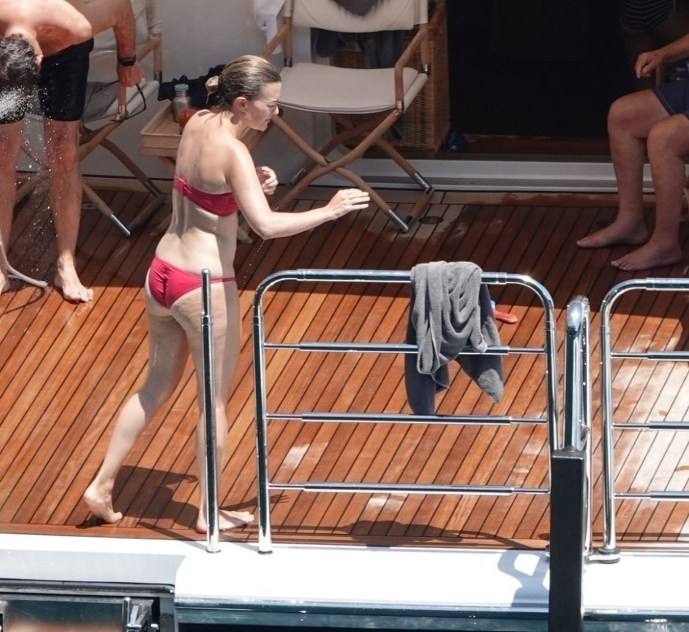 Amancio Ortega, el multimillonario detrás de Zara Fashion, y su hija Marta Ortega fueron vistos descansando cerca de la piscina en Portofino, 07/02/2019. Se puede ver a Amancio refugiándose en la sombra mientras su hija Marta disfruta del sol luciendo un bikini rojo.