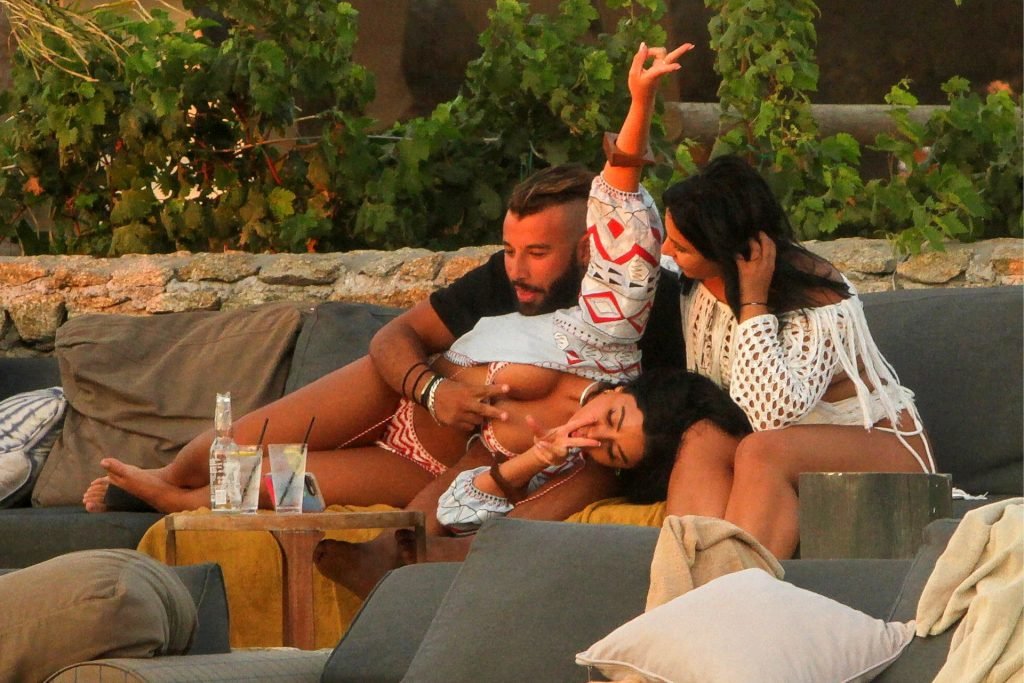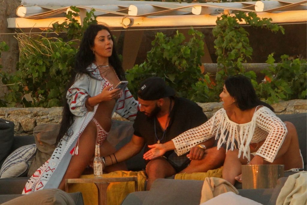 Martha “Mafs” Kalifatidis parece estar divirtiéndose con un hombre misterioso mientras está de vacaciones en Mykonos, Grecia, 16/08/2019.