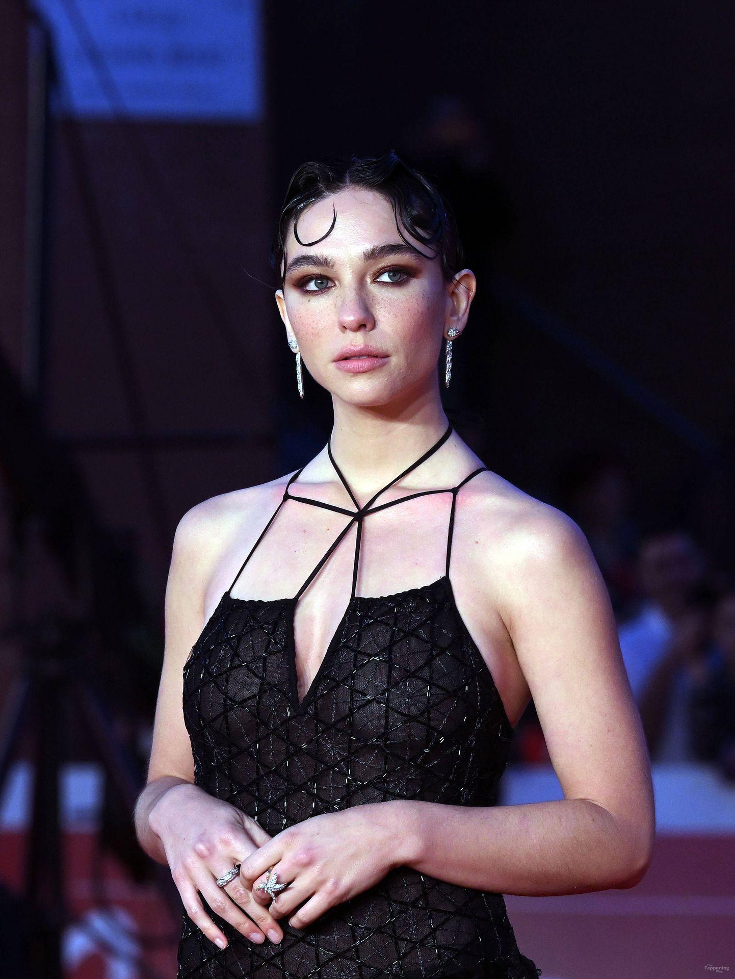 Matilda De Angelis asistió sin sostén al Festival de Cine de Roma 2025, luciendo un vestido negro transparente que dejaba ver sus pezones. Fue en la “Drácula” en Italia.
