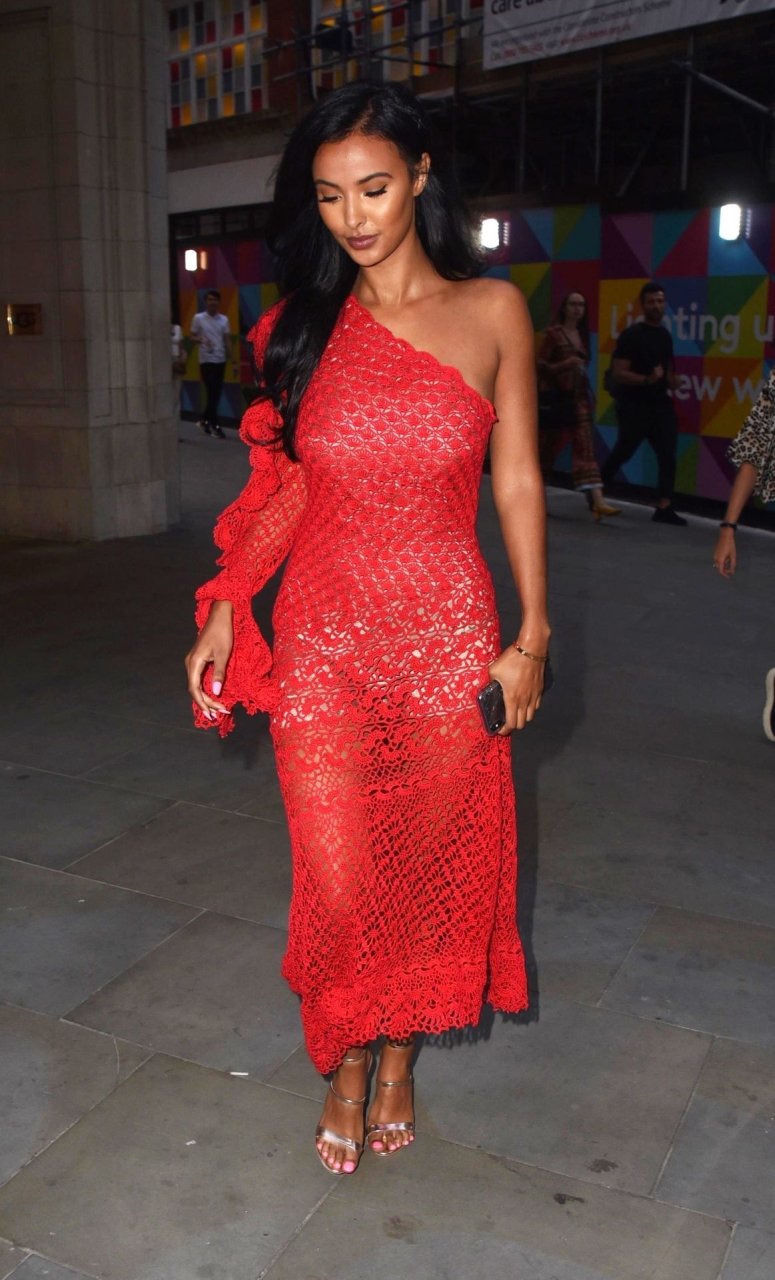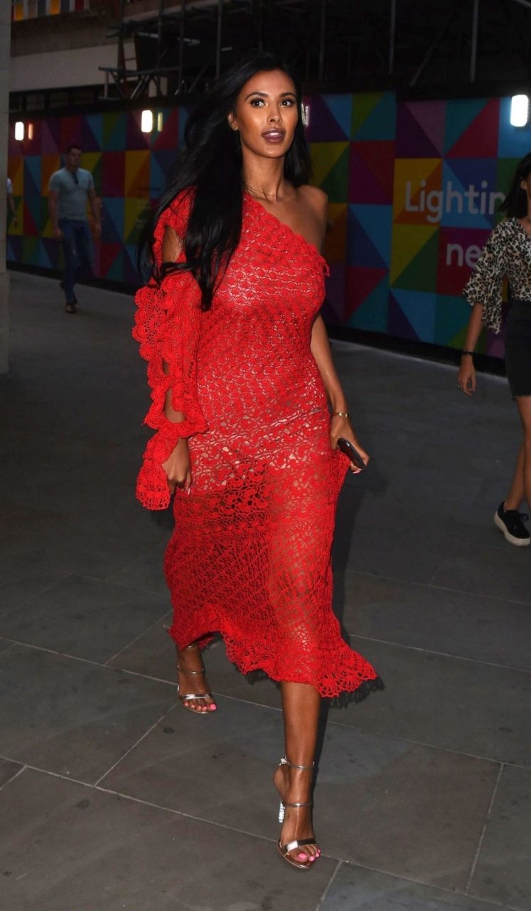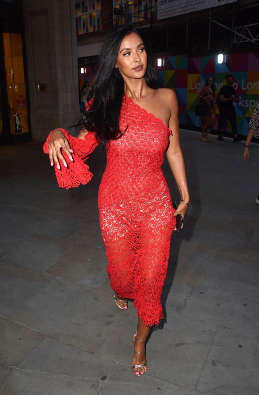 Maya Jama asiste al lanzamiento de la tienda de placer Magnum en Magnum Pleasure store, Regent Street, Londres, 09/10/2019. La hermosa presentadora de televisión mostró su figura con un vestido rojo ajustado.