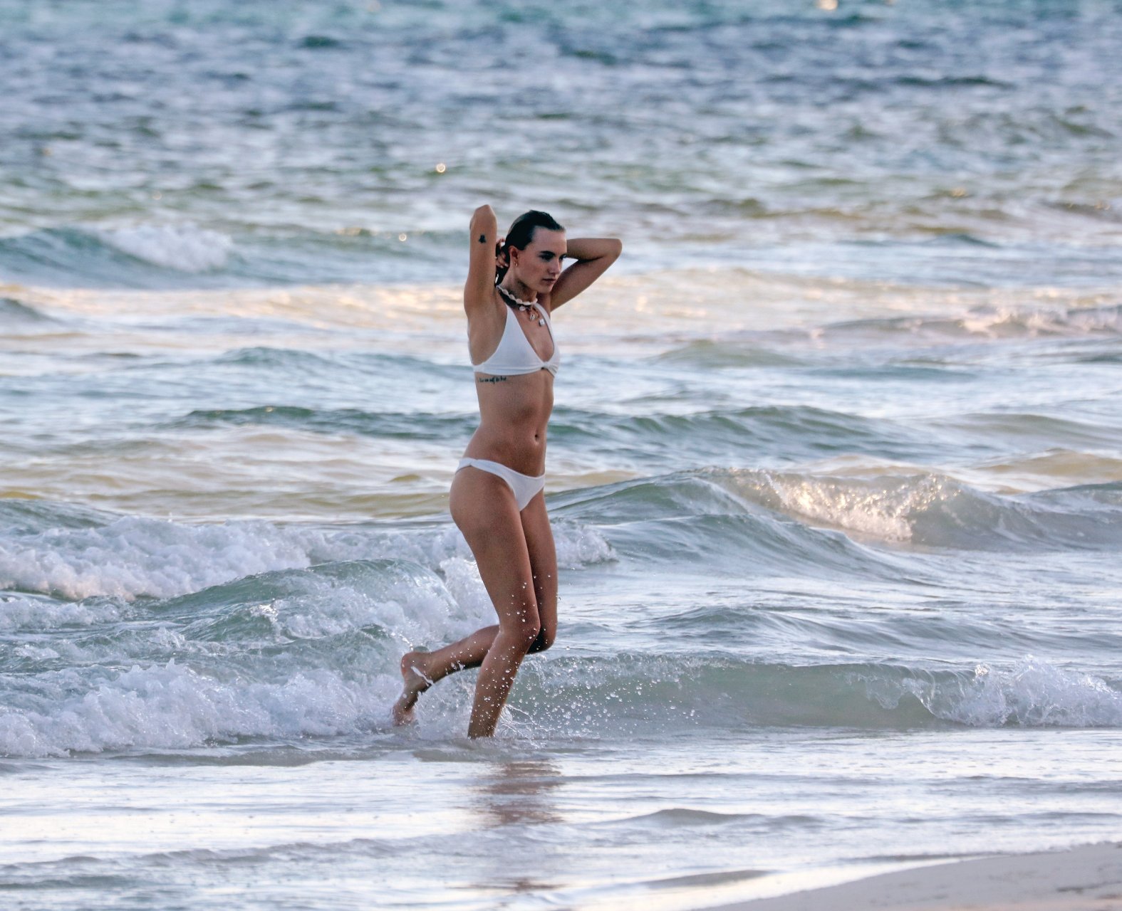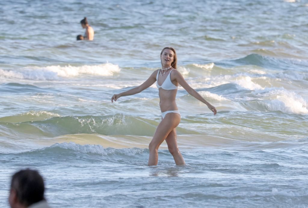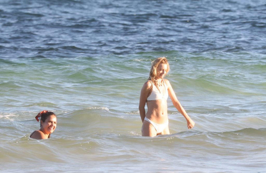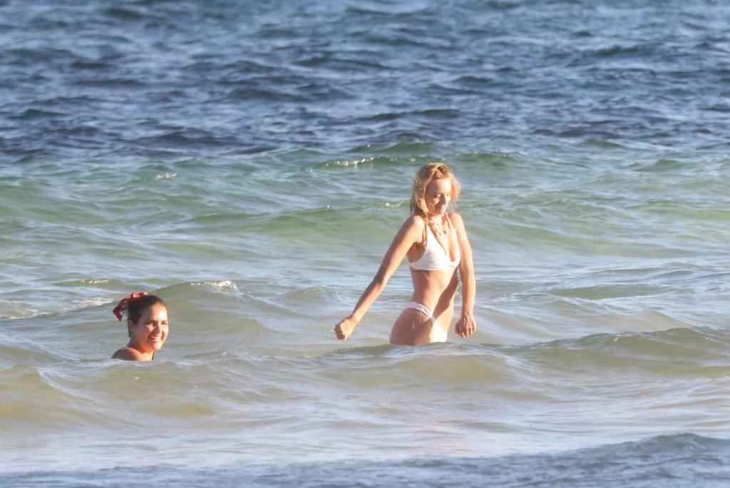 La modelo alemana Maya Stepper (27) fue vista usando un bikini blanco mientras se divertía durante sus vacaciones en México, 14/10/2018.