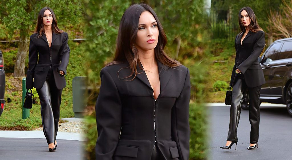 Check this out, fellas! Here are a few photos some sneaky paparazzi took while he caught Megan Fox going for a meeting! Megan Fox’s tits were exposed in a nice cleavage that her coat revealed! Megan chose an all-black outfit that included a cape, leather trousers, and boots. On her way inside, she flashed a snapshot to the cameras, displaying her flawless skin. This was shot in Los Angeles earlier last month!