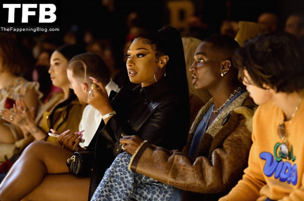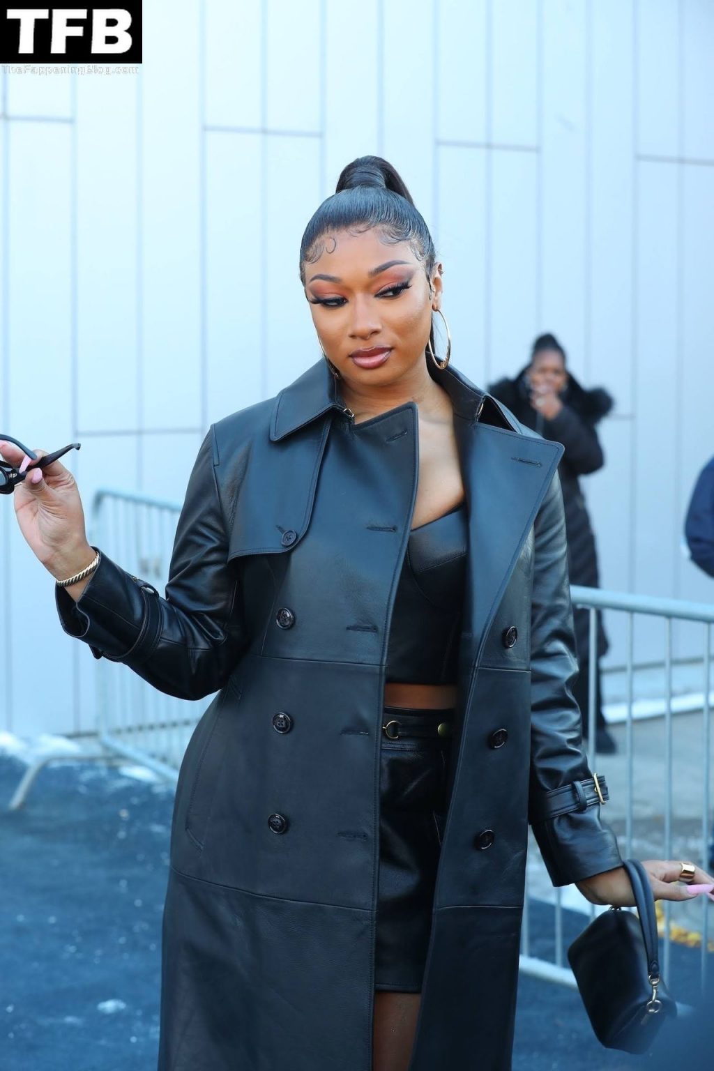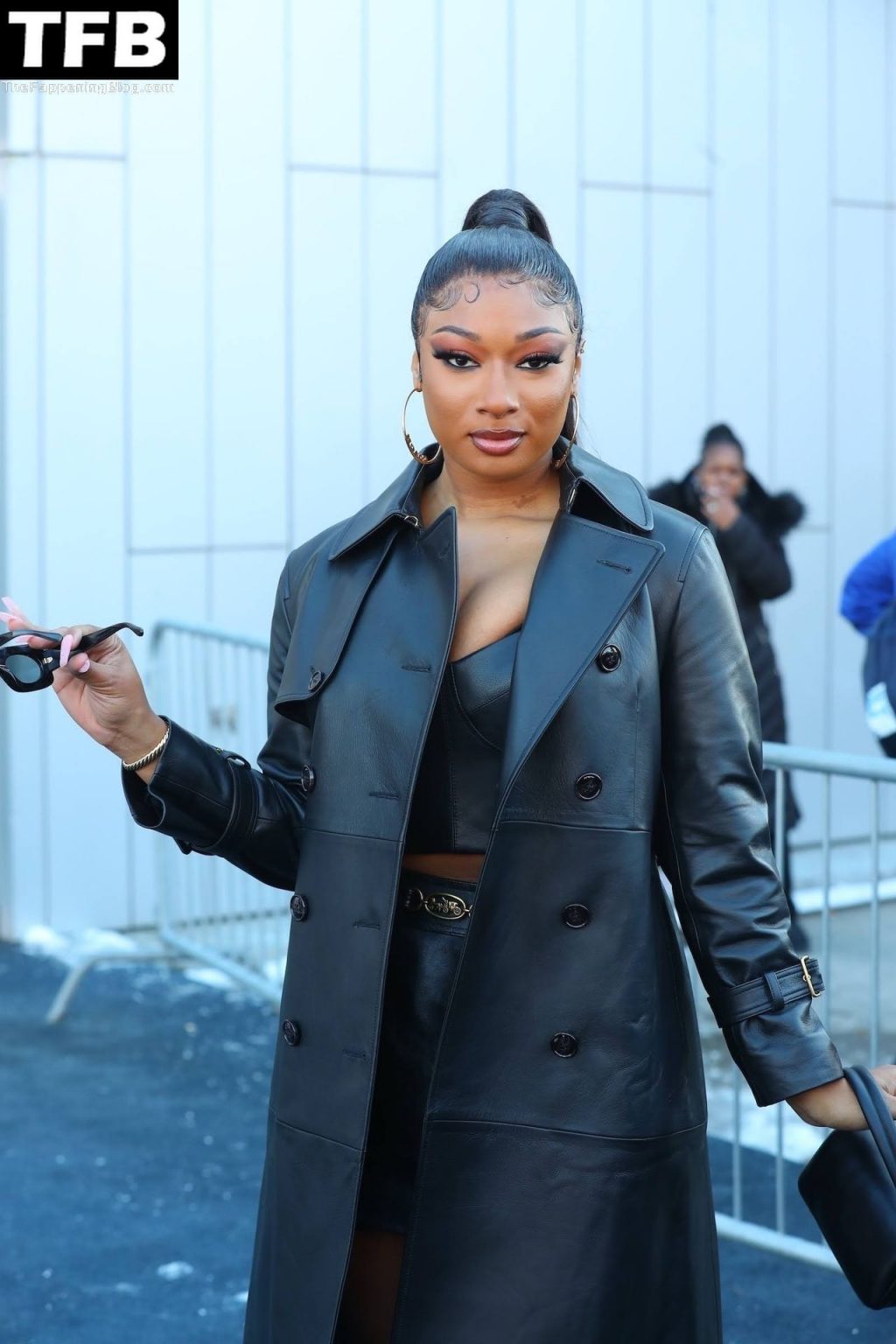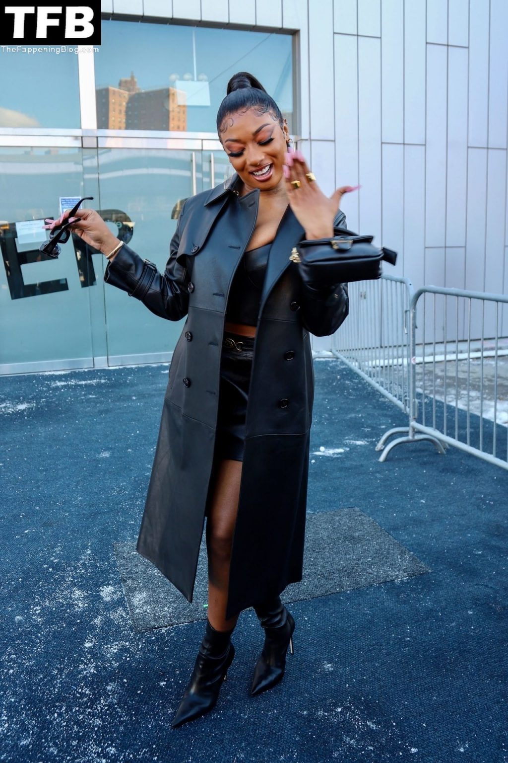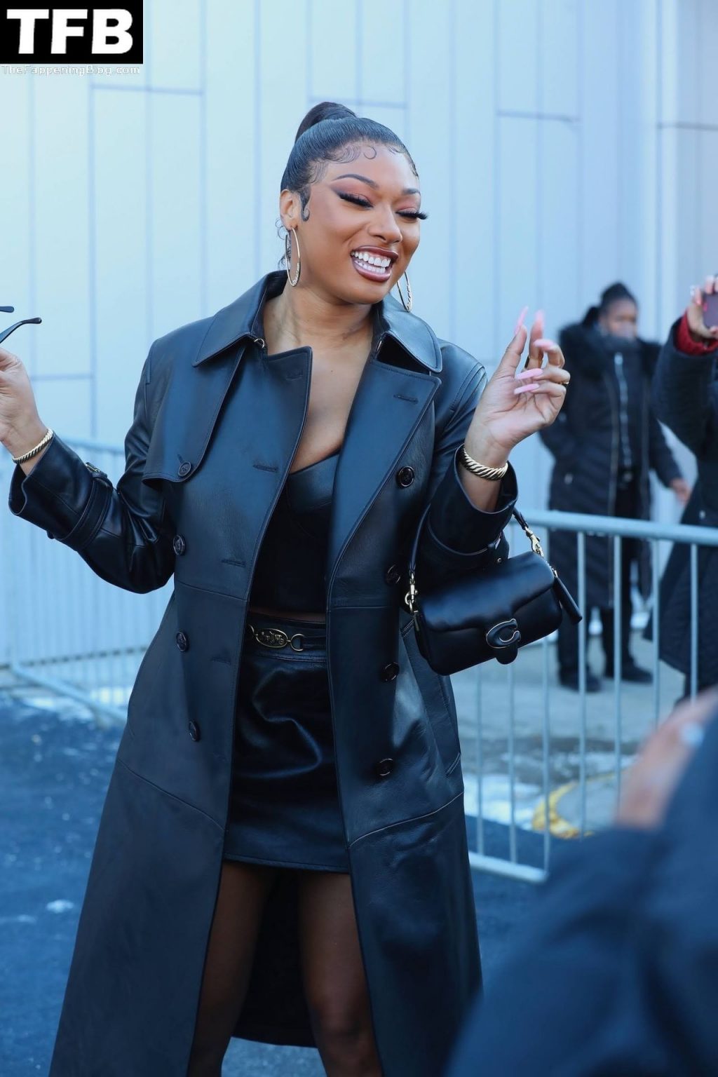 La rapera Megan Thee Stallion sale del desfile de moda de Coach en la ciudad de Nueva York e incluso se toma tiempo para tomarse fotos con sus fans, 14/02/2022.