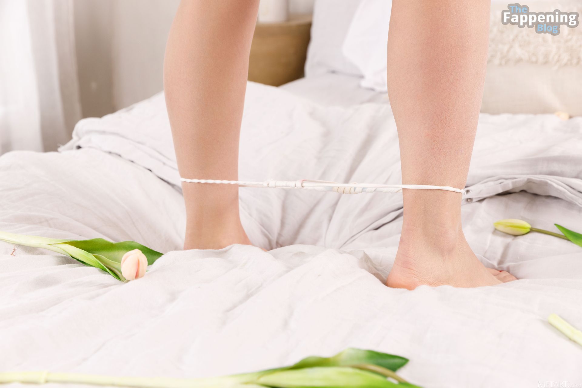 Echa un vistazo a la modelo Melania de 19 años posando completamente desnuda, en una cama decorada con tulipanes. Esta jovencita adorable, con un cuerpo curvilíneo y una carita dulce, se quita la ropa interior para la cámara, mostrándonos todo lo que tiene.
