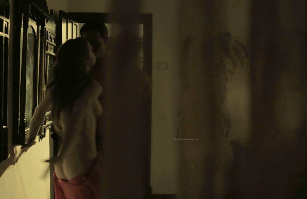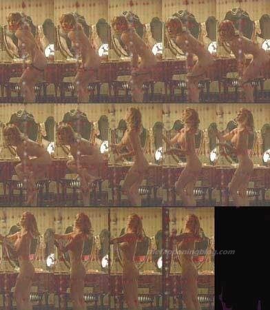 Melissa George is undressing as a guy watches from the next room over, getting a closer look as Melissa gets down to her underwear and bra and then unhooks the bra to reveal her nice breasts. She then slides her panties down, showing a bit of bush and her bare butt while leaning over fully nude in front of a dresser. She then puts on a red robe as the guy watches.