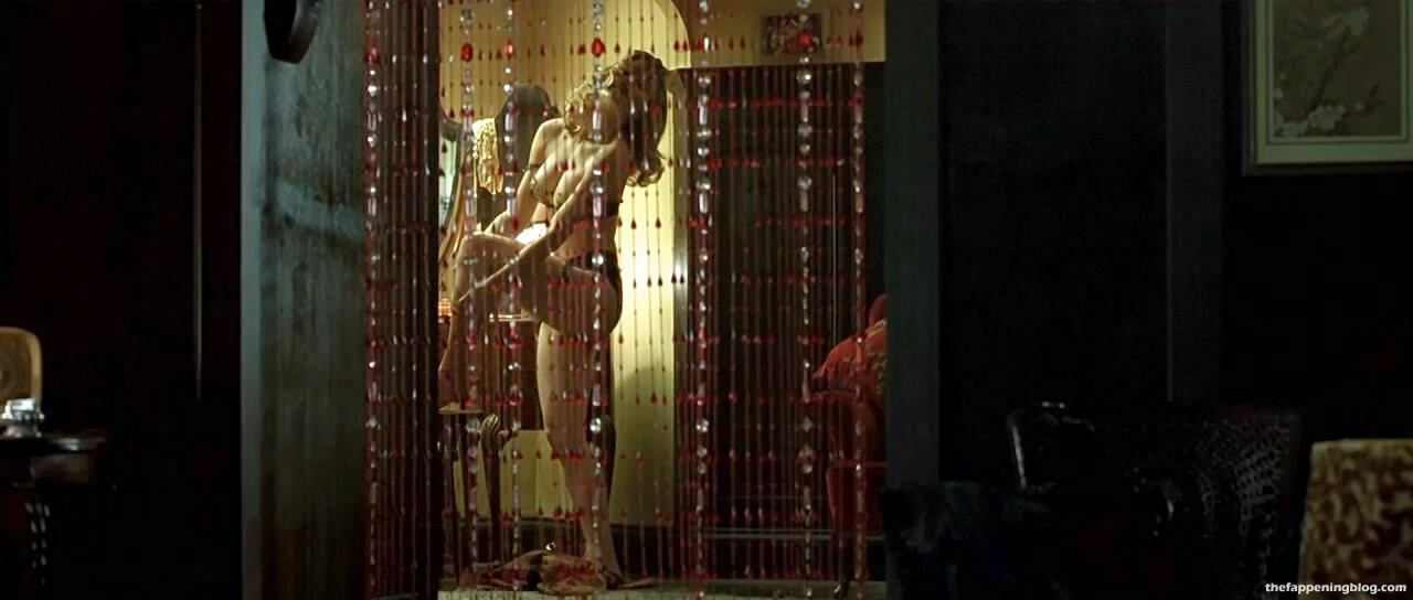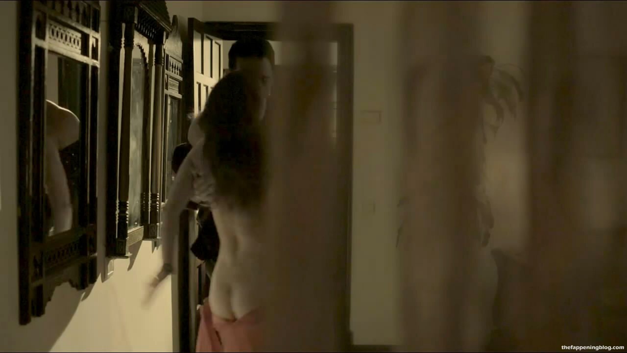 Melissa George is undressing as a guy watches from the next room over, getting a closer look as Melissa gets down to her underwear and bra and then unhooks the bra to reveal her nice breasts. She then slides her panties down, showing a bit of bush and her bare butt while leaning over fully nude in front of a dresser. She then puts on a red robe as the guy watches.