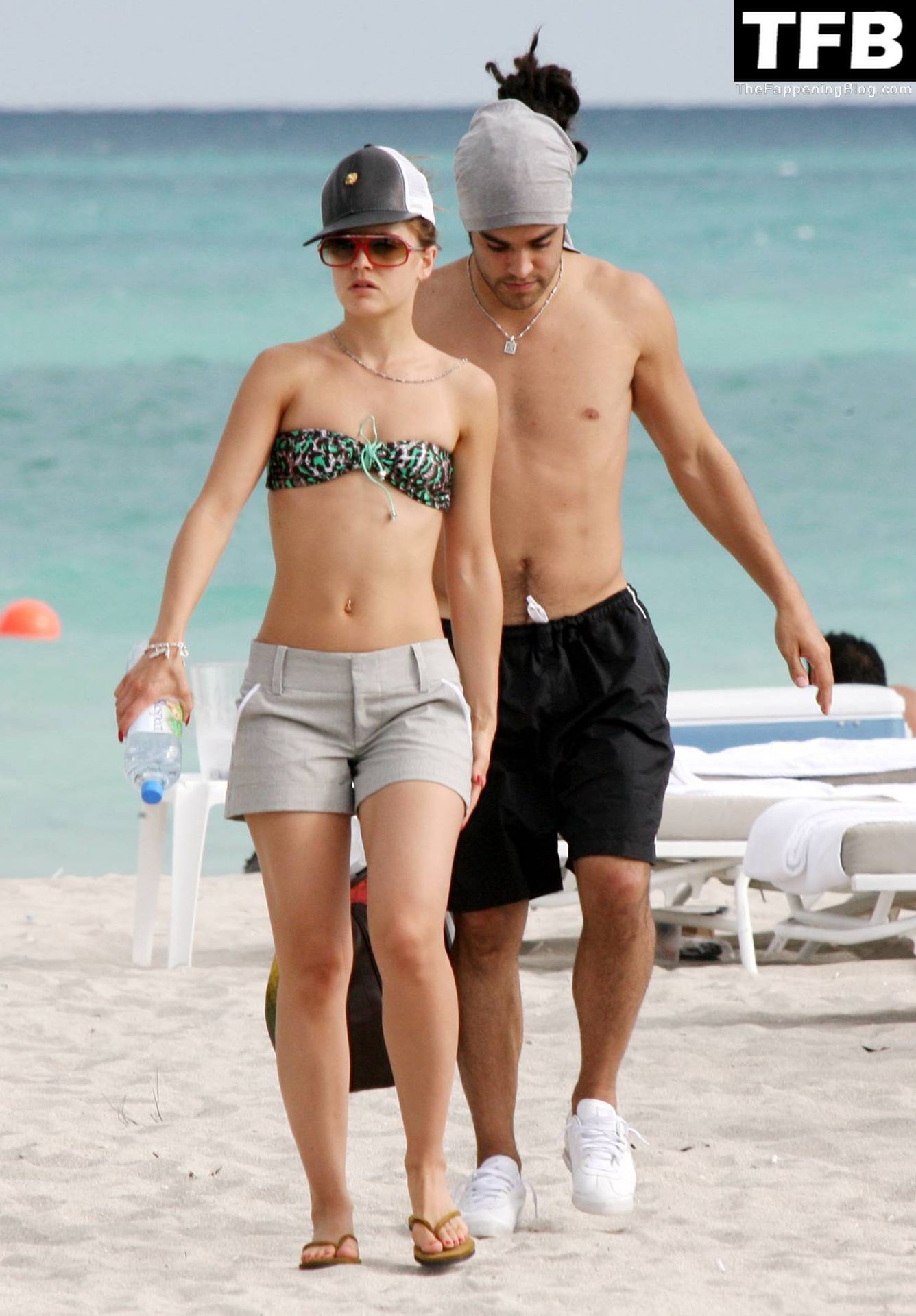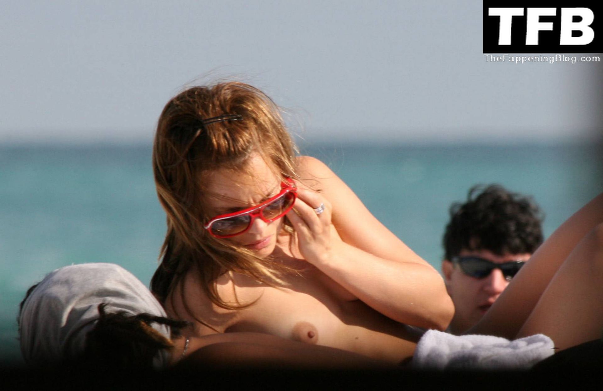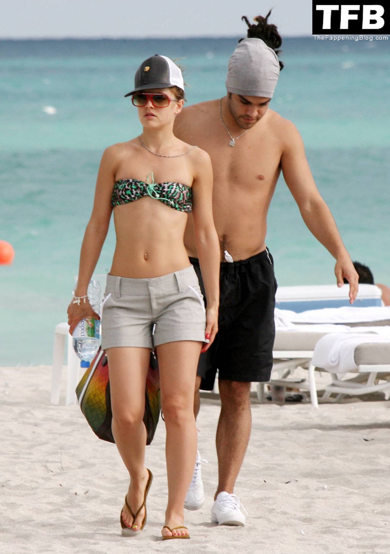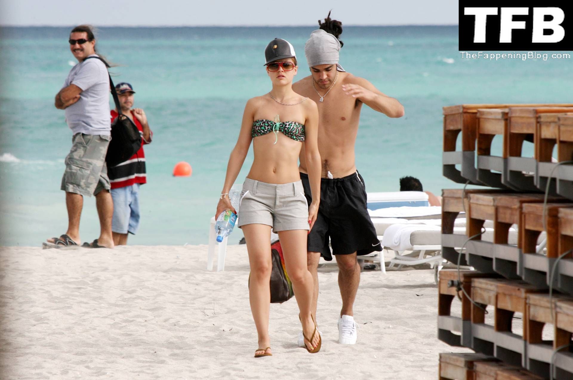 La actriz estadounidense Mena Suvari disfruta sin camiseta del clima cálido en Miami Beach con su novio Mike “Murda” Carrasco, 20/01/2007.