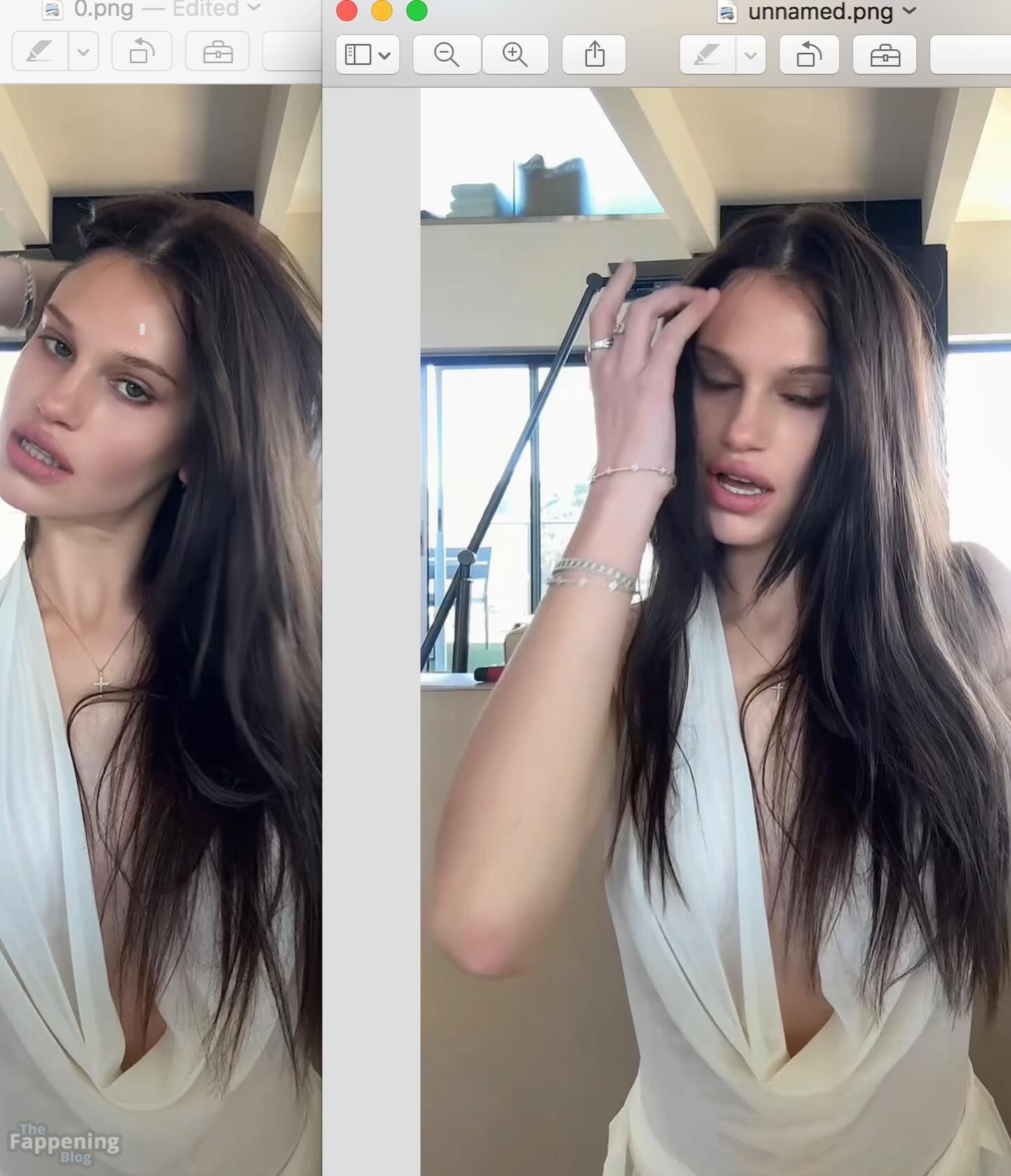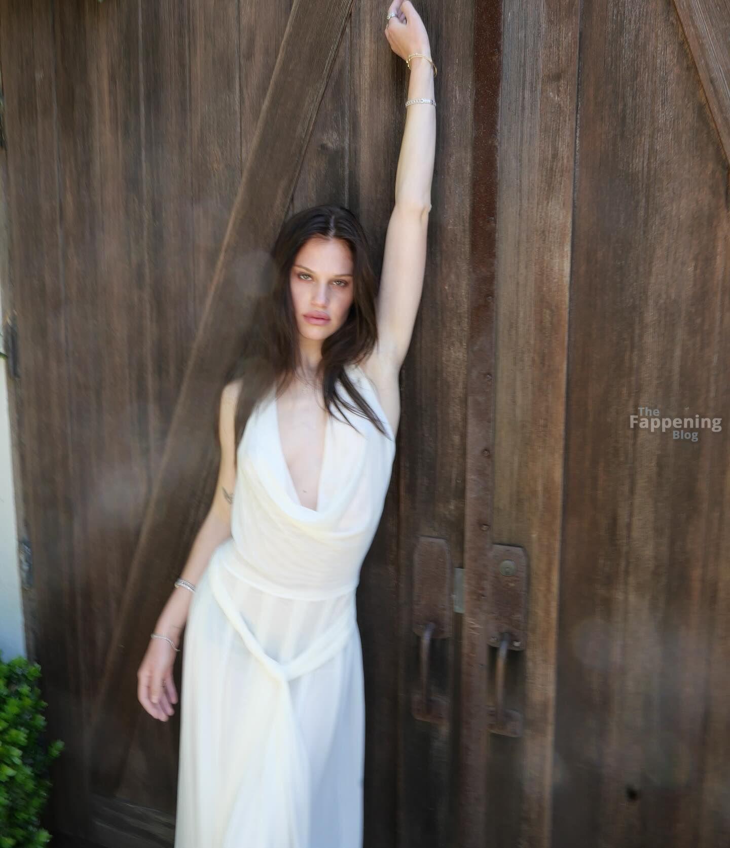 La estadounidense y estrella de las redes sociales Meredith Mickelson posó sin sujetador con un vestido blanco en su última sesión de fotos.