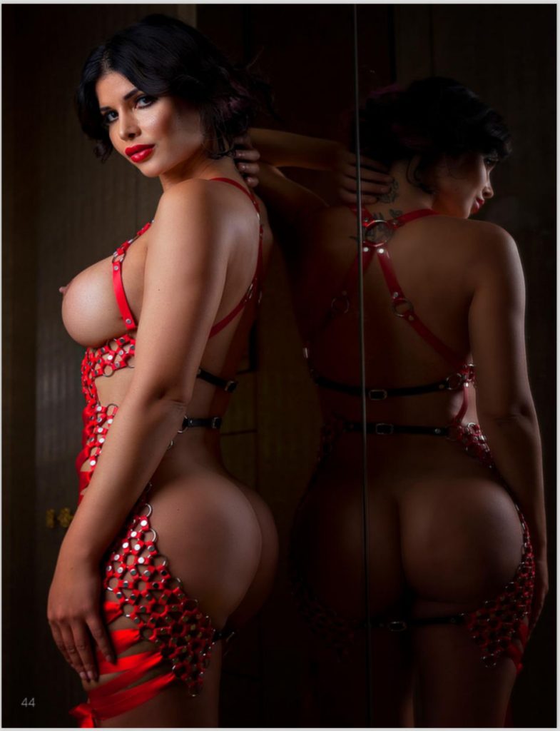La modelo y actriz alemana Micaela Schäfer presentó una nueva edición de Kansha Magazine (2018). Ella mostró sus pechos y trasero de silicona con vestidos estilo bondage. Fotos por Susann Loessin. Puedes comprar Kansha Magazine Capítulo 11 – con Micaela Schäfer en la tienda Mag cloud: versión impresa – $27.20, digital – $18.