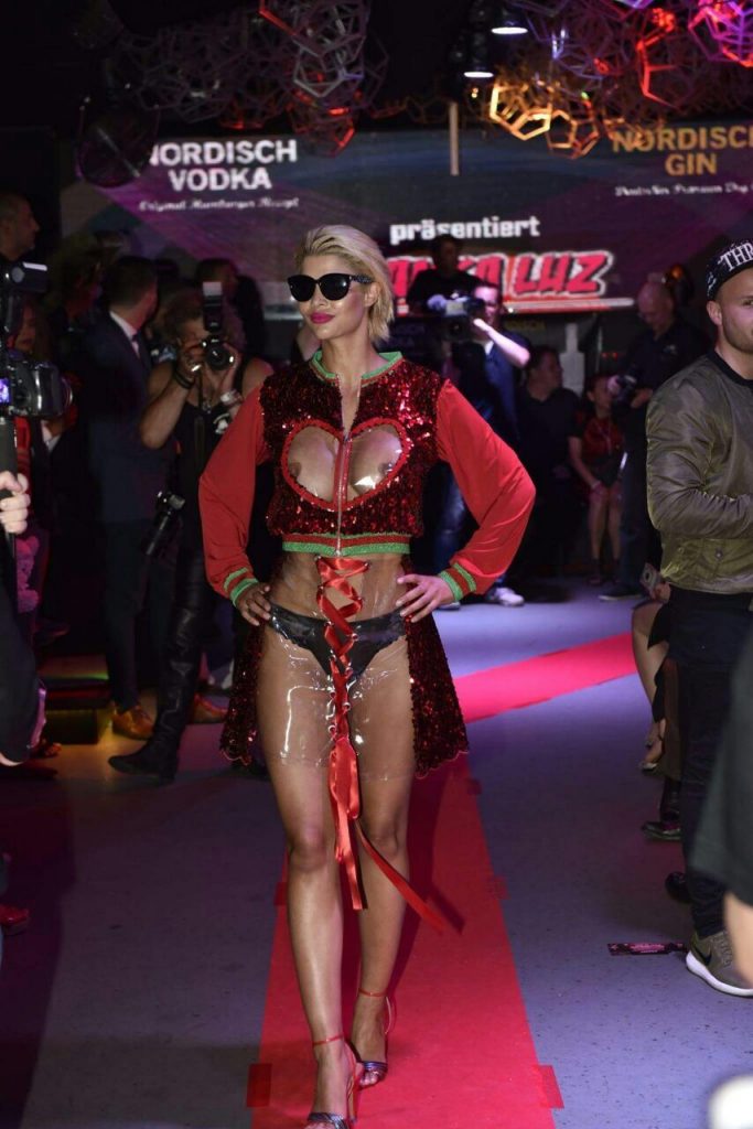 Micaela Schäfer muestra la colección Blanka Luz en la pasarela en la ‘Nordisch Vodka Fashion Night’, 22/06/2017. Micaela Schäfer es una modelo erótica alemana, DJ, actriz, estrella de reality TV. Edad – 33.