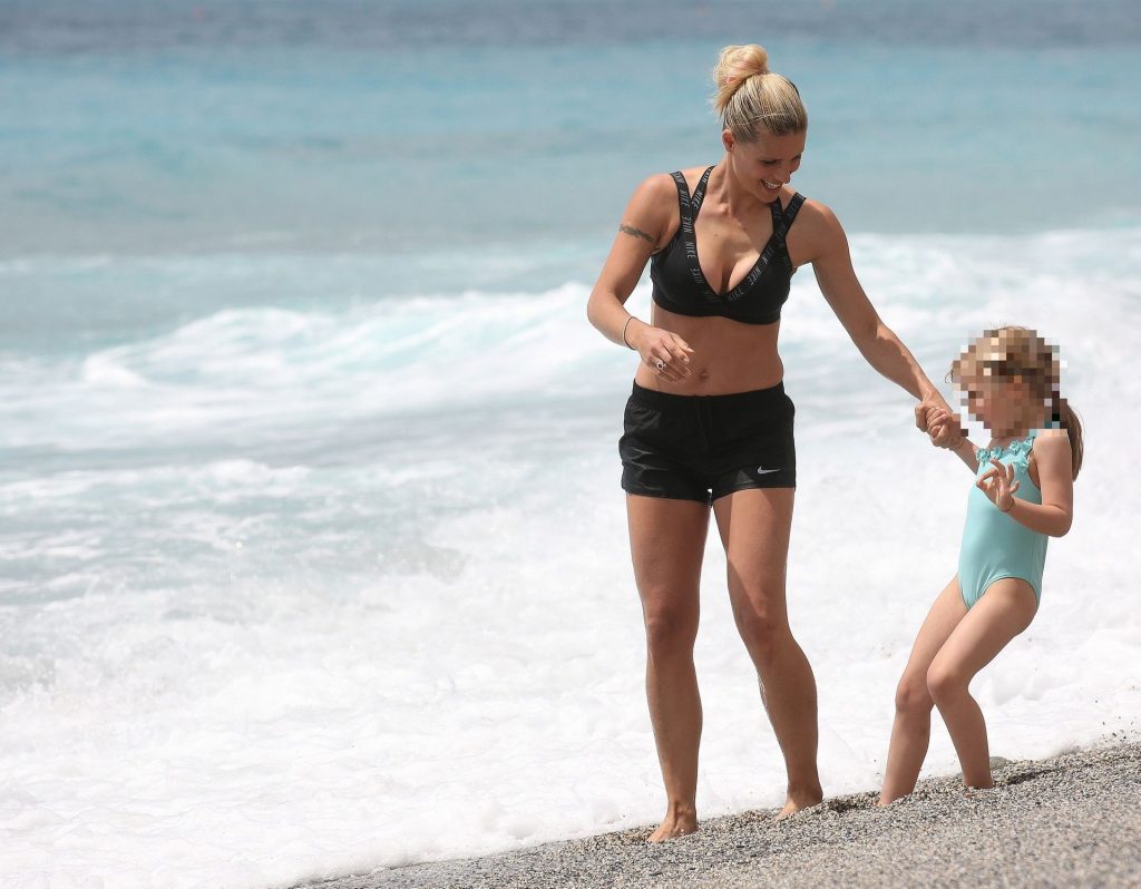 La voluptuosa suizo-italiana Michelle Hunziker (43) está bañándose en el mar con sus hijas en Varigotti, 06/06/2020.
